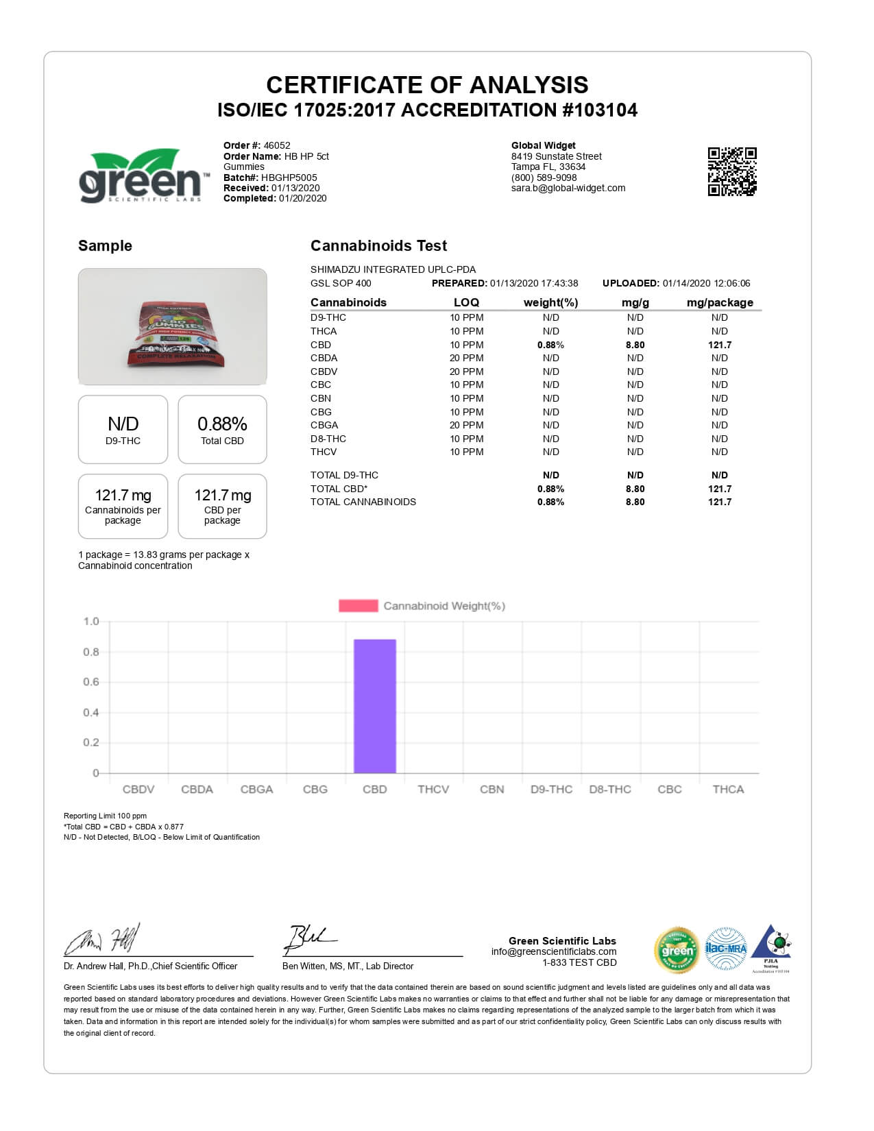 Hemp Bombs CBD Edible High Potency Gummies 125mg Lab Report