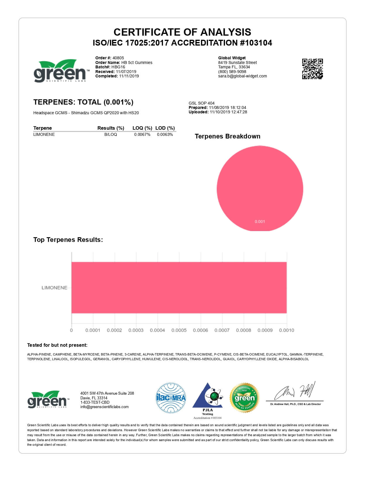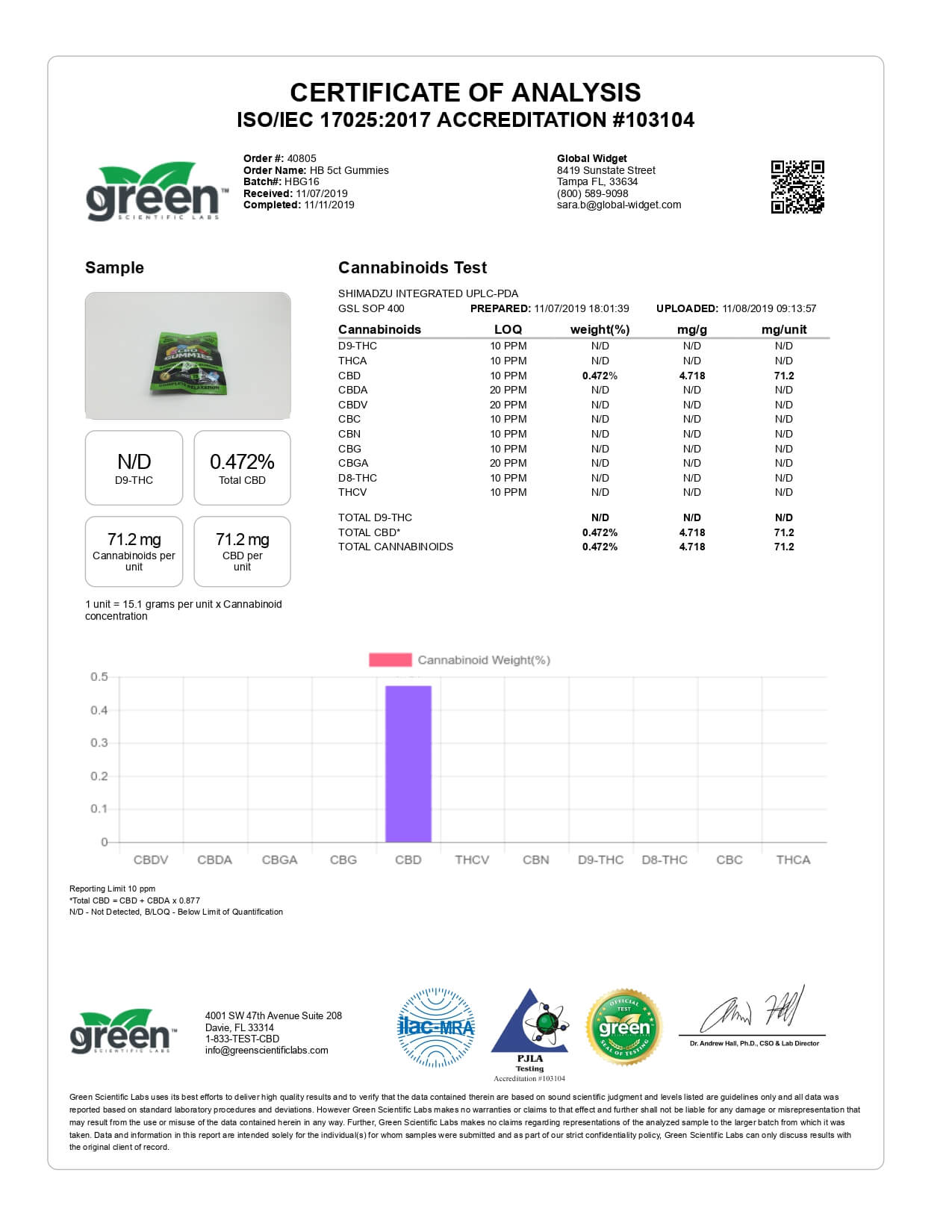 Hemp Bombs CBD Edible Original Gummies Lab Report