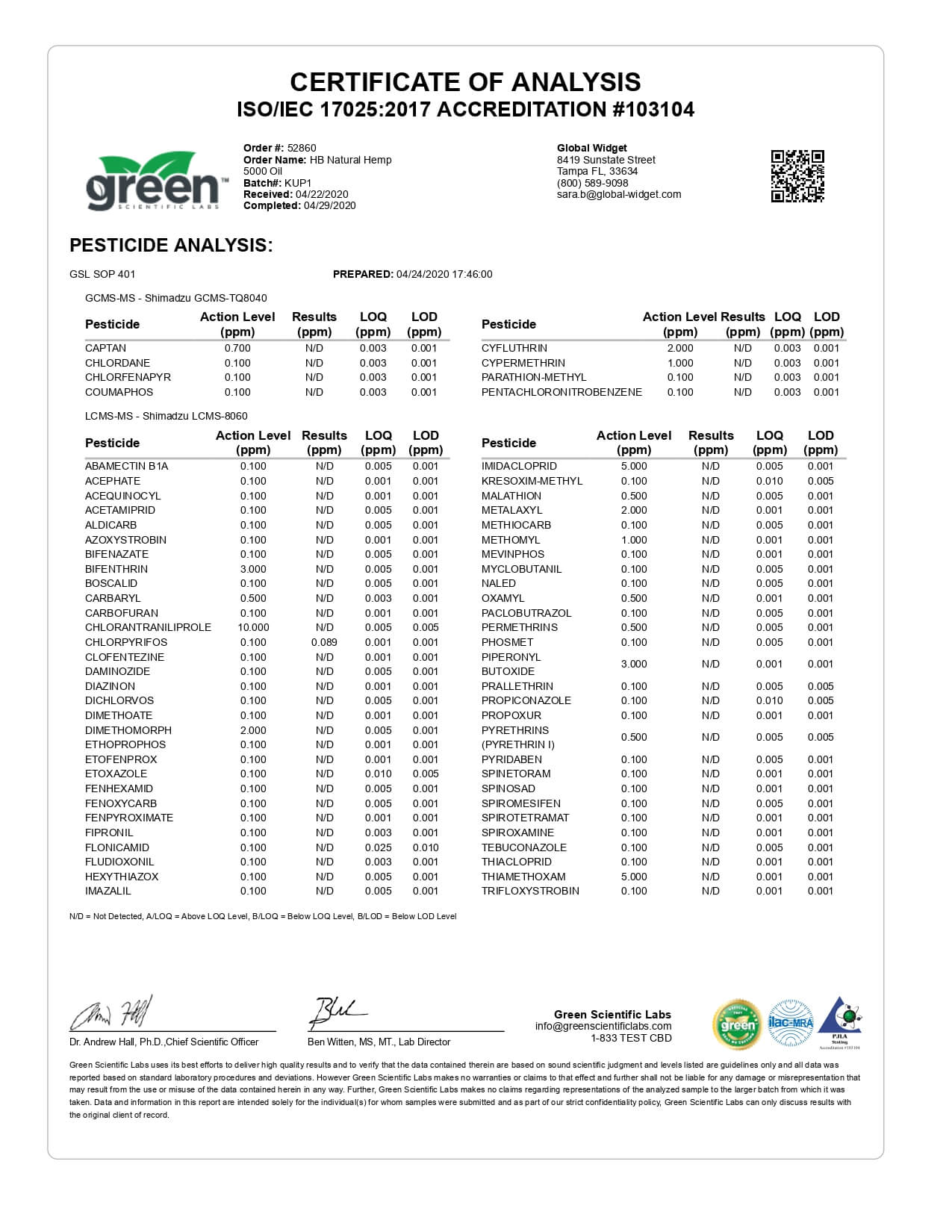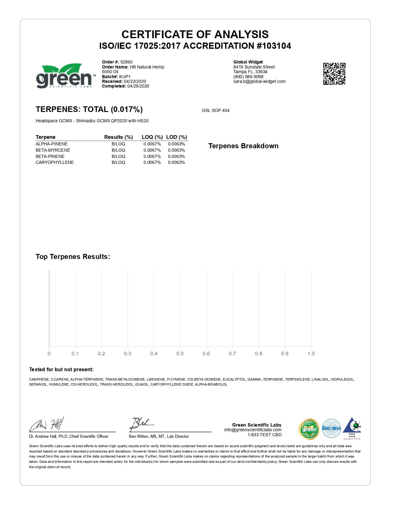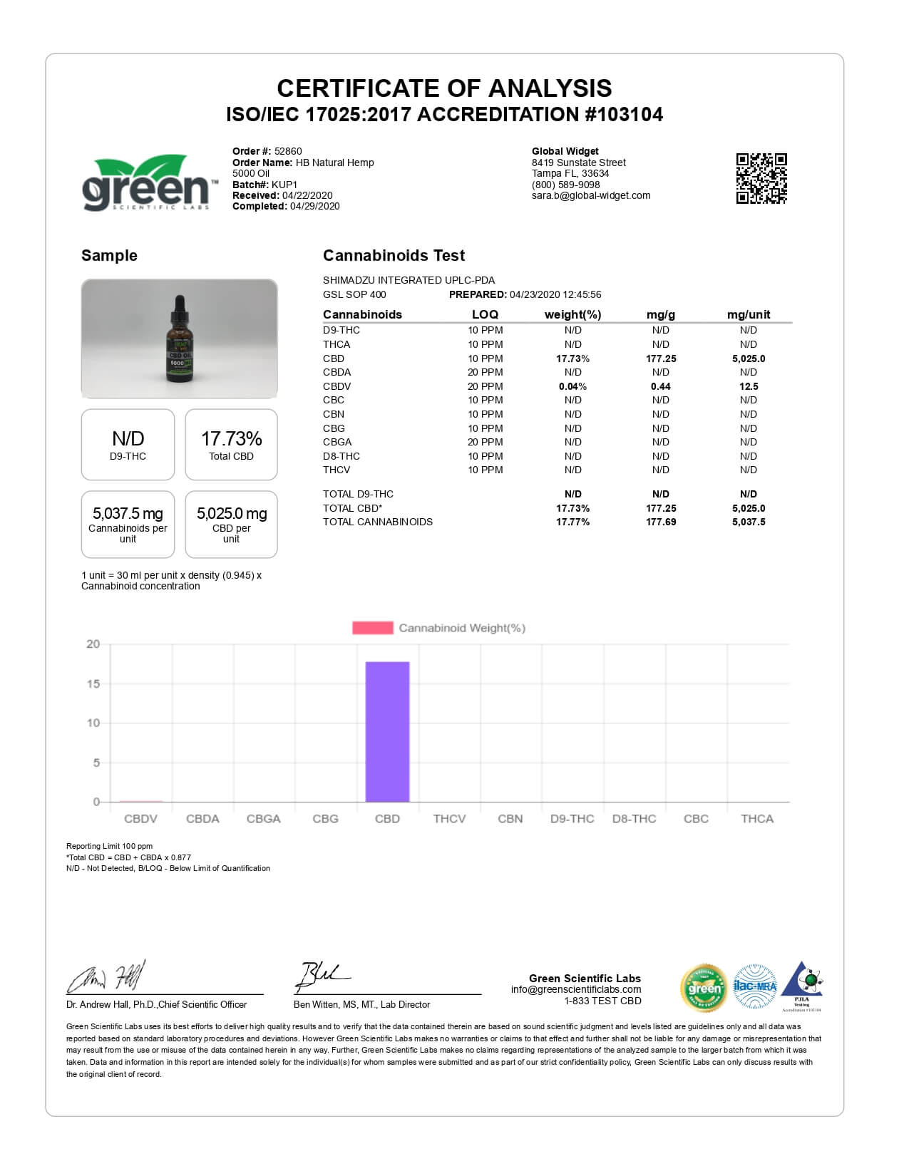 Hemp Bombs CBD Tincture Unflavored 5000mg Lab Report