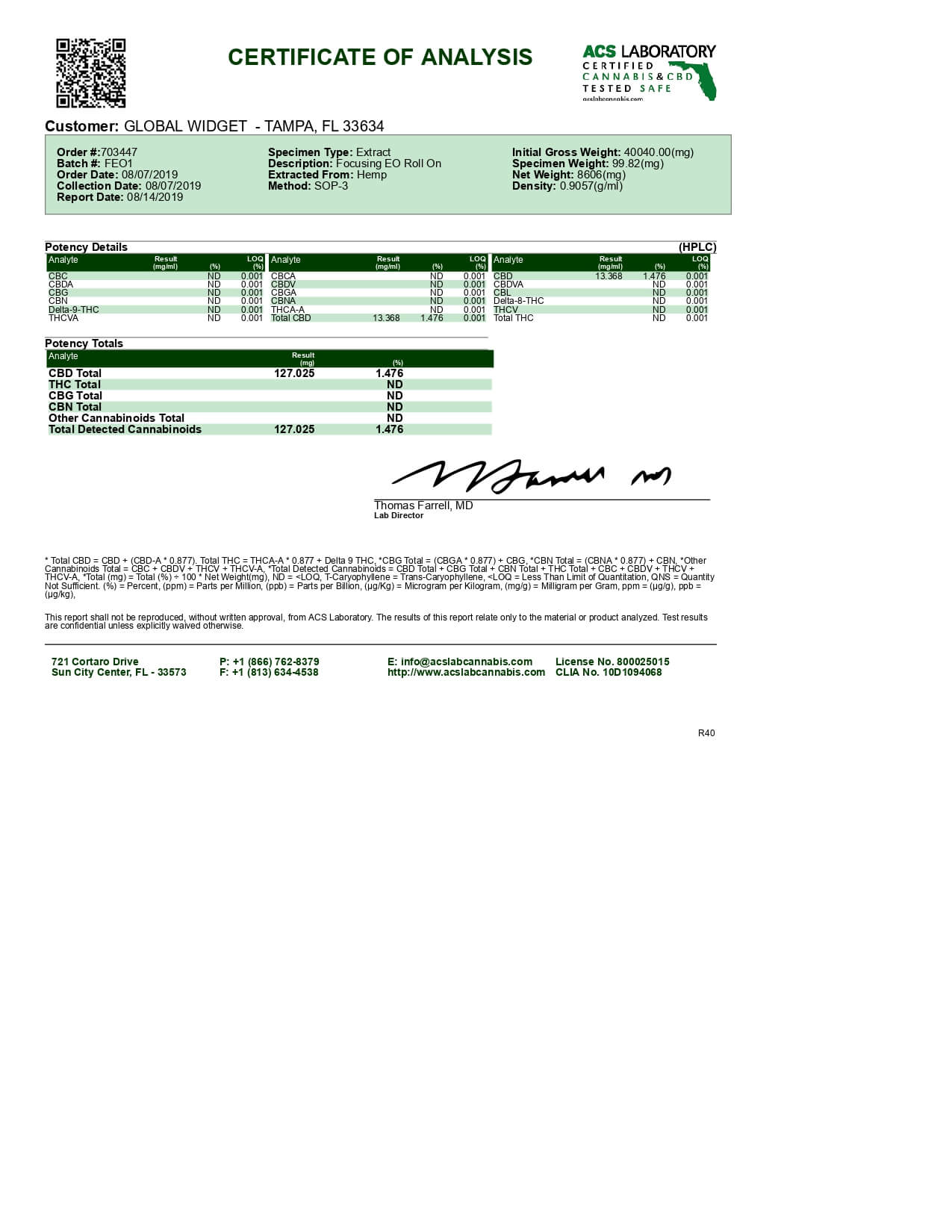 Hemp Bombs CBD Topical Focus Essential Oil Roller Lab Report important details about vaping products.