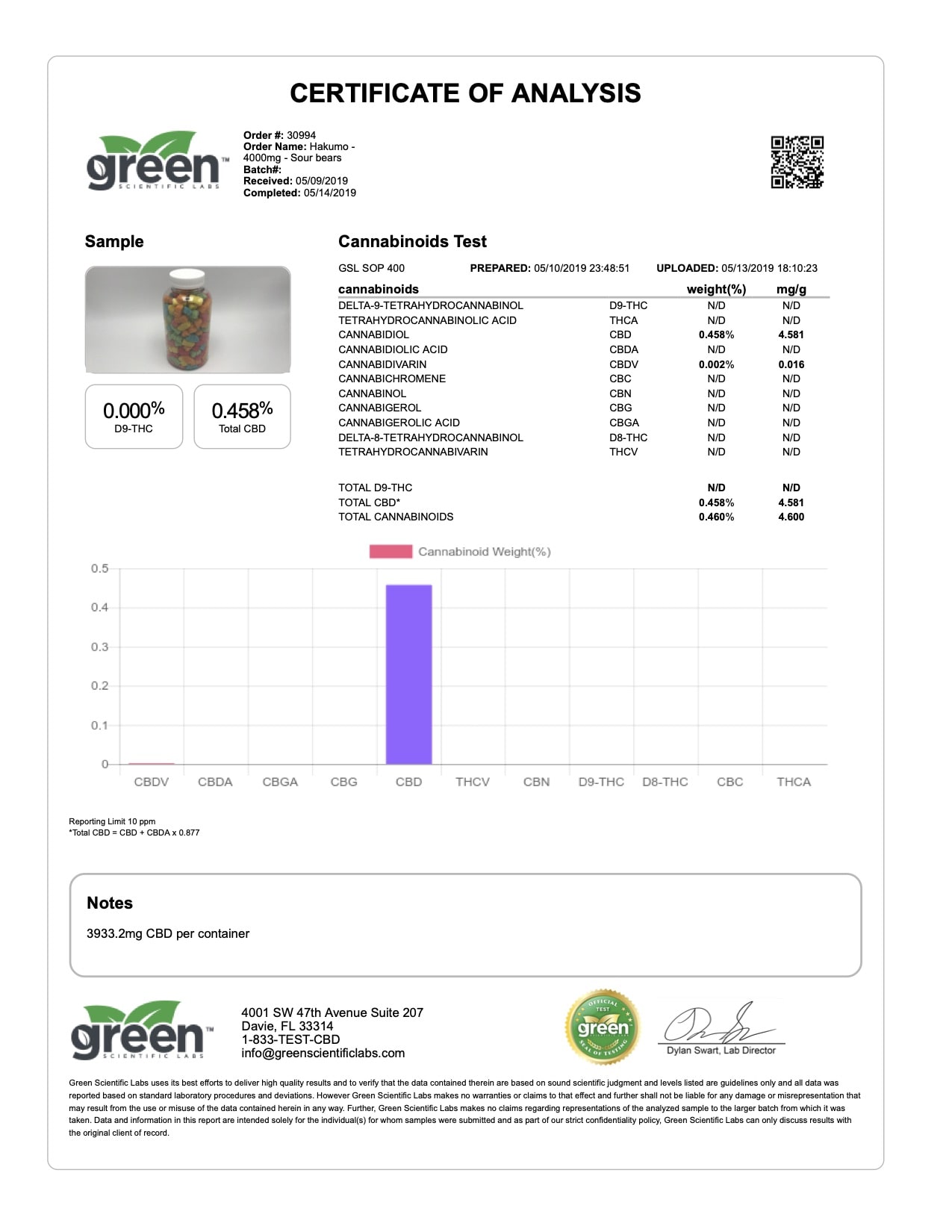 Hemp Edibles by Yami Vapor CBD Gummies 4000mg Lab Report