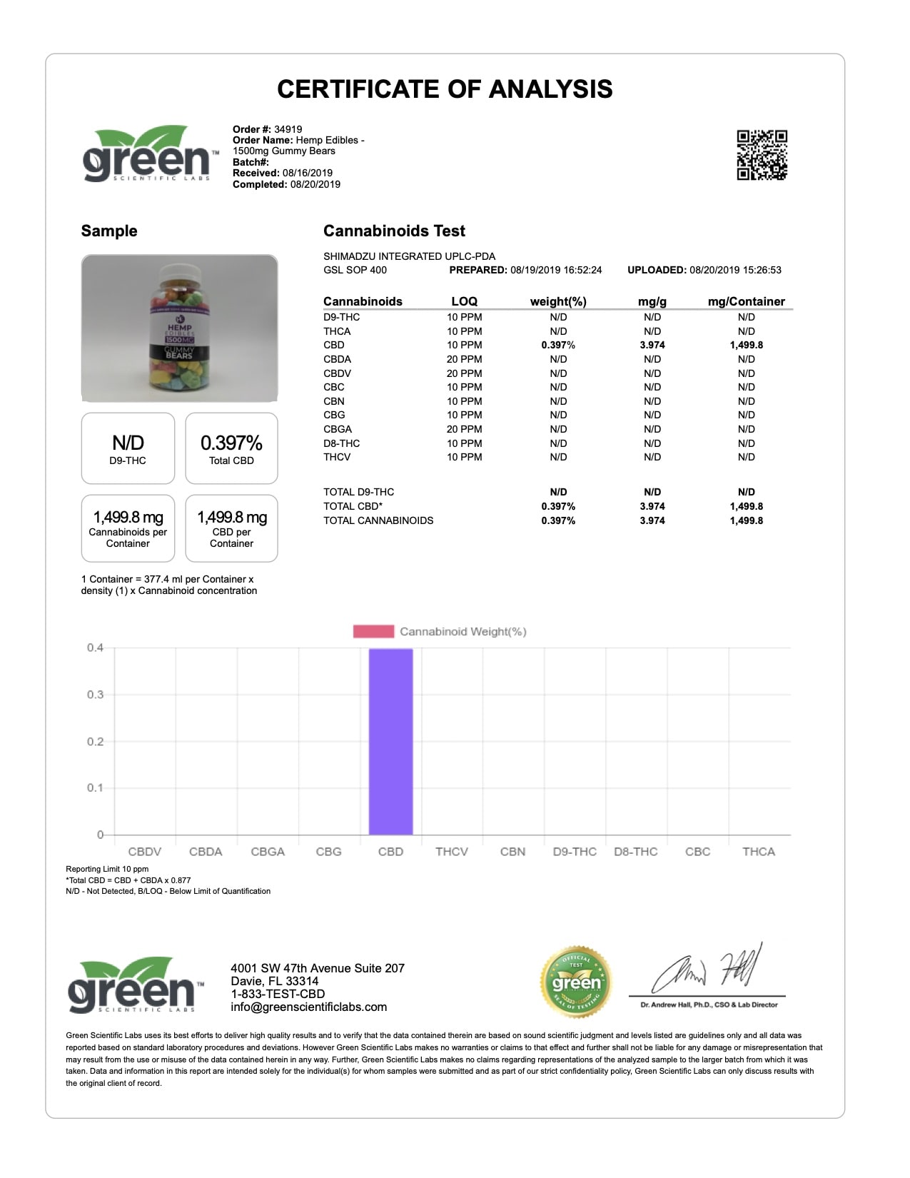 Hemp Edibles by Yami Vapor CBD Gummies 1500mg Lab Report