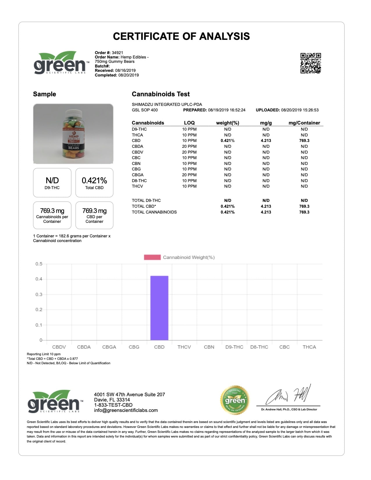 Hemp Edibles by Yami Vapor CBD Gummies 750mg Lab Report