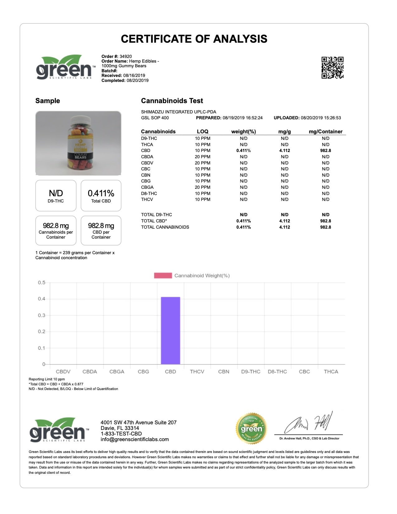 Hemp Edibles by Yami Vapor CBD Gummies 1000mg Lab Report