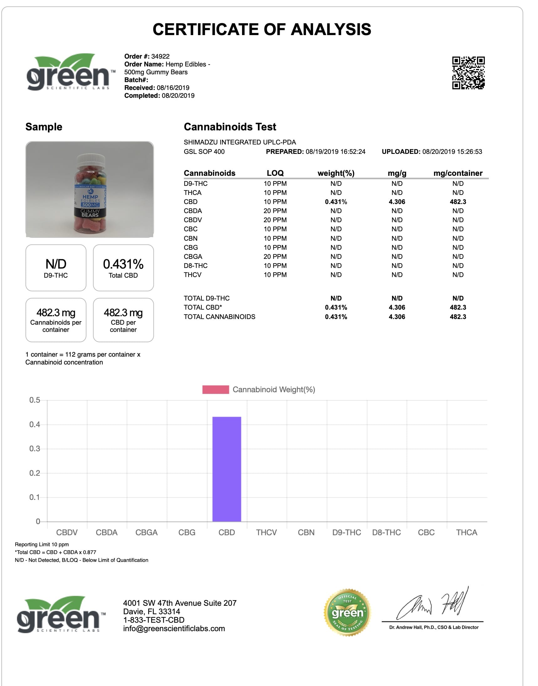 Hemp Edibles by Yami Vapor CBD Gummies 500mg Lab Report