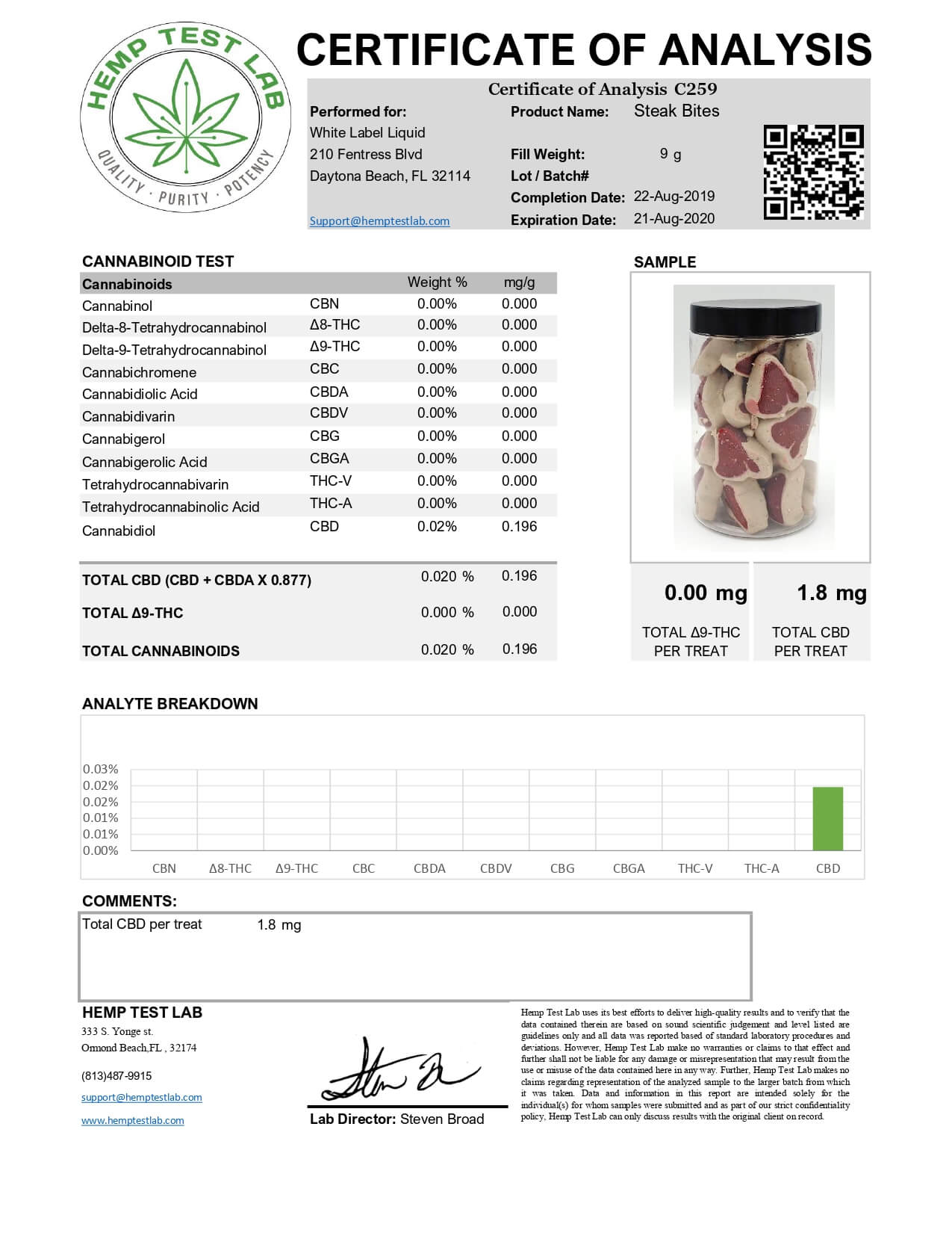 Hempcy CBD Pet Edible Steak Bites Lab Report important details about vaping products.