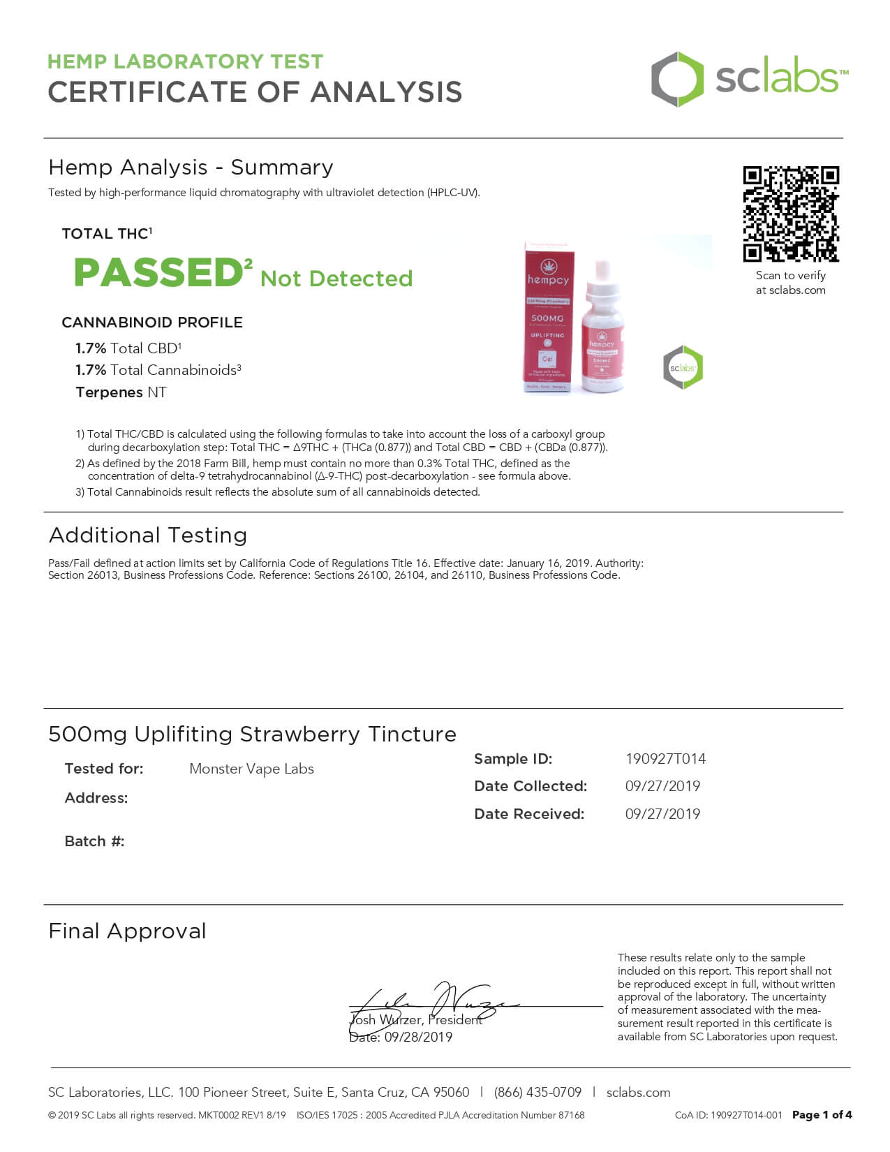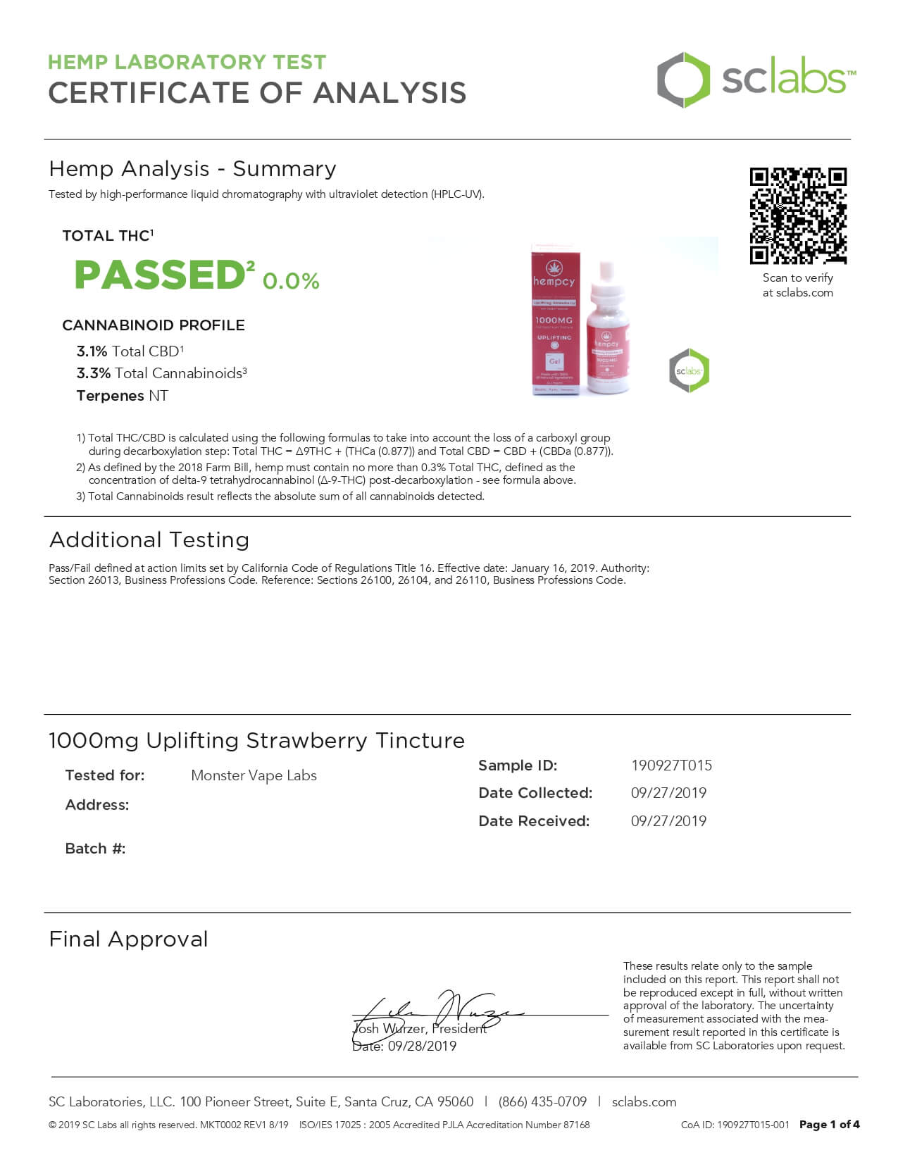Hempcy CBD Tincture Uplifting Strawberry Lab Report