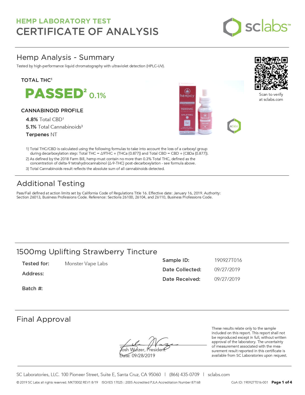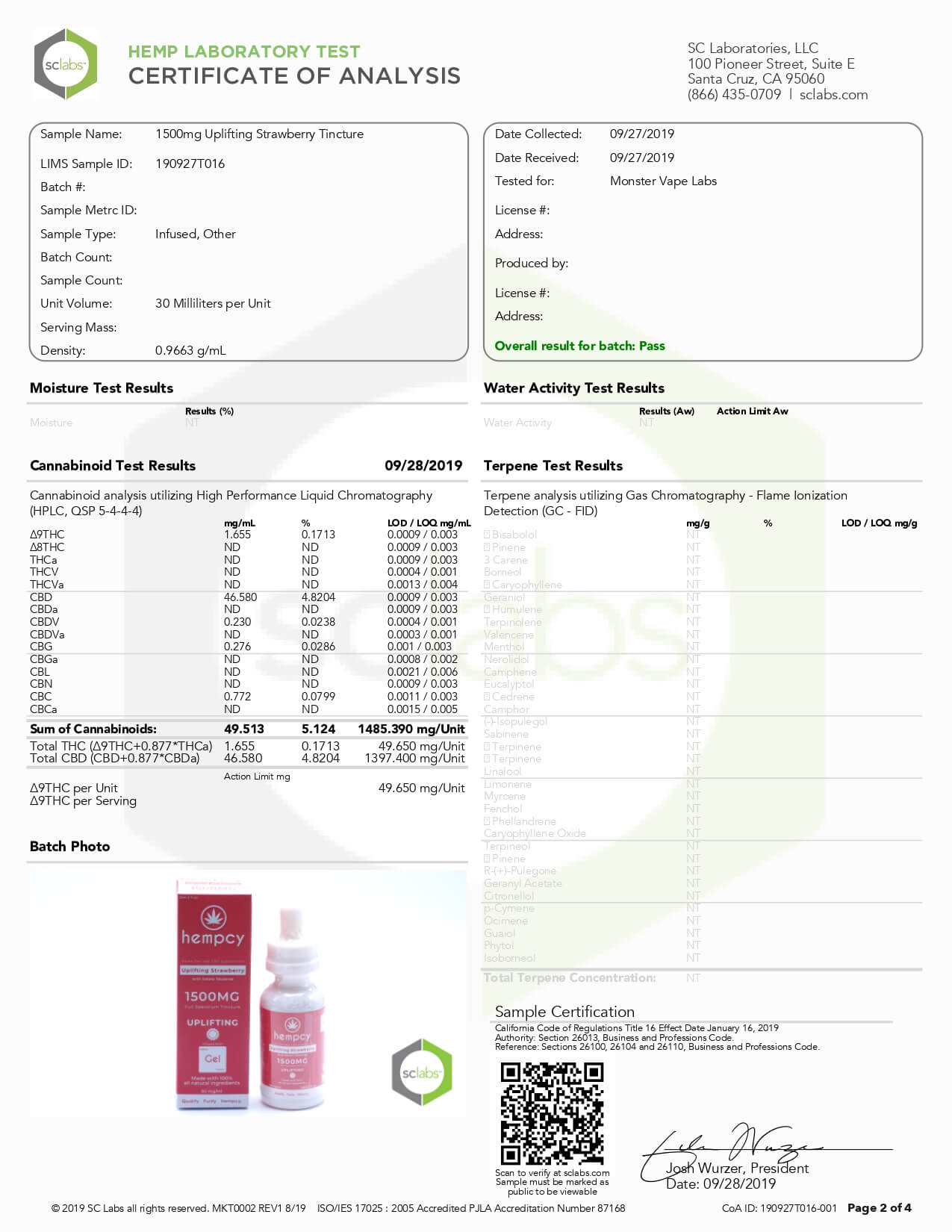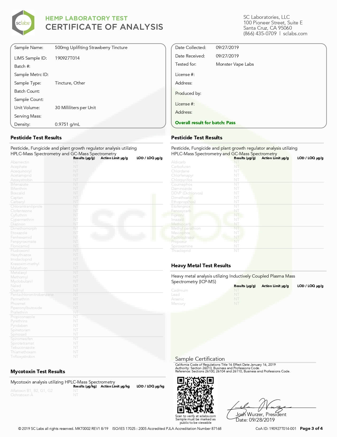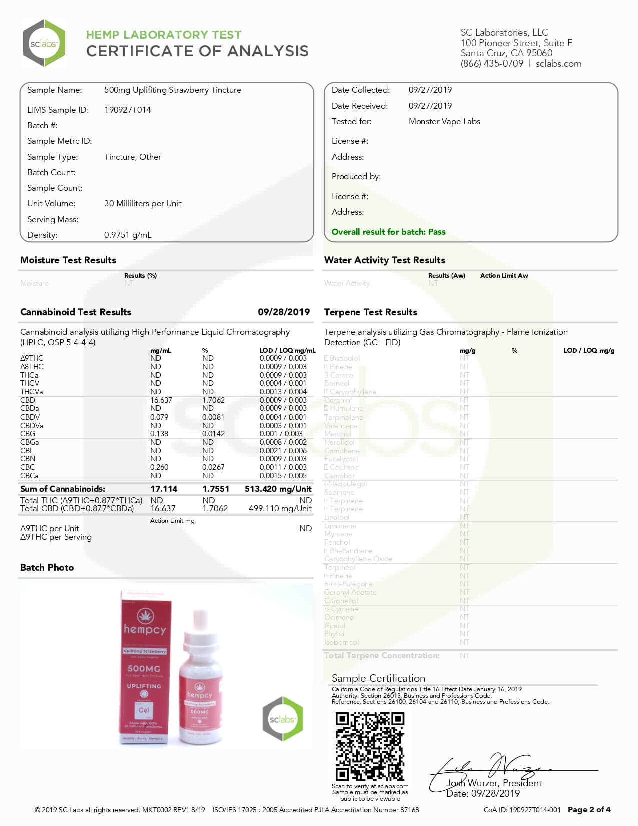 Hempcy CBD Tincture Uplifting Strawberry Lab Report important details about vaping products.