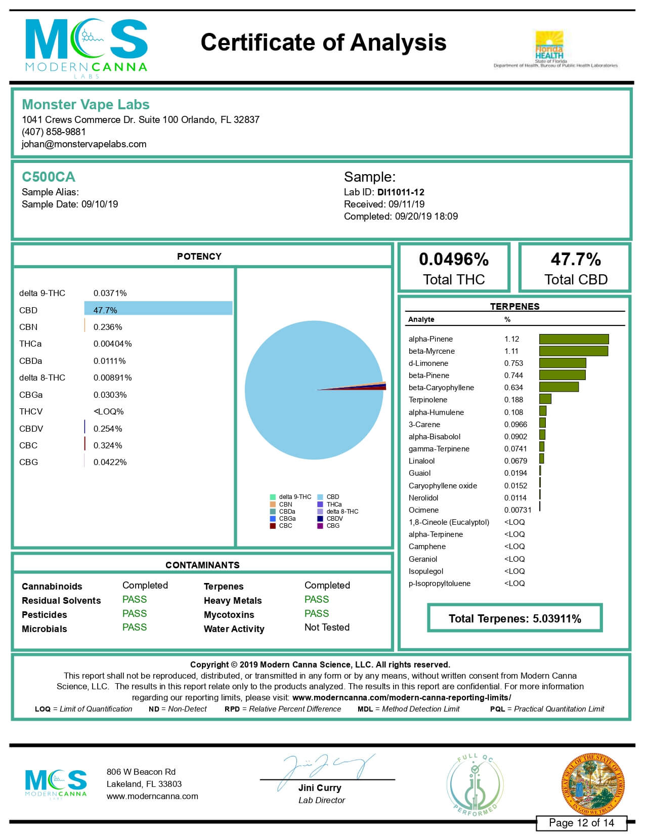 Hempcy CBD Vape Cartridge Energy Lemon Lime Lab Report important details about vaping products.