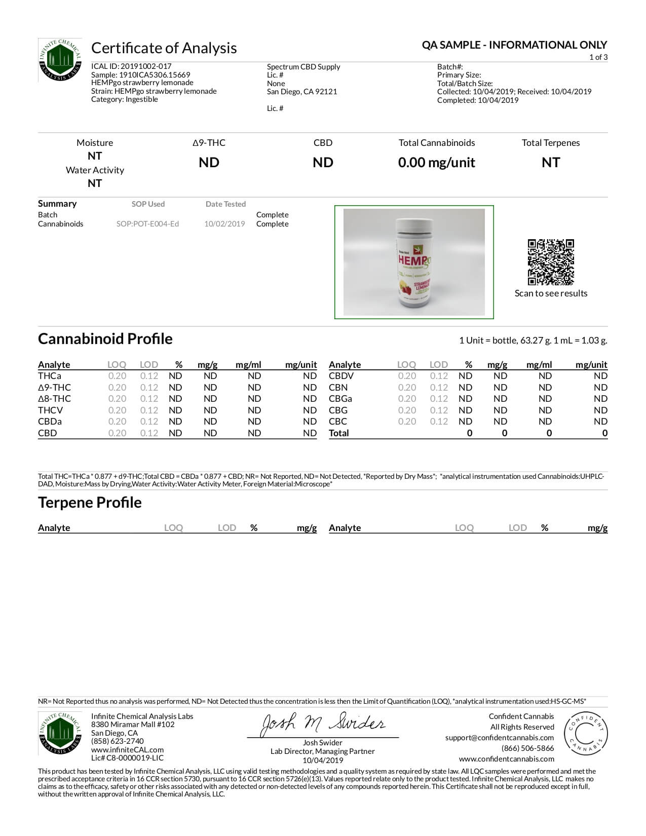 HEMPgo CBD Drink Day Time Strawberry Lemonade Lab Report important details about vaping products.