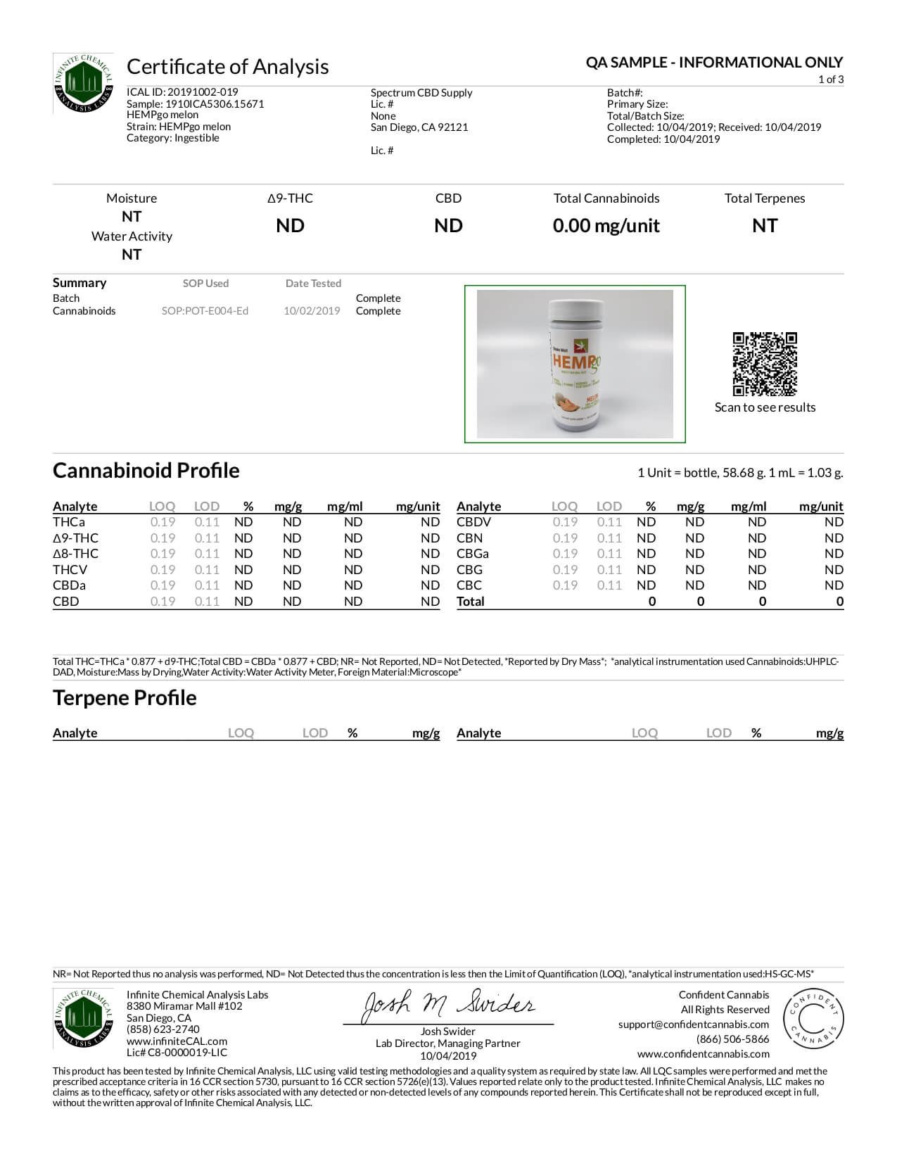 HEMPgo CBD Drink Night Time Melon Lab Report