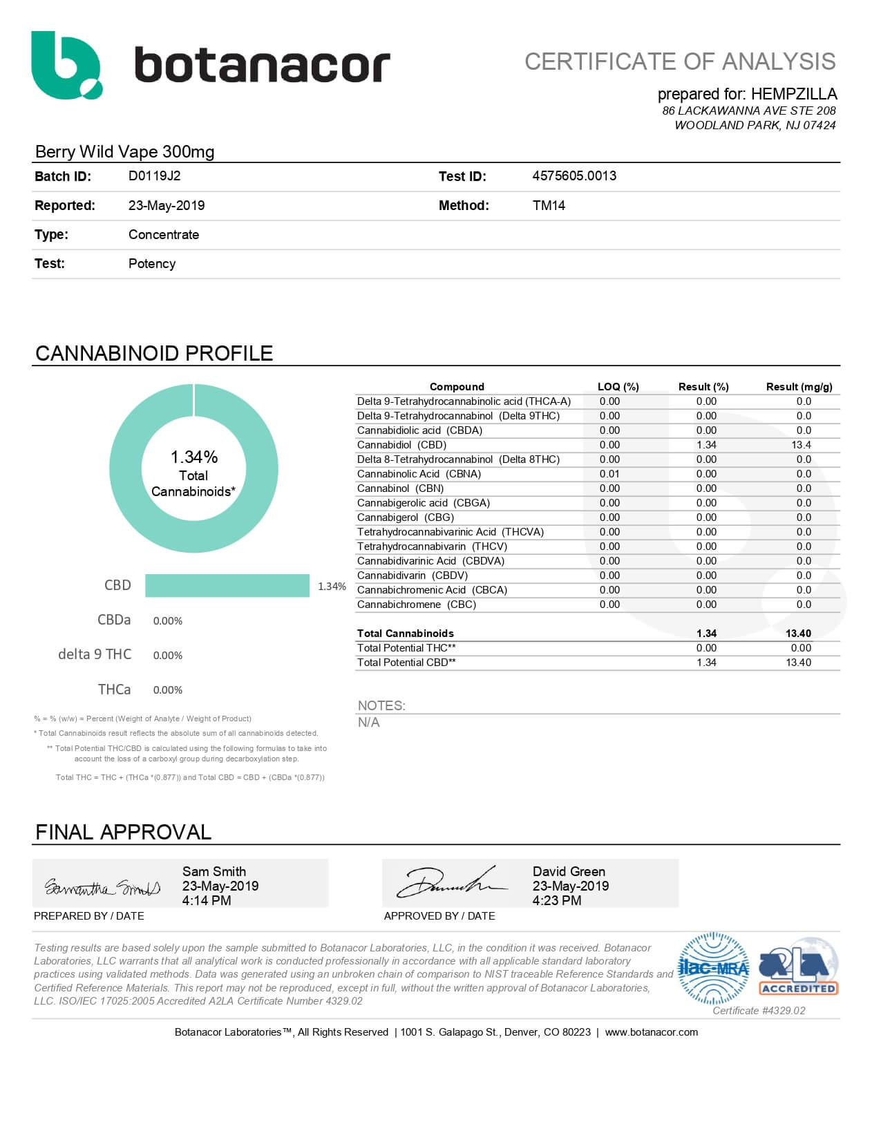 Hempzilla CBD Pod Berry Wild Gelato Zilla Pods Lab Report