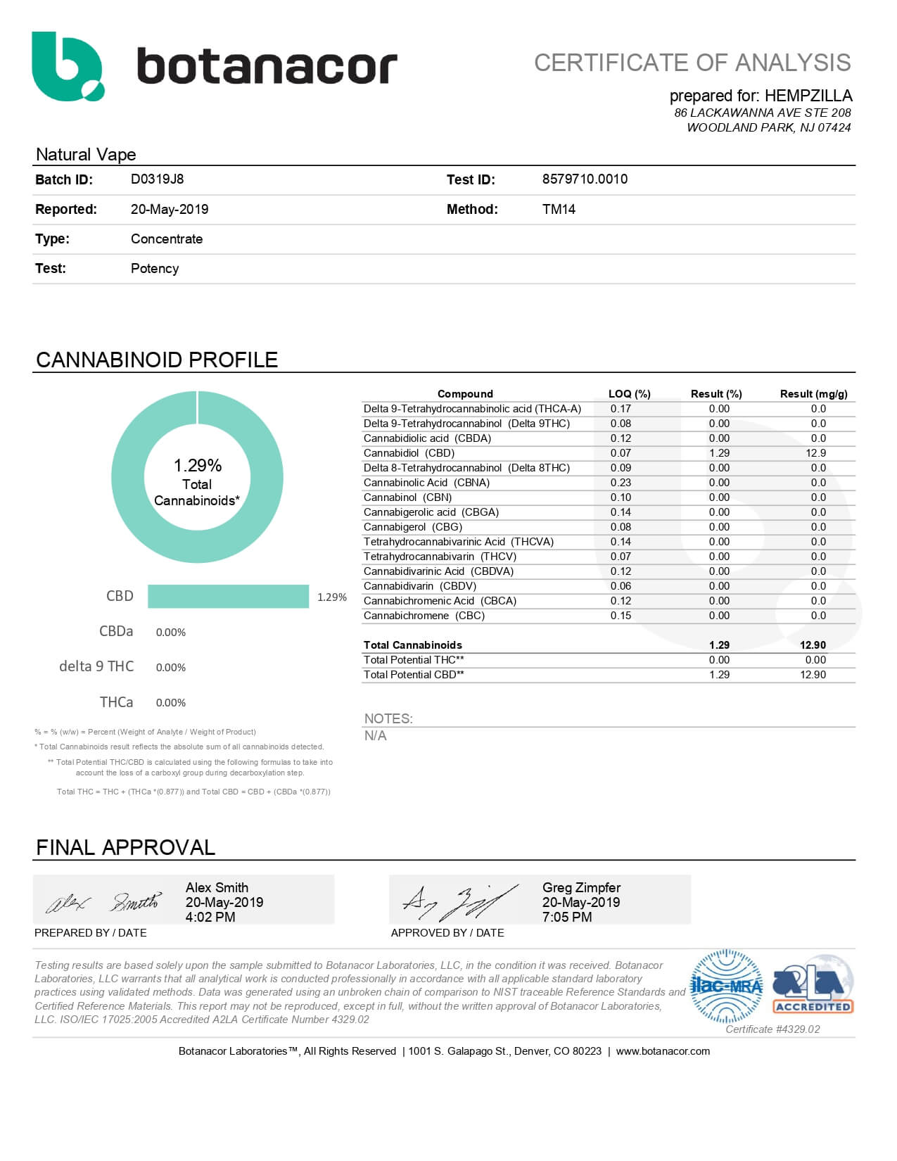 Hempzilla CBD Pod Natural Hemp Zilla Pods Lab Report important details about vaping products.