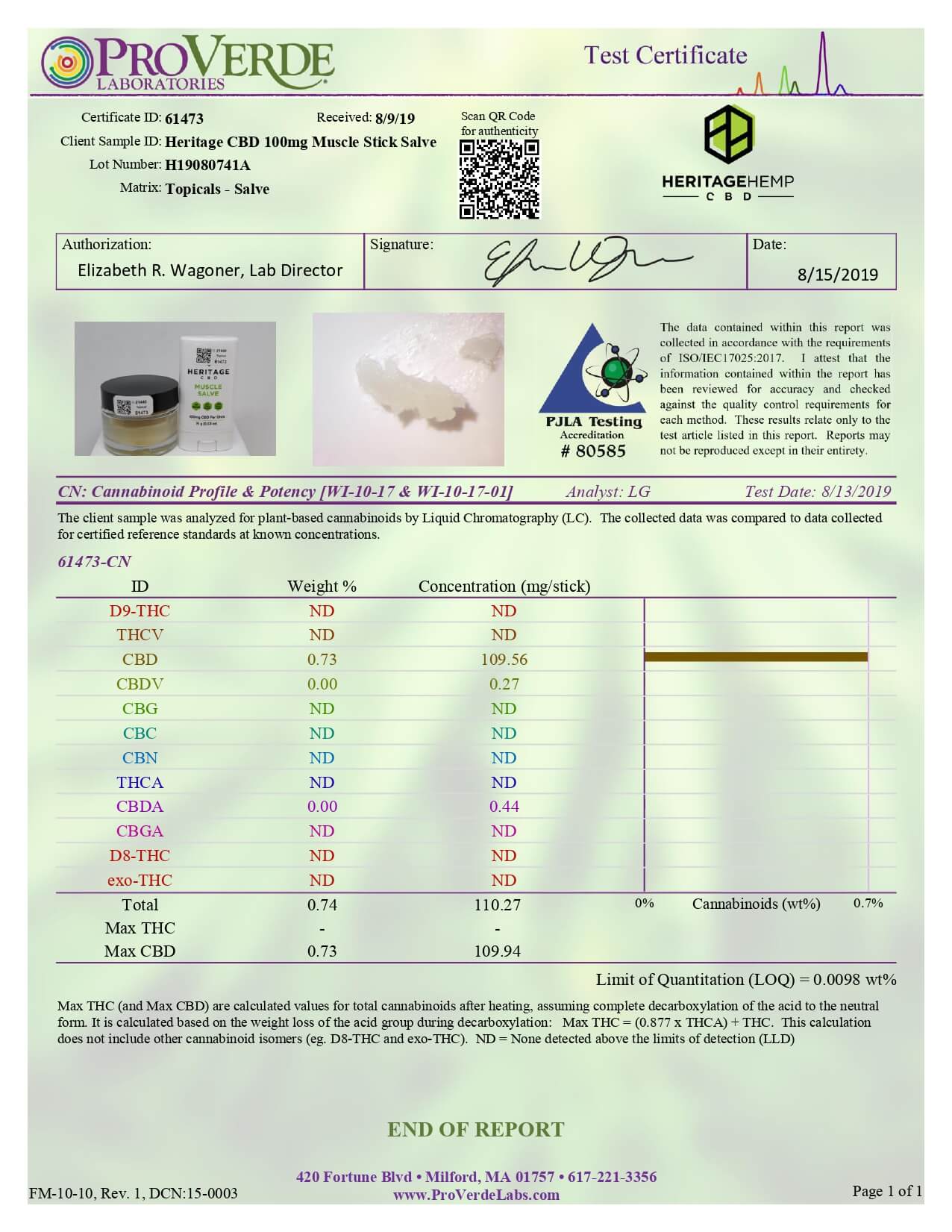 Heritage Hemp CBD Topical Muscle Salve 100mg Lab Report