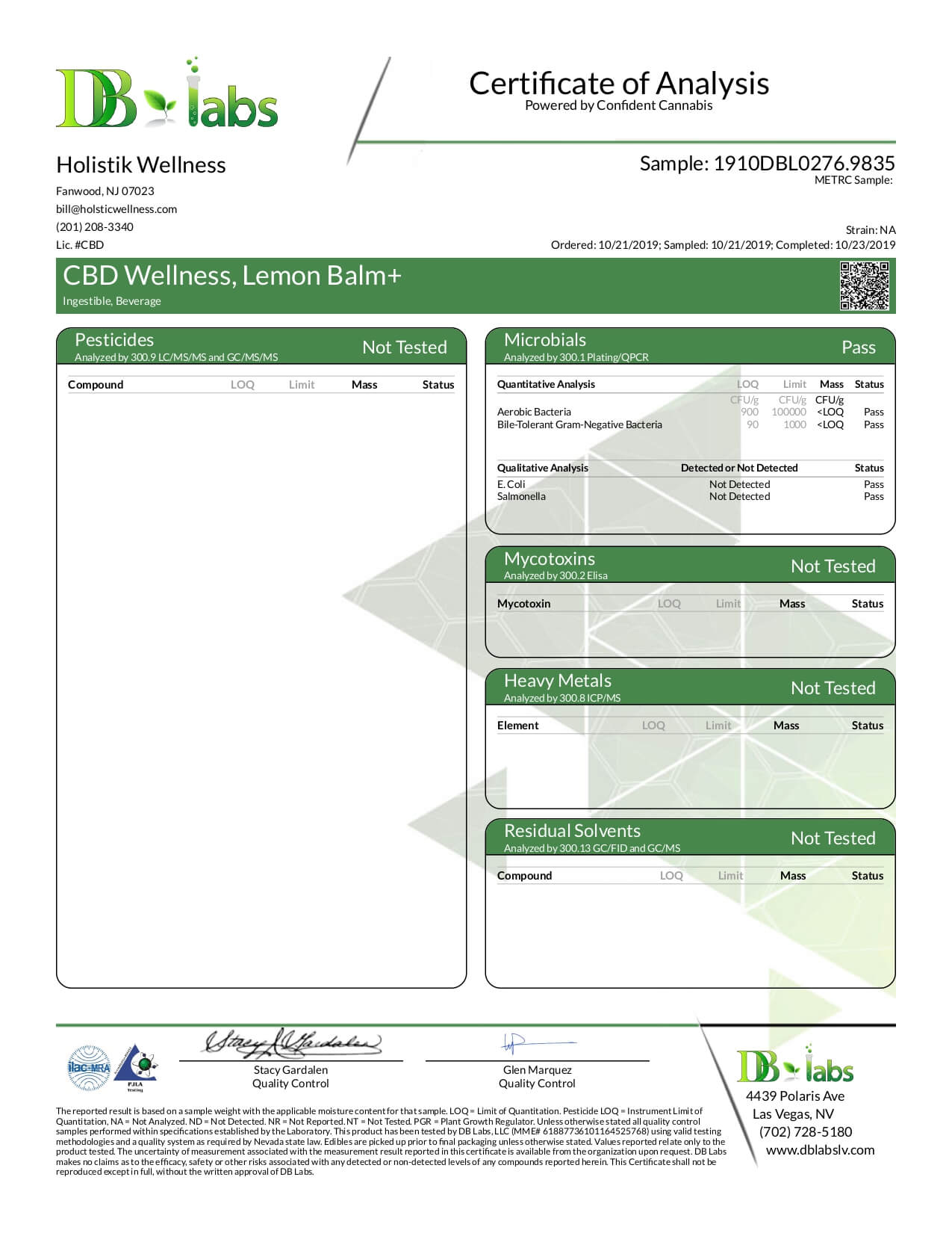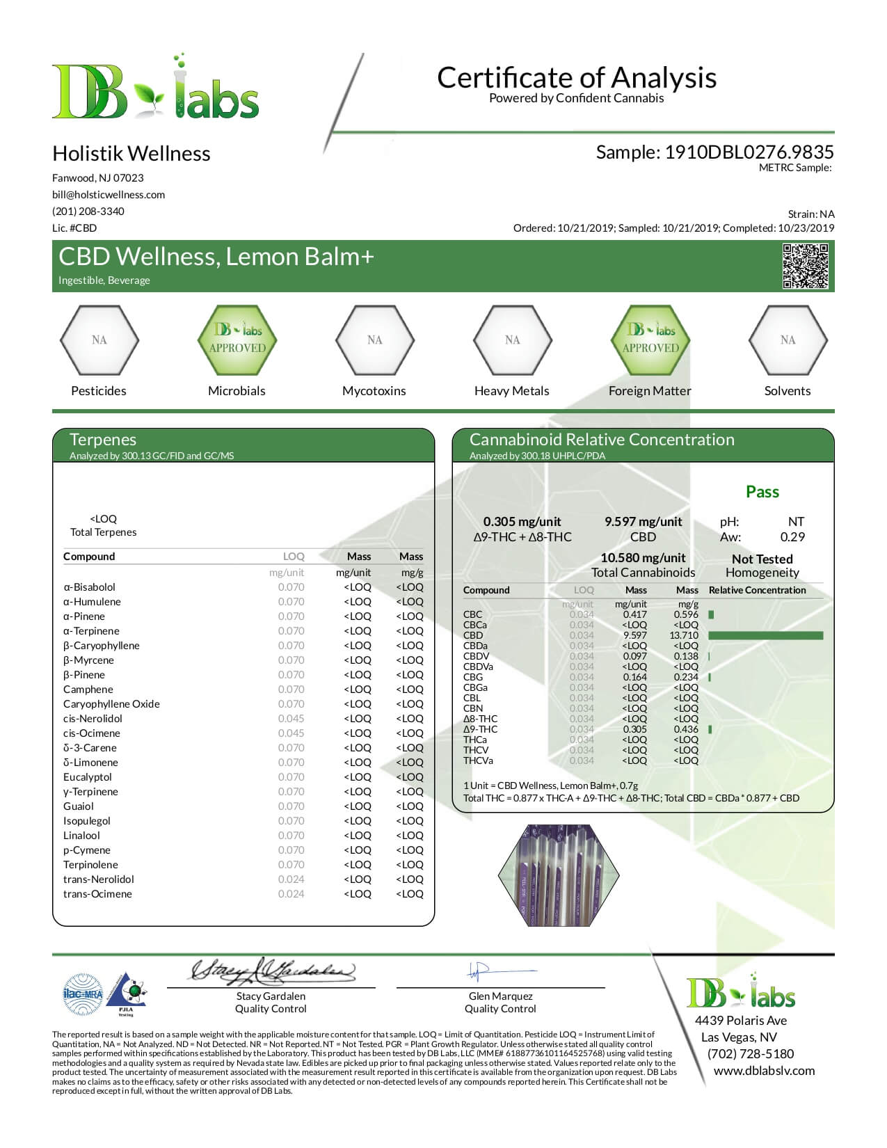 HOLISTIK Wellness CBD Drink Mix Stress Stir STIK Lab Report