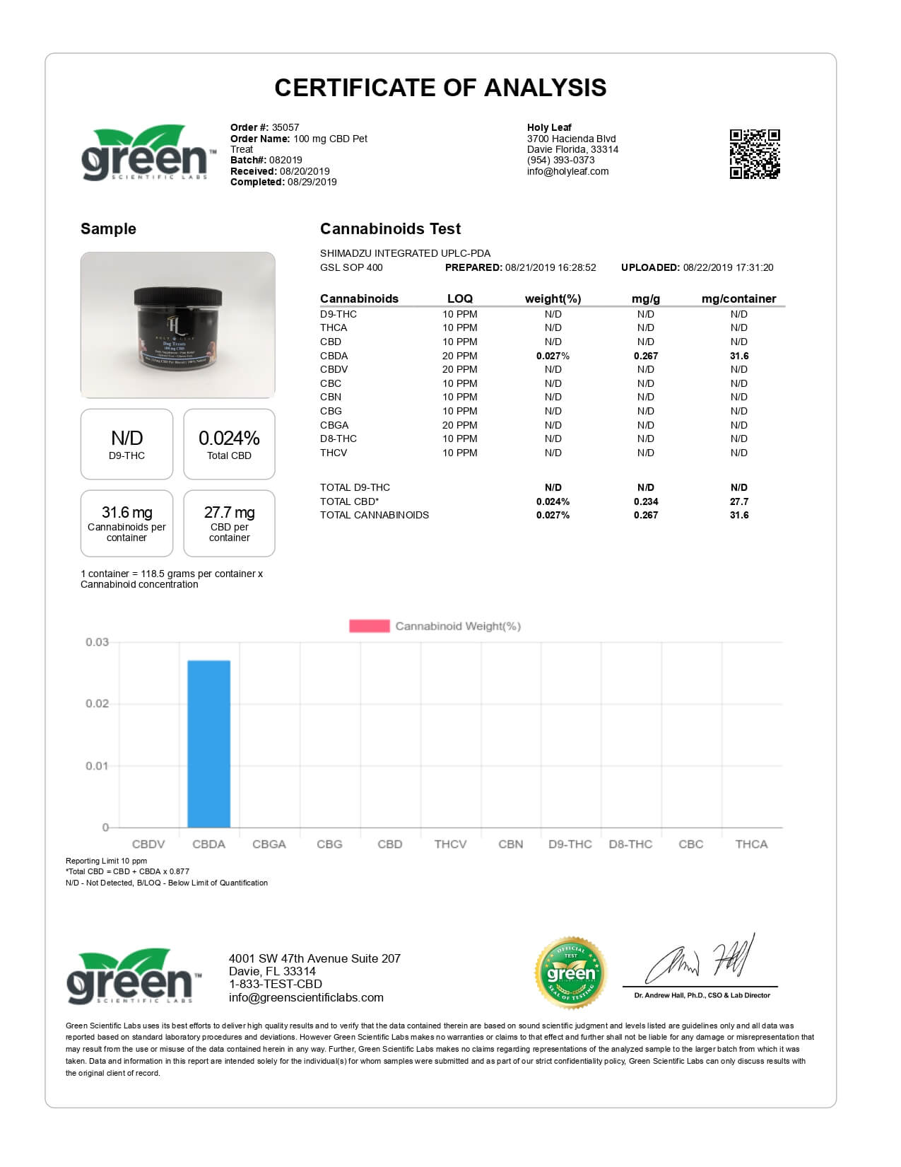Holy Leaf CBD Pet Treat Dog Treats Lab Report