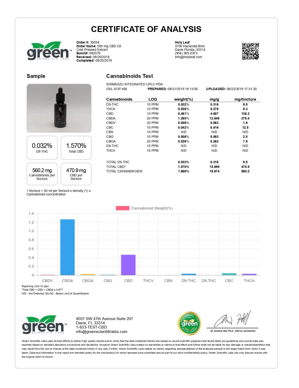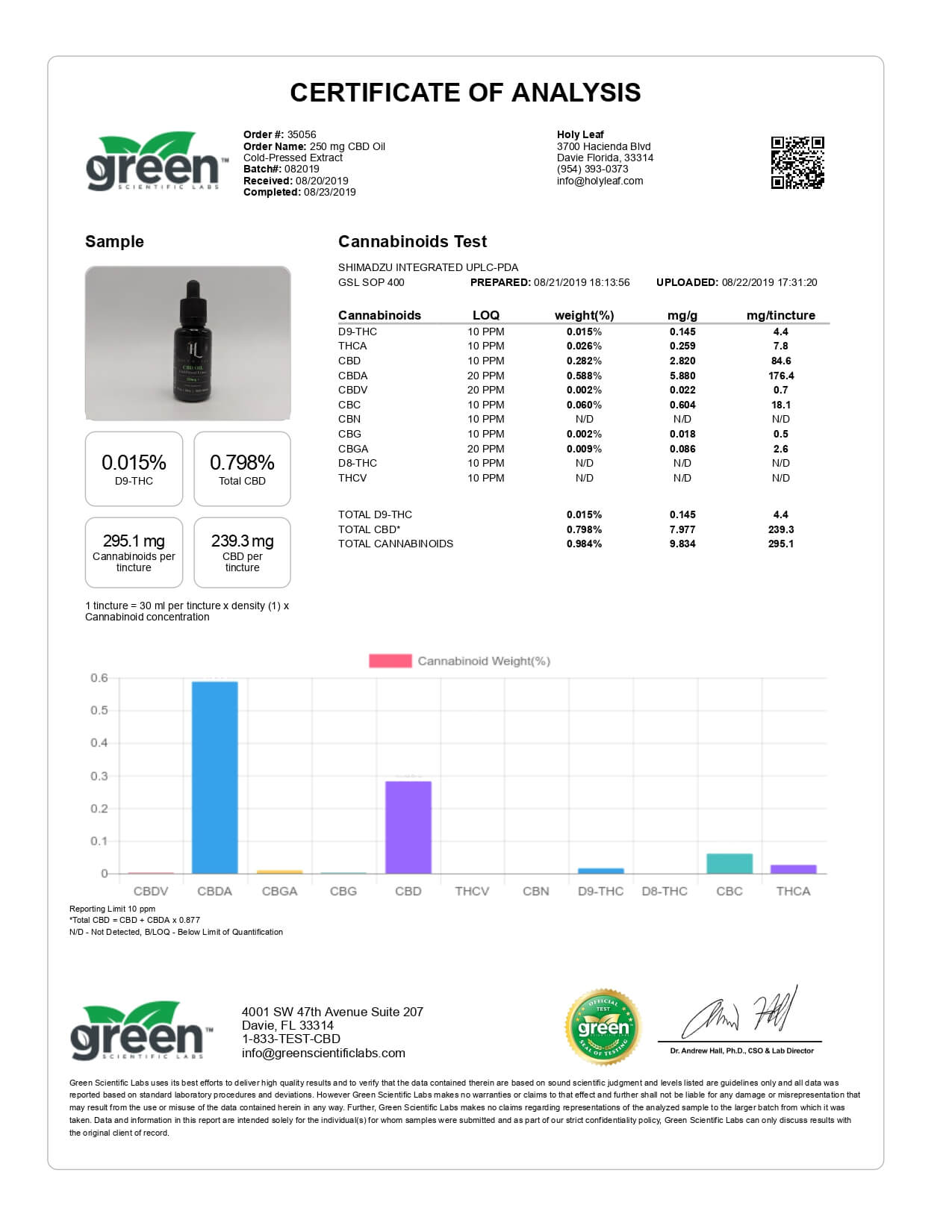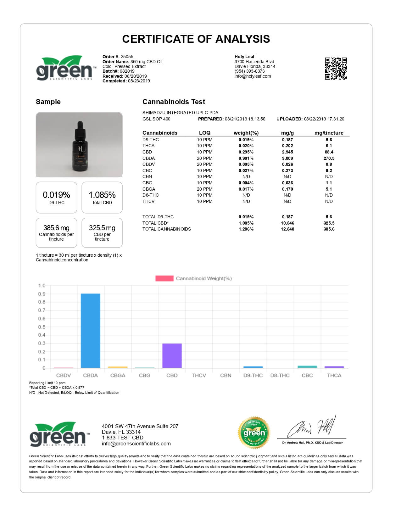 Holy Leaf CBD Tincture Organic Full Spectrum Cold Pressed Lab Report important details about vaping products.