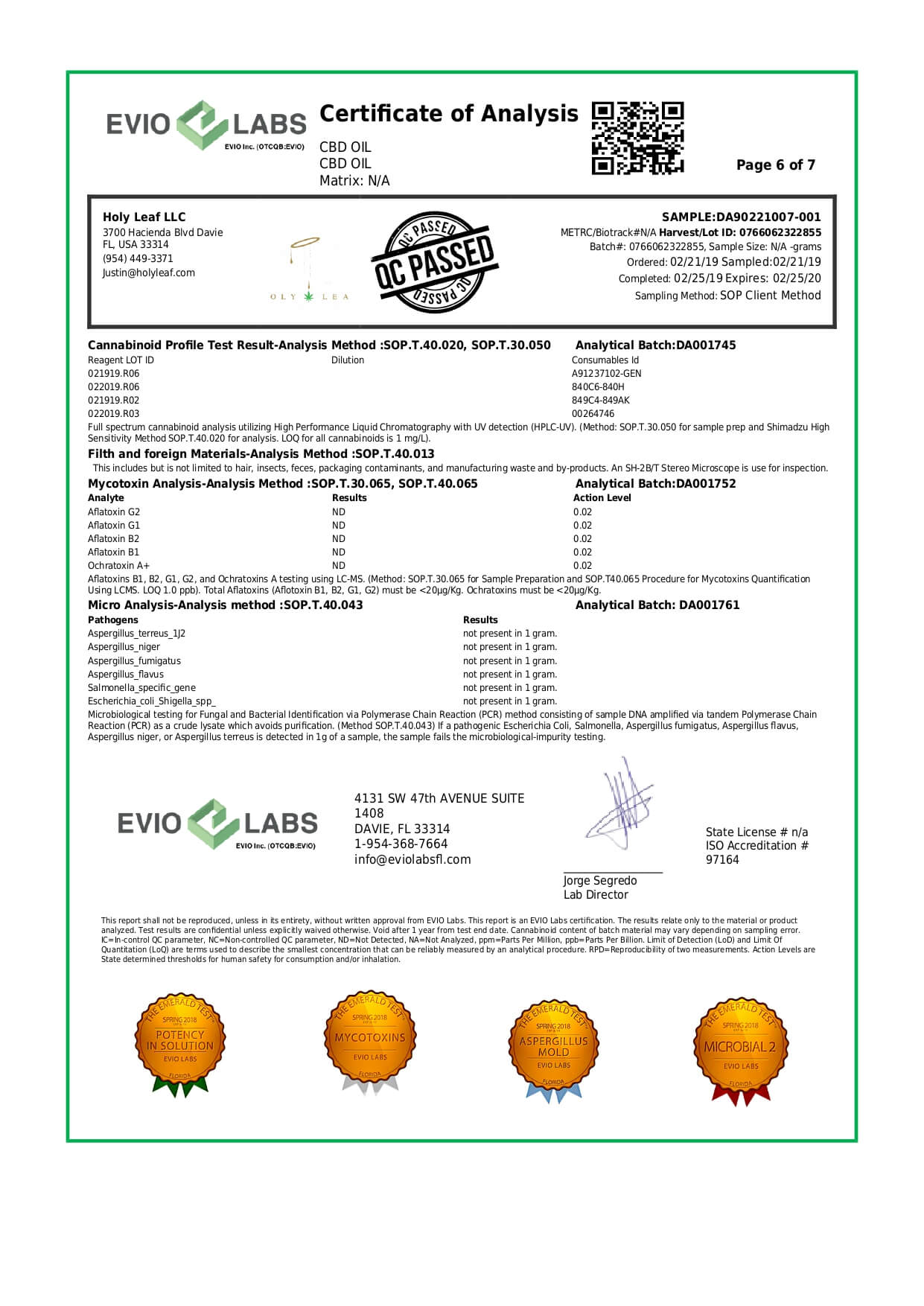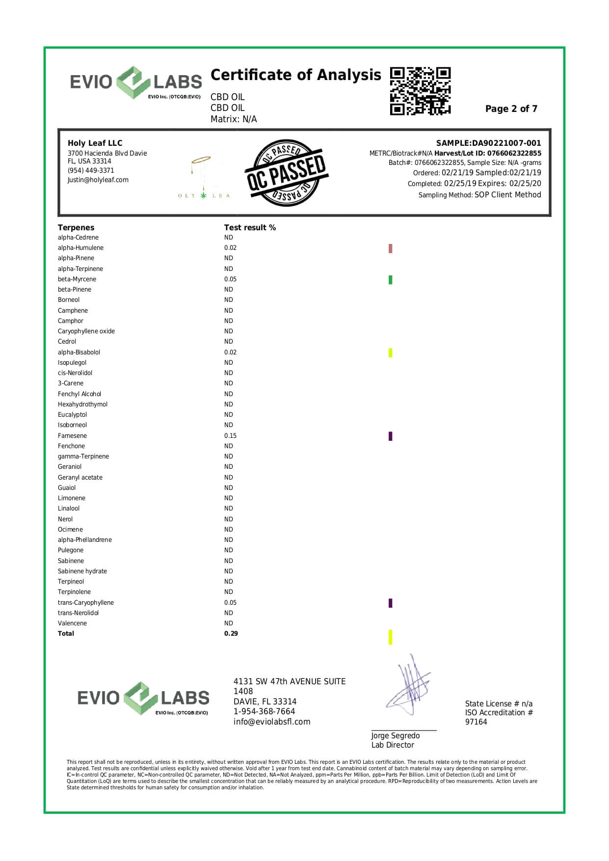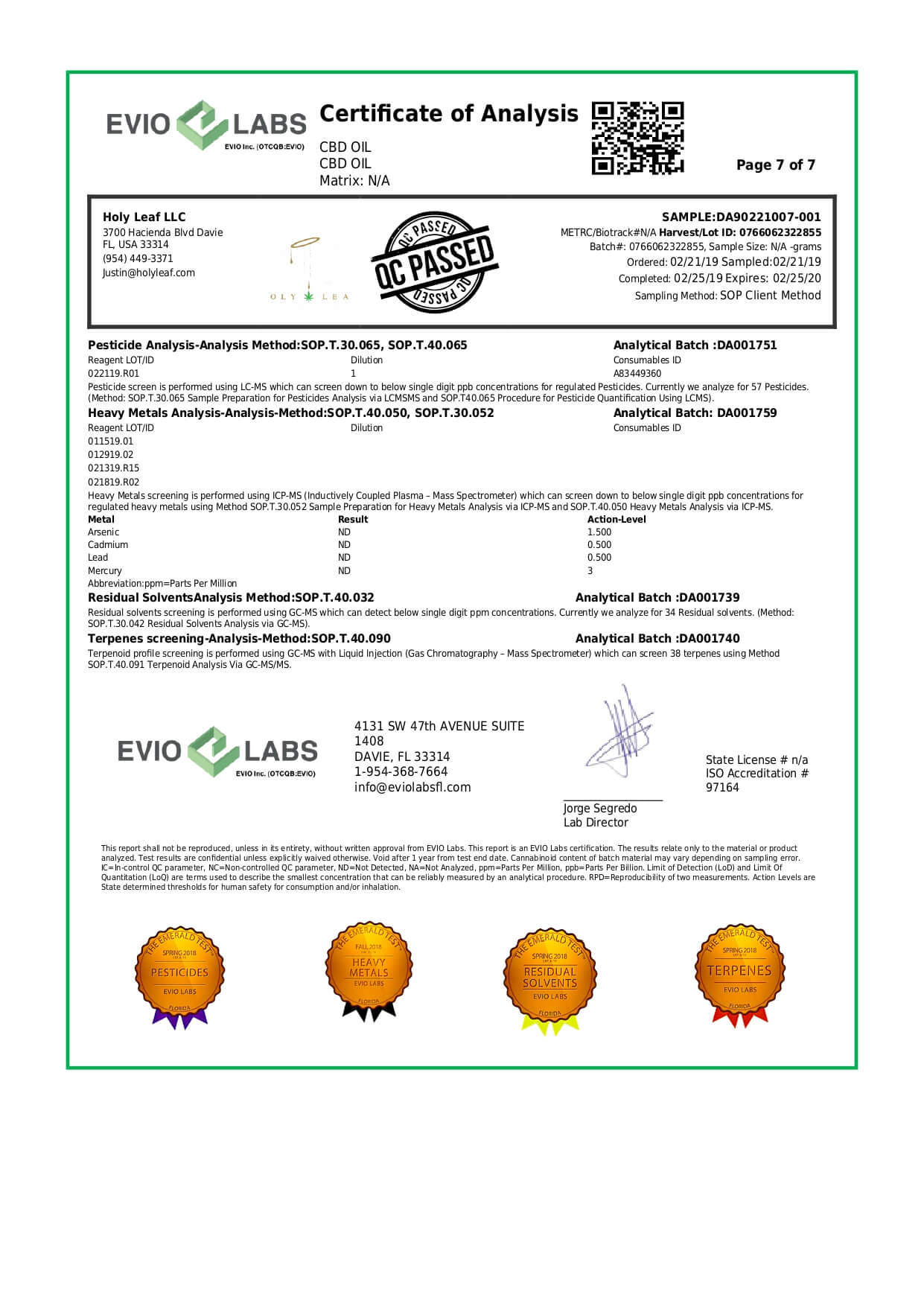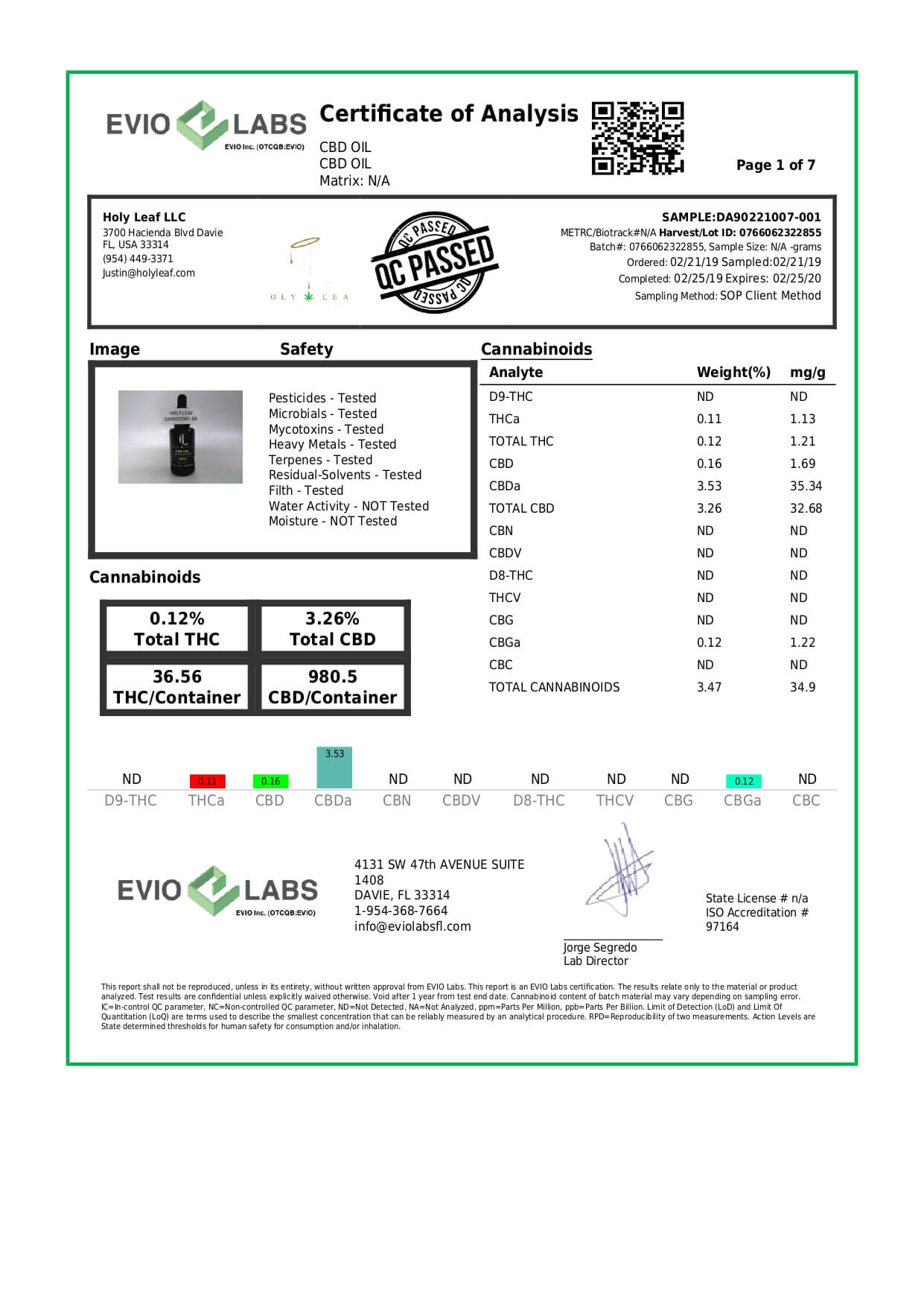 Holy Leaf CBD Tincture Organic Full Spectrum Cold Pressed Lab Report important details about vaping products.