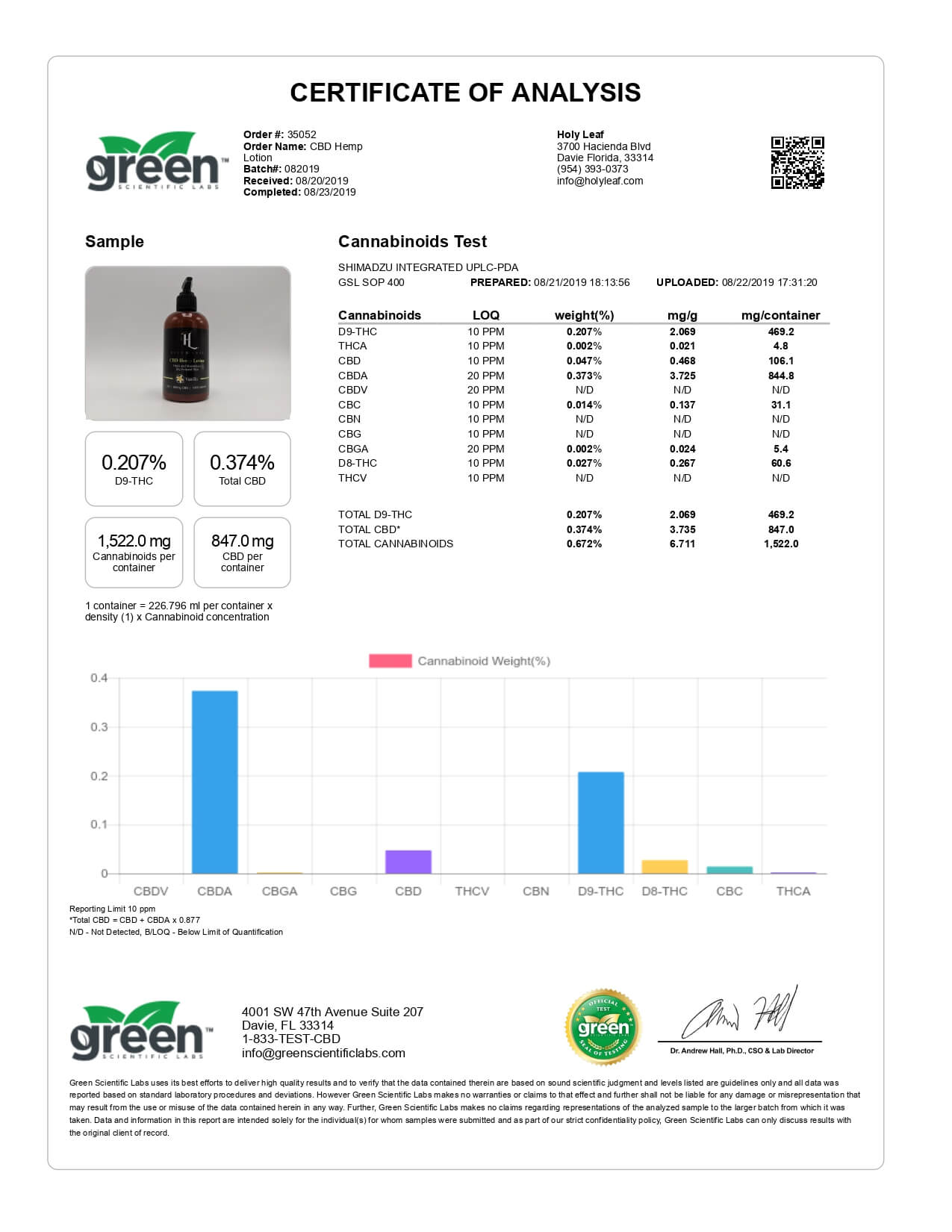 Holy Leaf CBD Topical Citrus Lotion Lab Report