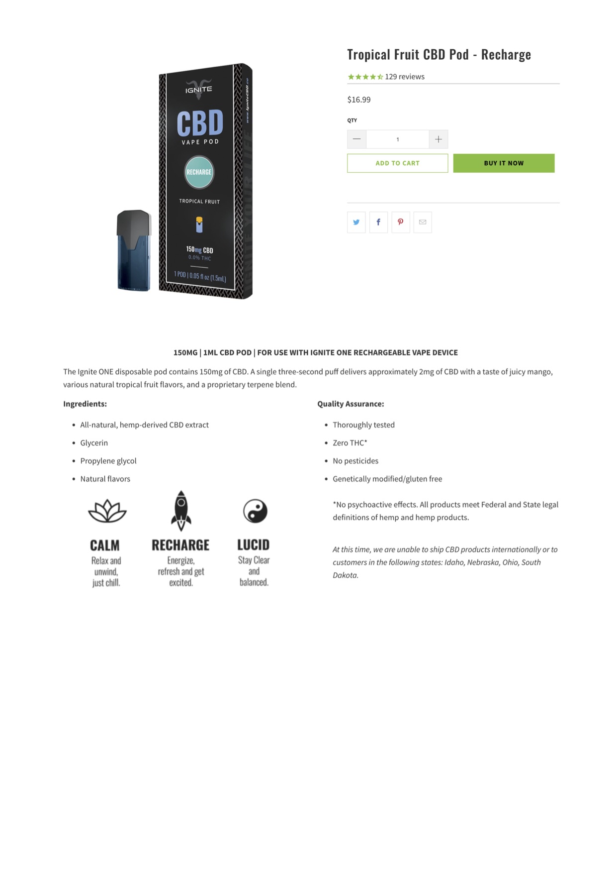 IGNITE CBD Pod Tropical Fruit (Recharge) Lab Reports theory describes details related to vapes products.