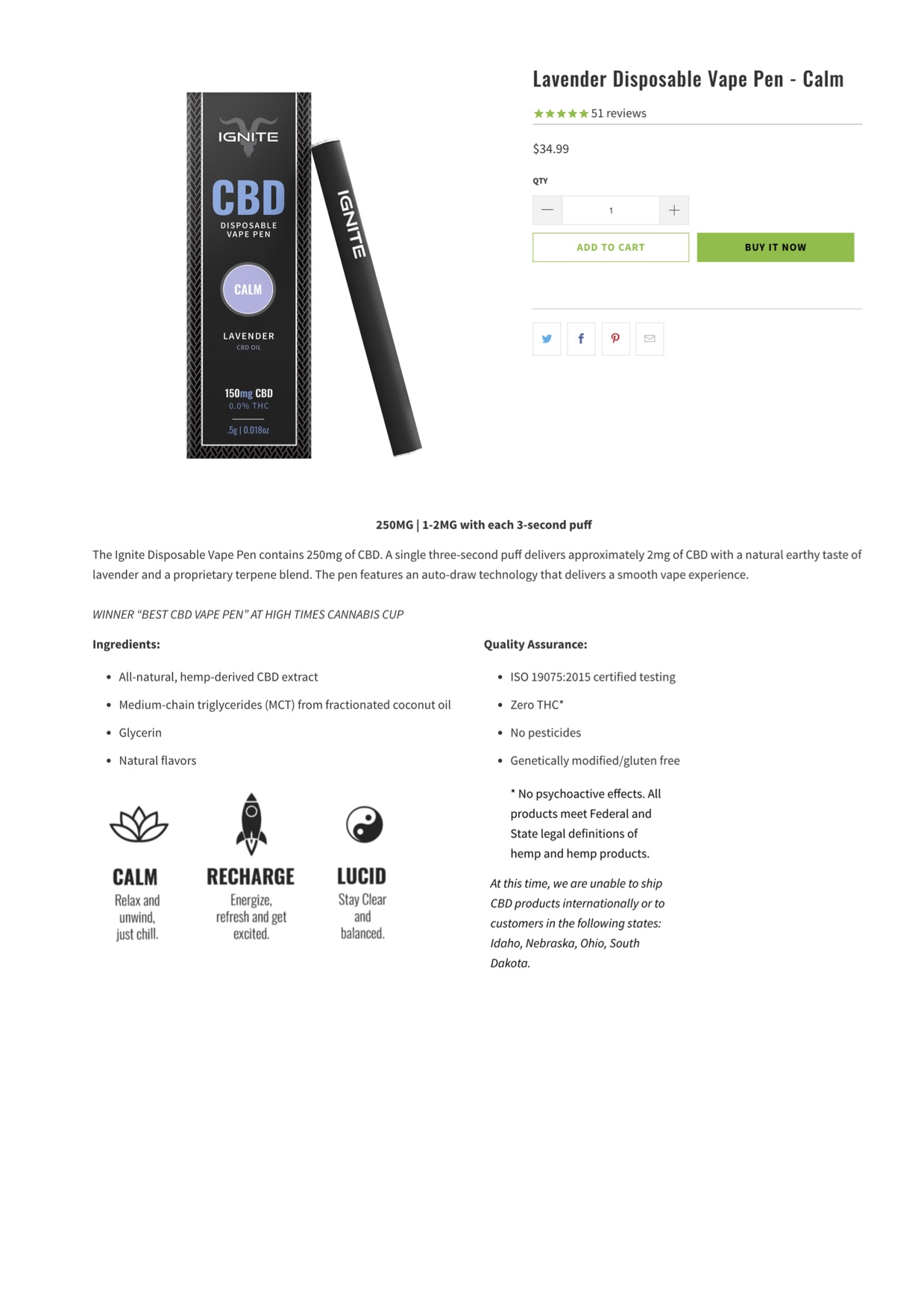 IGNITE CBD Vape Pen Lavender (Calm) Lab Report