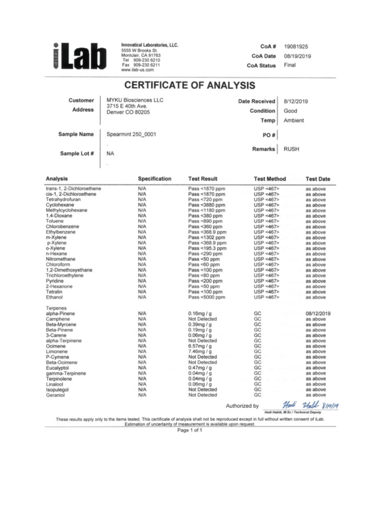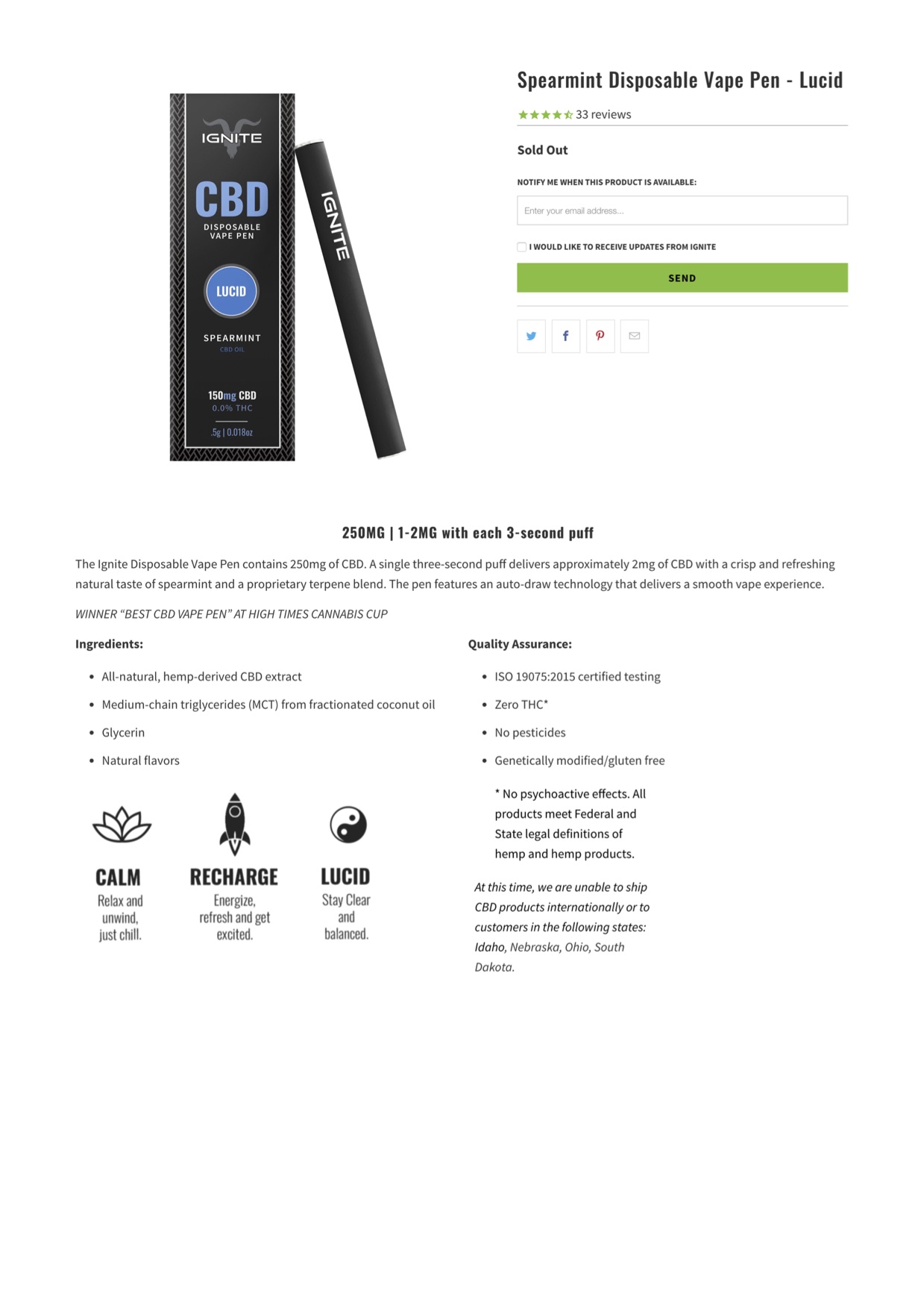 IGNITE CBD Vape Pen Spearmint (Lucid) Lab Reports sufficient background information related to vaping products.