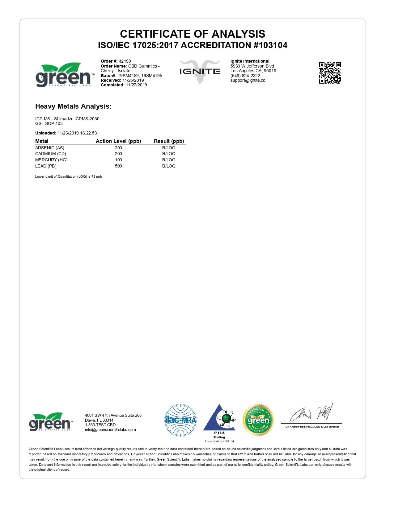 IGNITE Isolate CBD Gummies Cherry Lab Report is provided for your best interest in regards to vaping products.