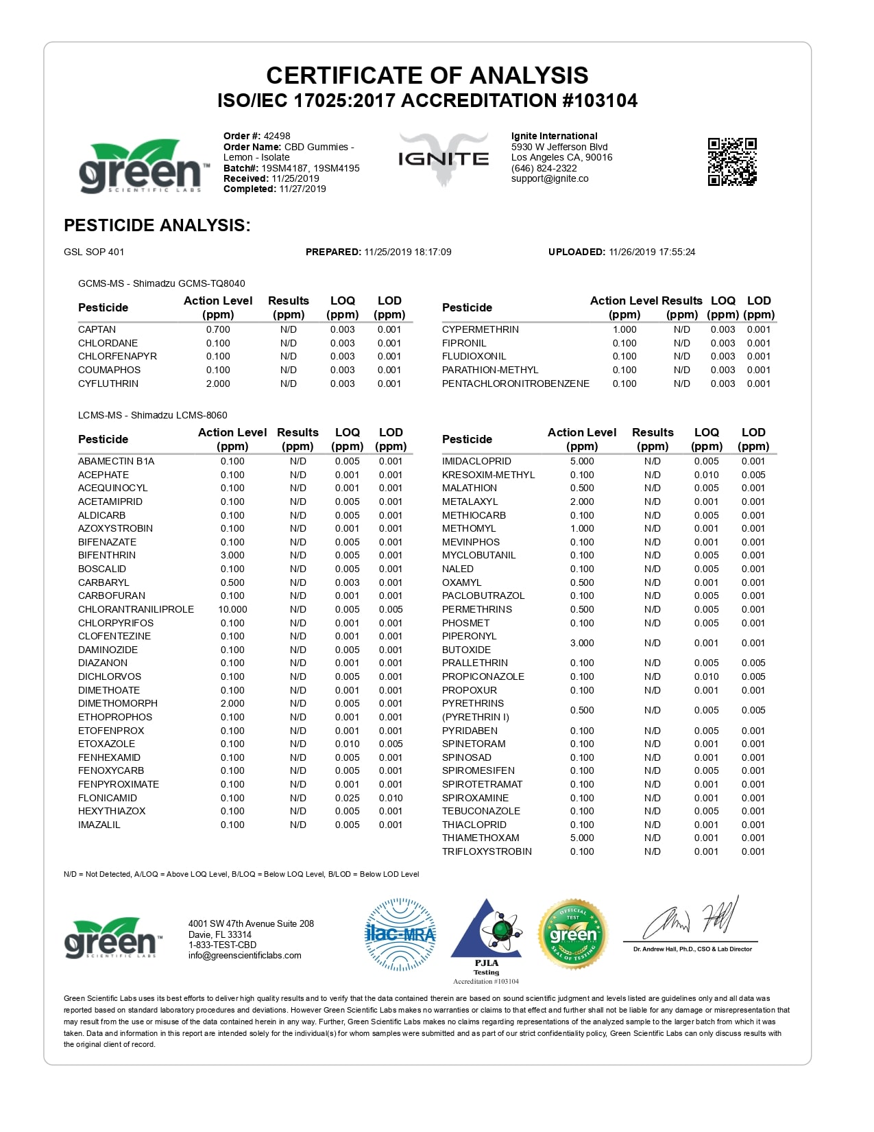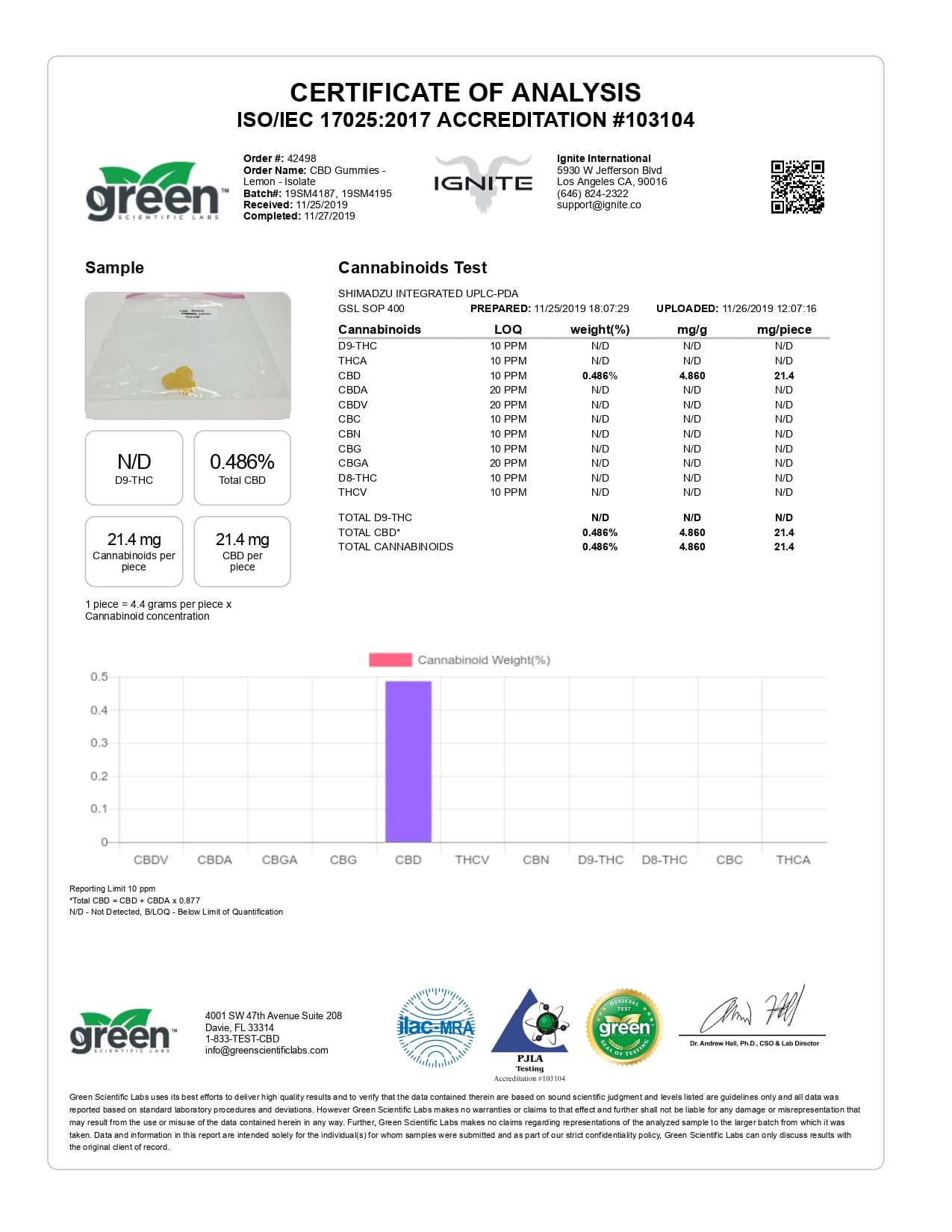 IGNITE Isolate CBD Gummies Lemon Lab Report is provided for your best interest in regards to vaping products.
