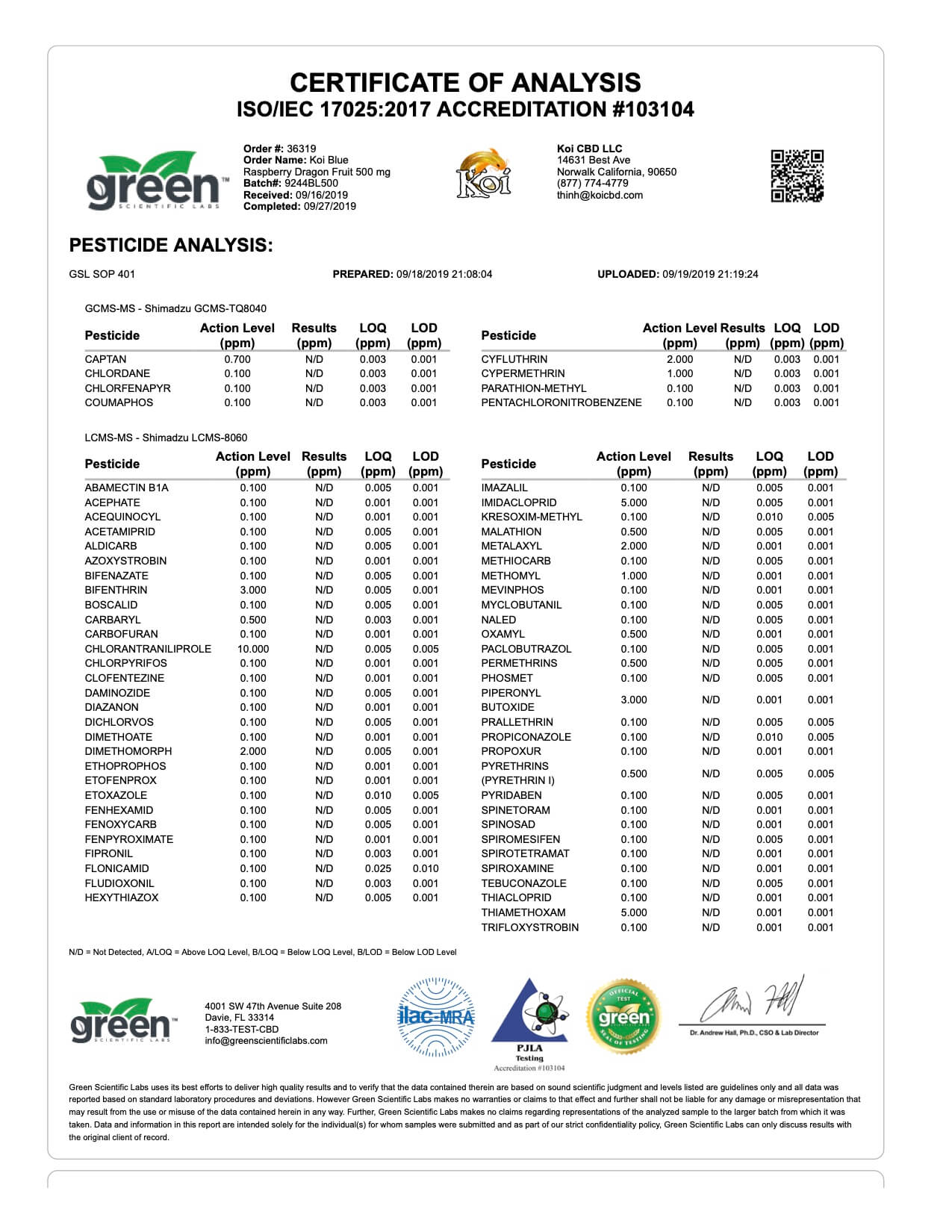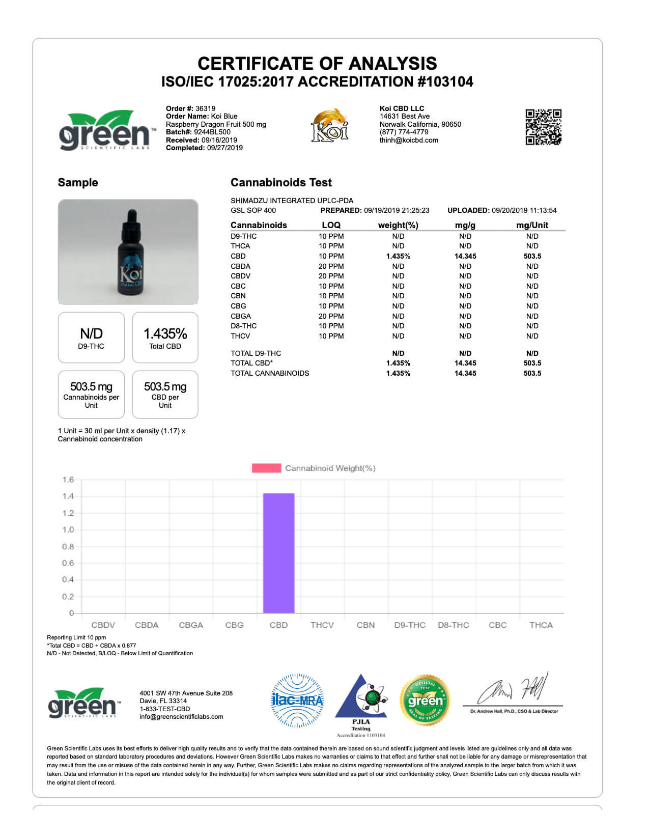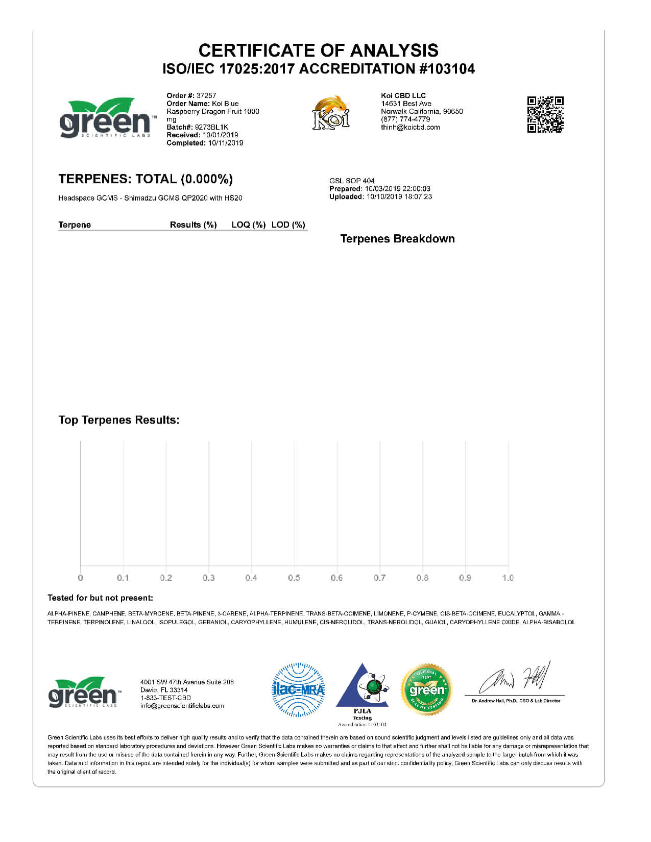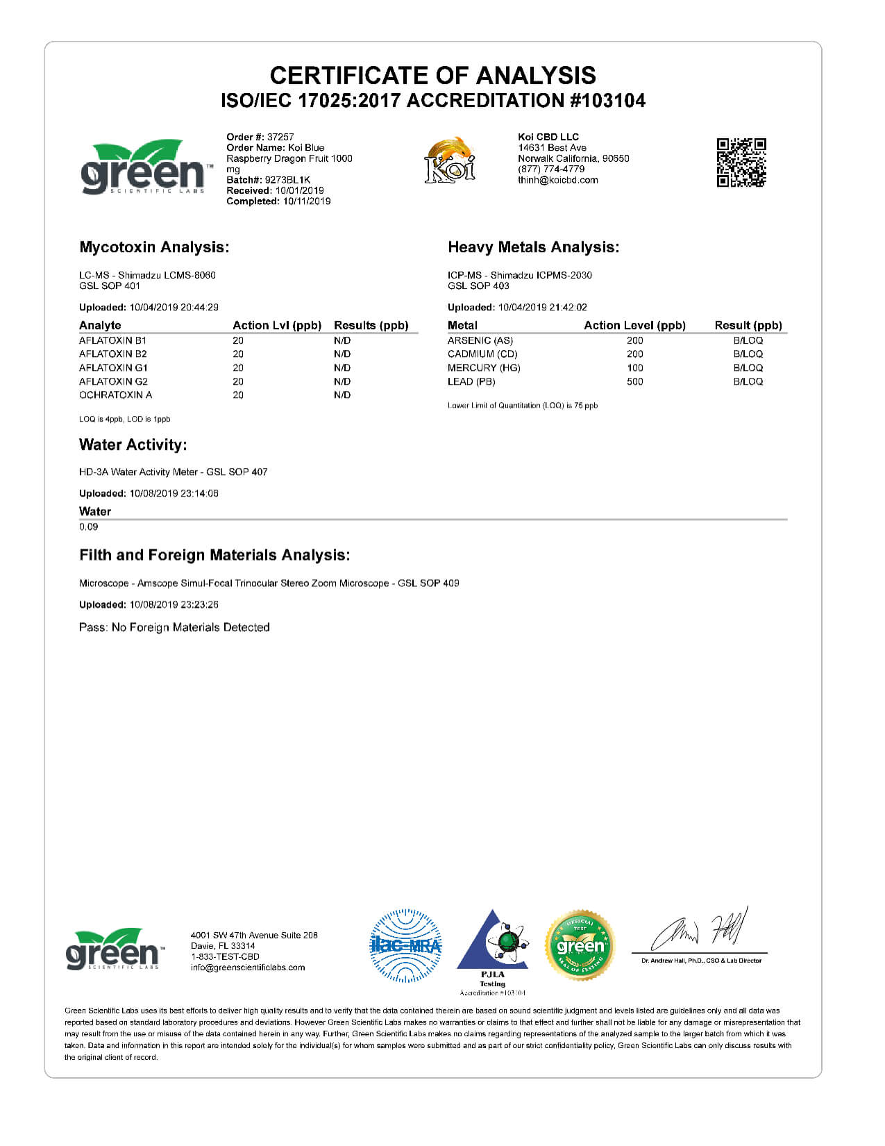 Koi CBD Blue Raspberry Dragon Fruit Lab Reports presented results to assure an understanding related to vapes products.