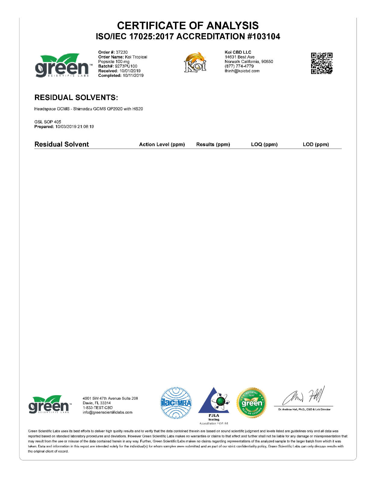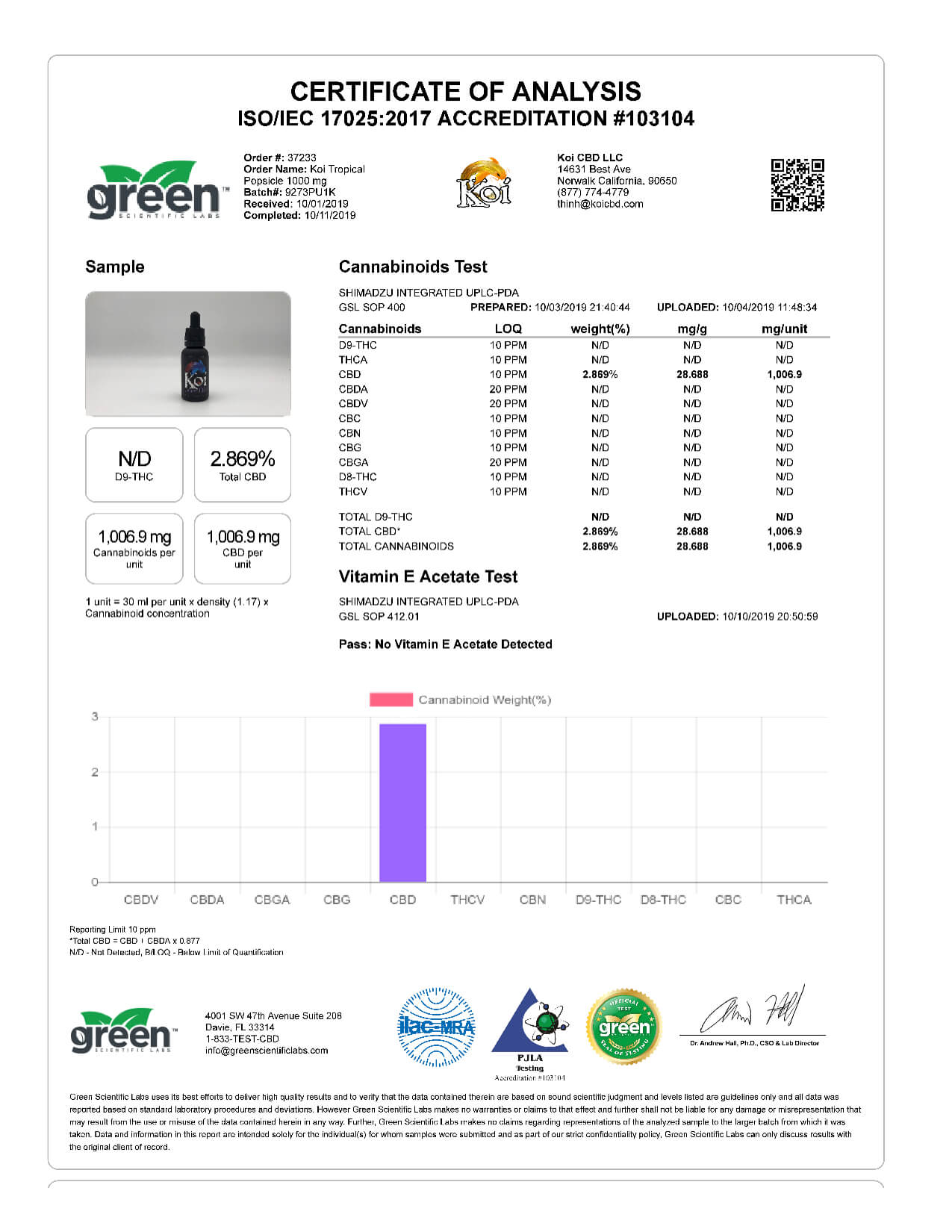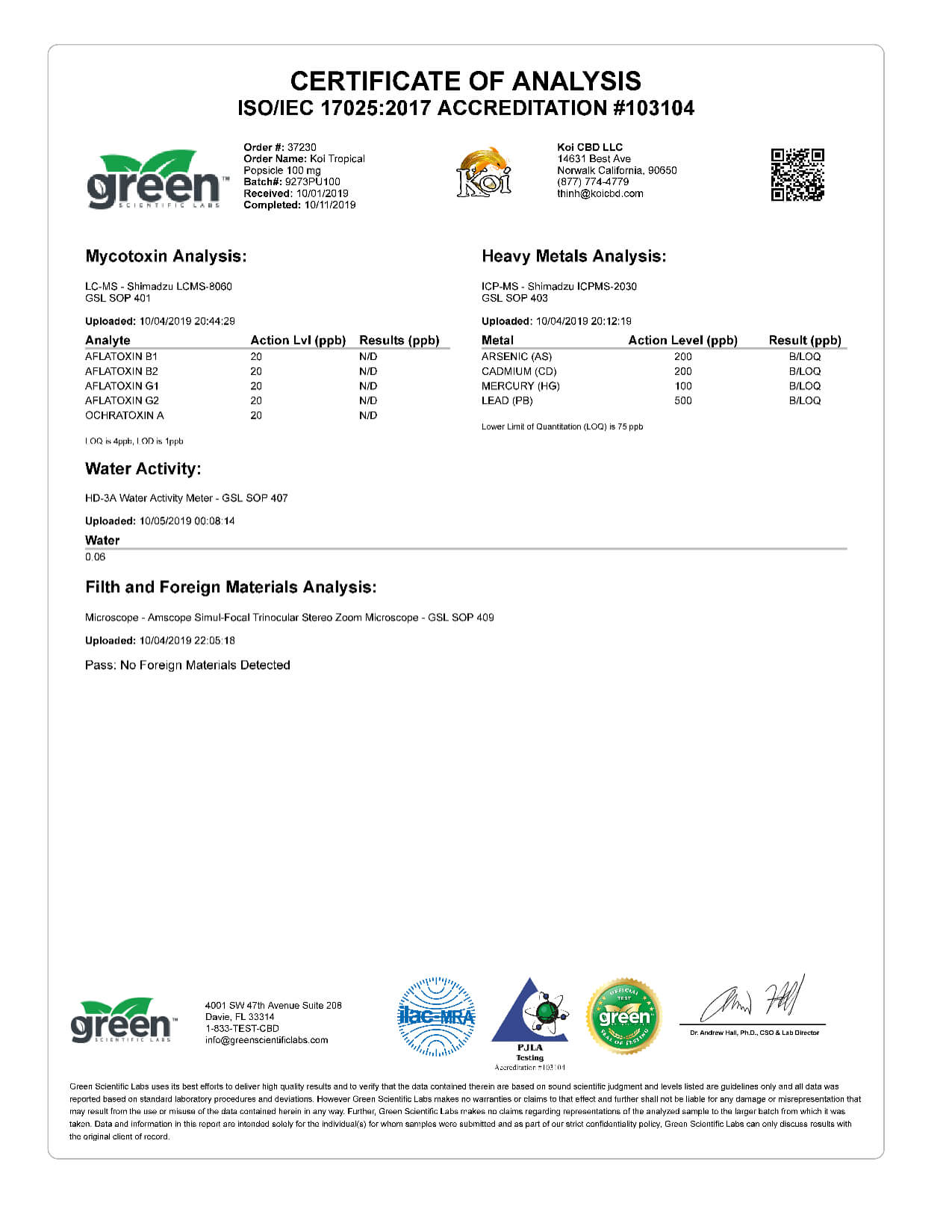 Koi CBD Tropical Popsicle Vape Oil Lab Reports opinion provided to ease your mind concerning vapes products.