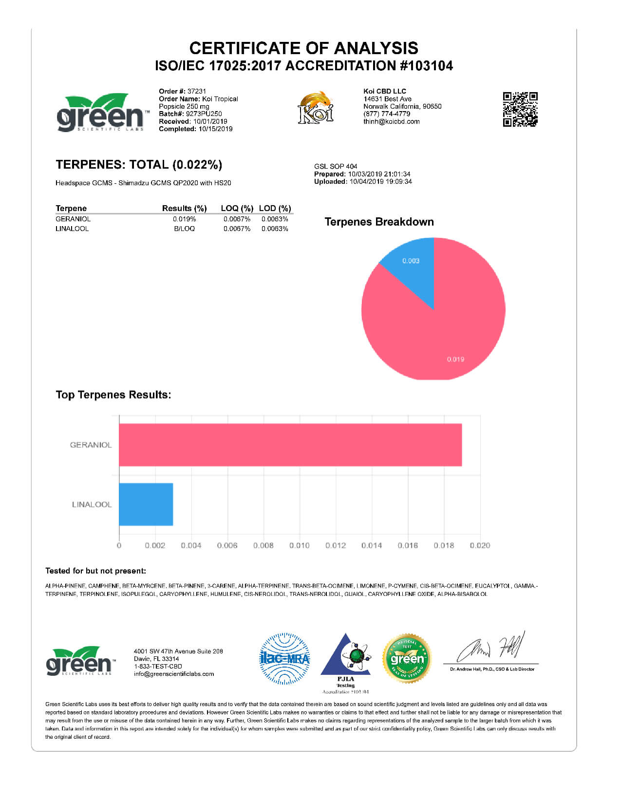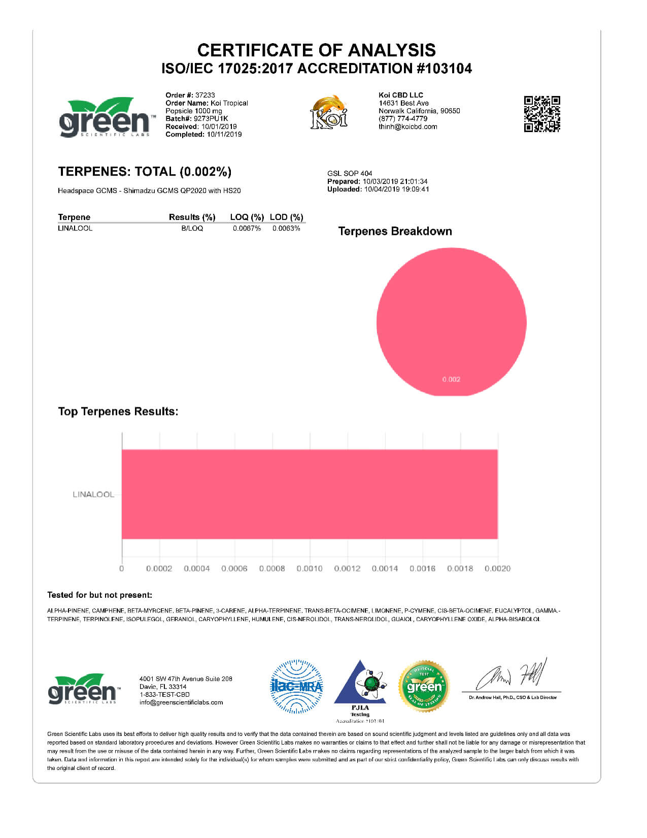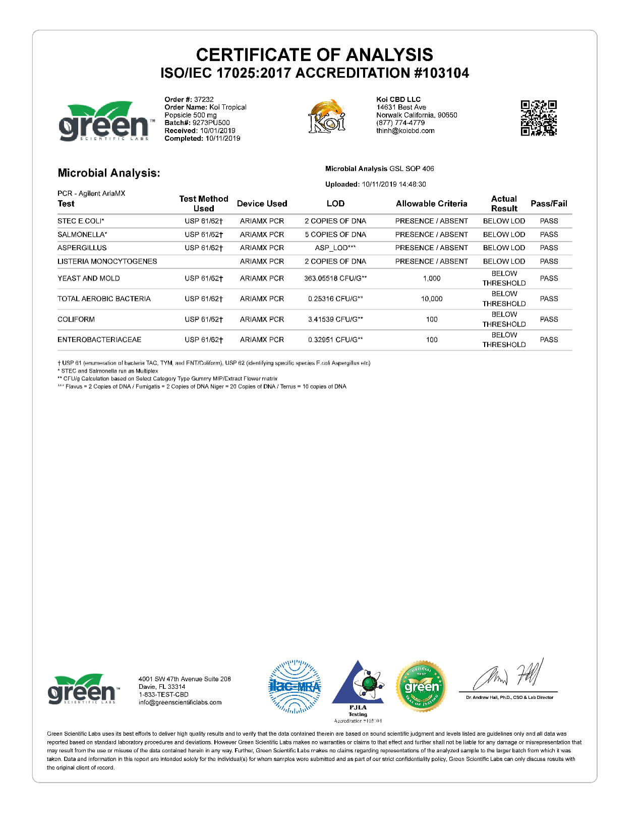 Koi CBD Tropical Popsicle Vape Oil Lab Reports opinion provided to ease your mind concerning vapes products.