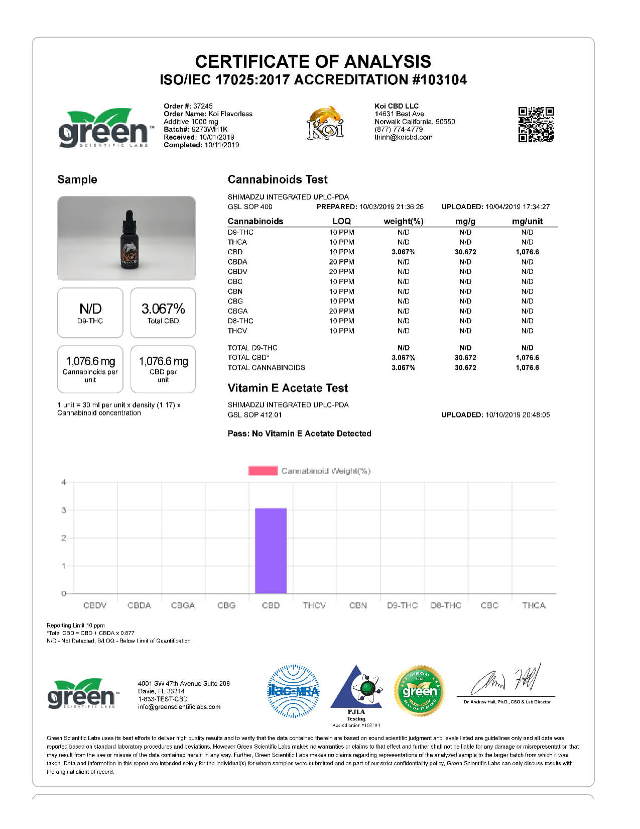 Koi CBD Flavorless Koi White Vape Oil Lab Reports conclusion reassuring details related to vapes products.