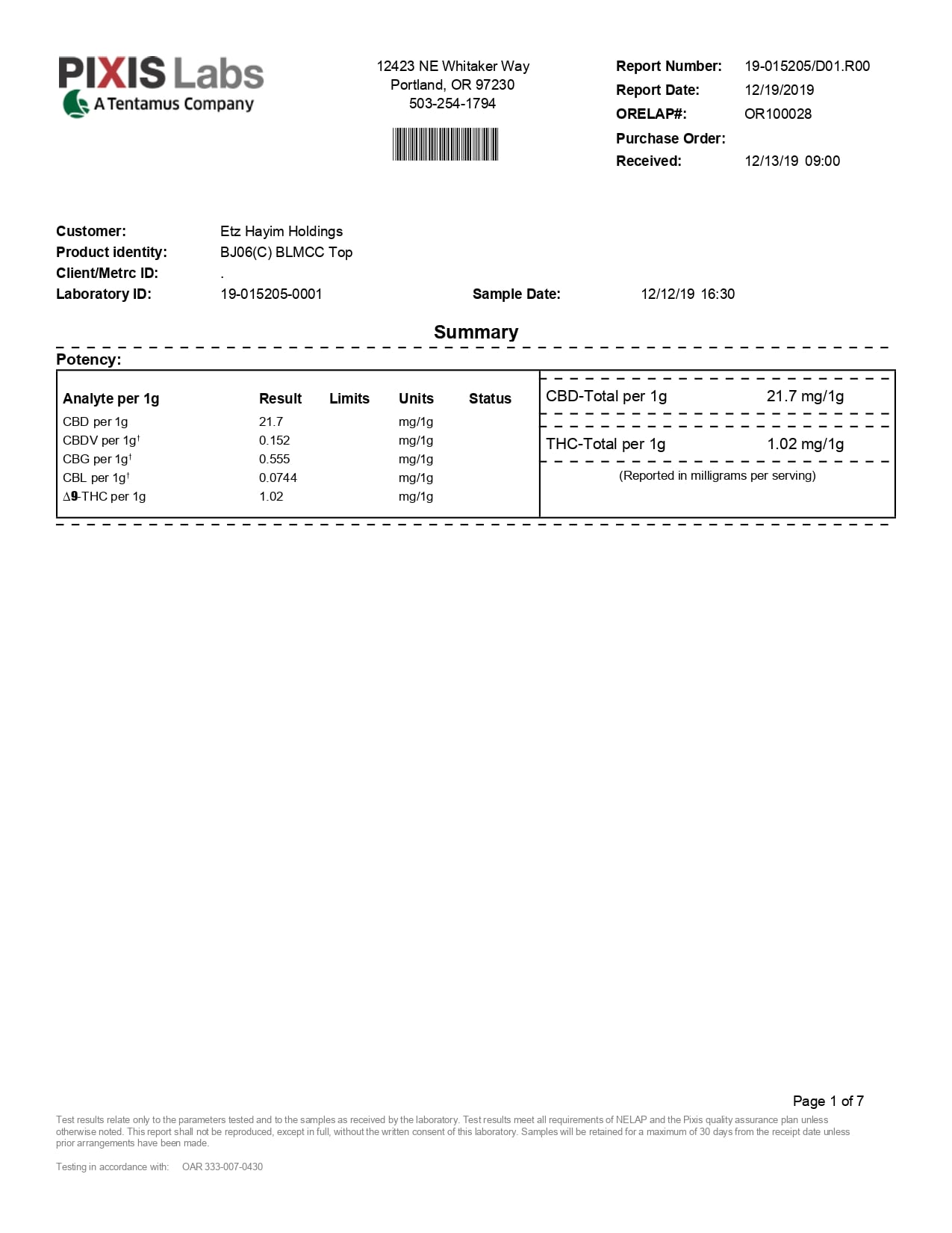 Lazarus Naturals CBD Balm Cedar Citrus Lab Report important details about vaping products.