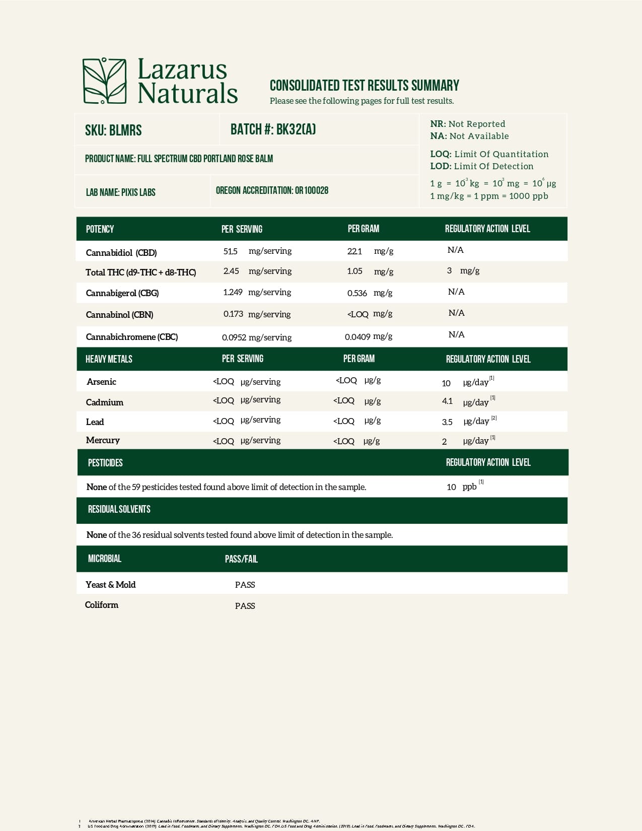 Lazarus Naturals CBD Balm Portland Rose Lab Report