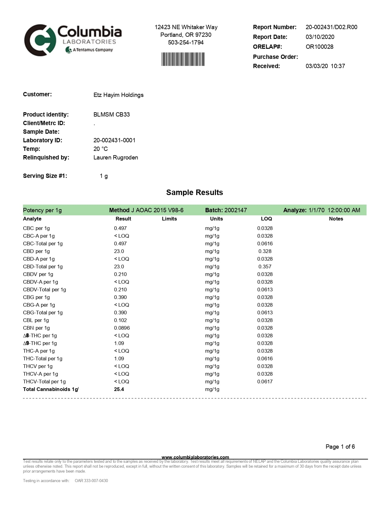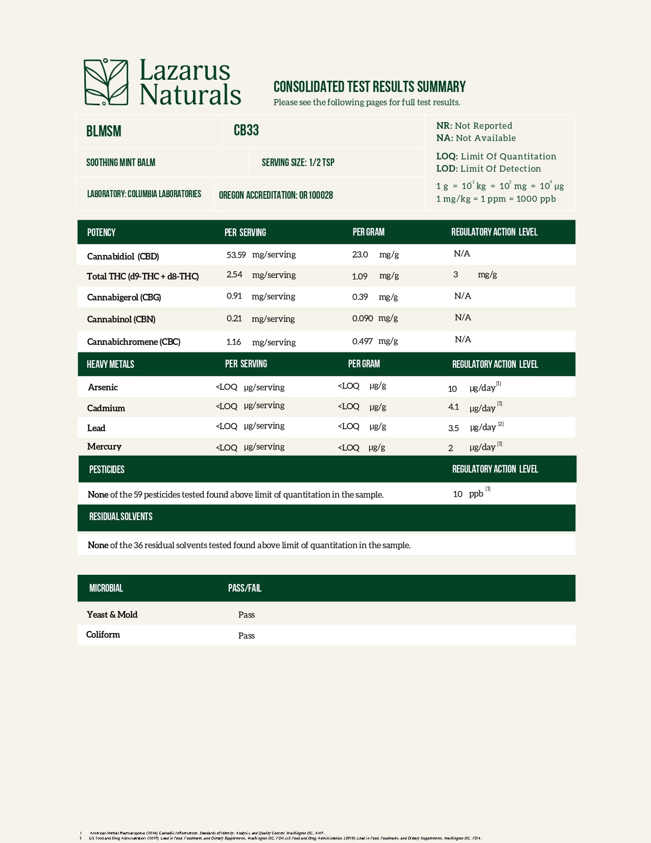 Lazarus Naturals CBD Balm Soothing Mint Lab Report