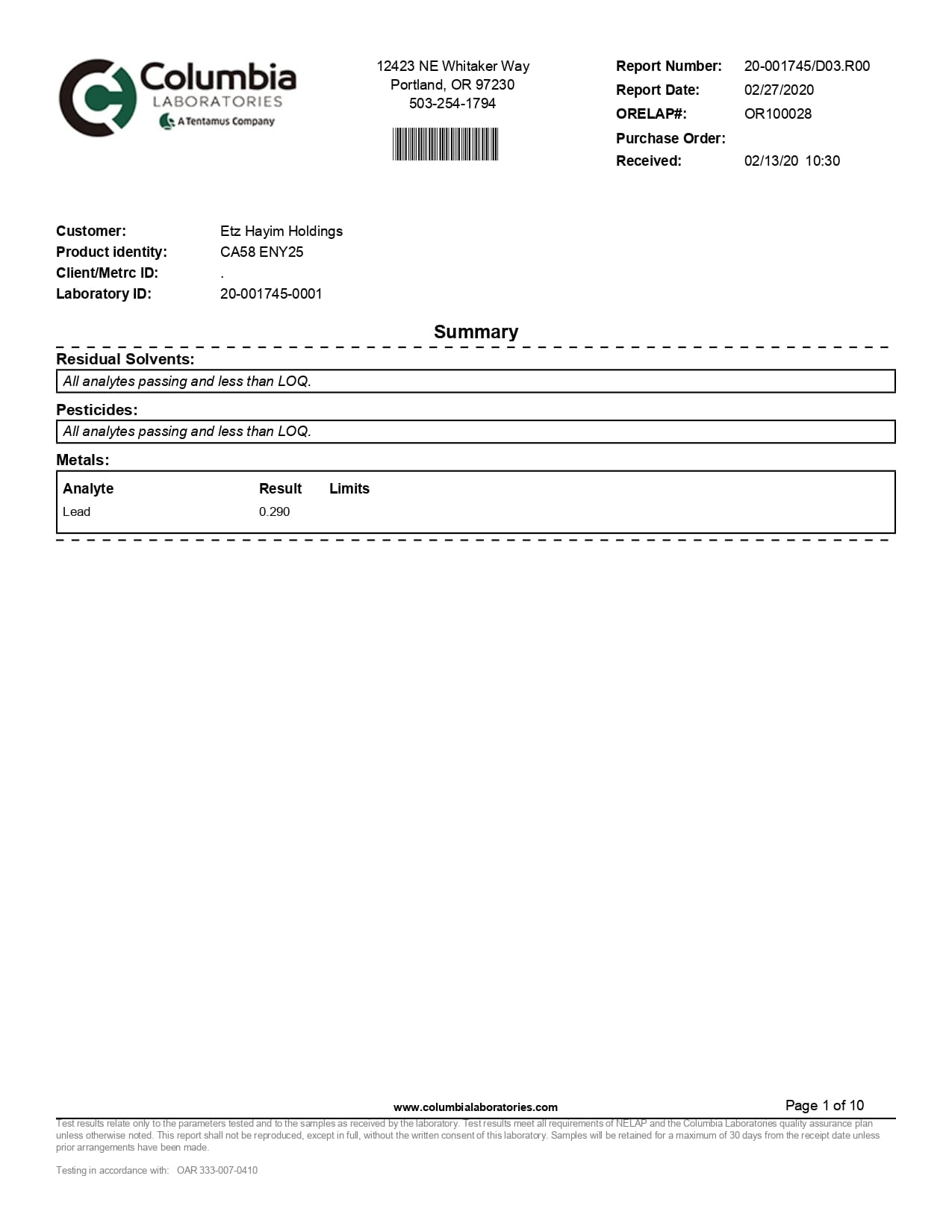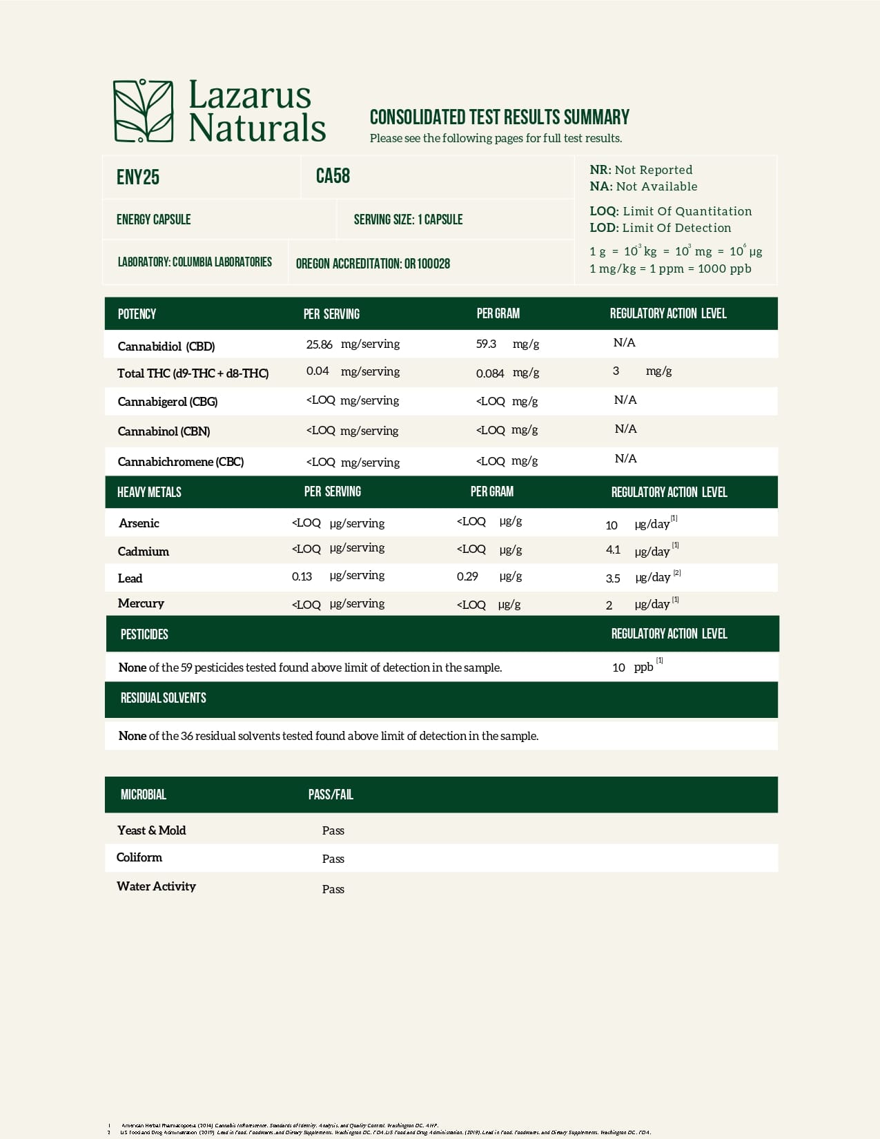 Lazarus Naturals CBD Capsules Energy Blend Lab Report important details about vaping products.