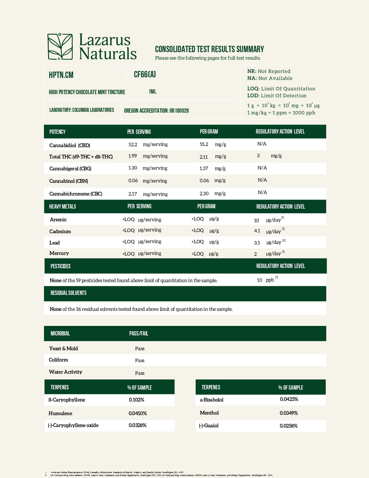Lazarus Naturals CBD Tincture Chocolate Mint Lab Report important details about vaping products.