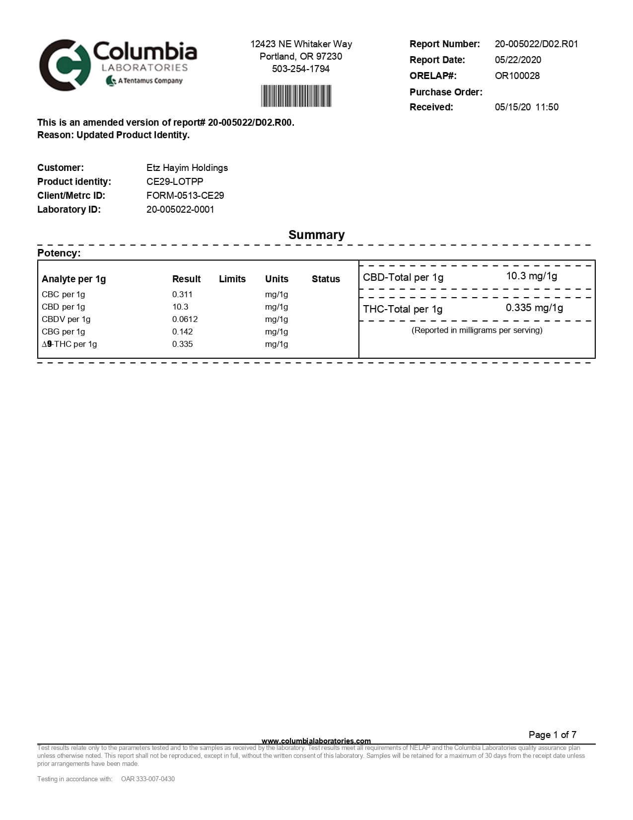 Lazarus Naturals CBD Topical Pacific Pine Lotion Lab Report