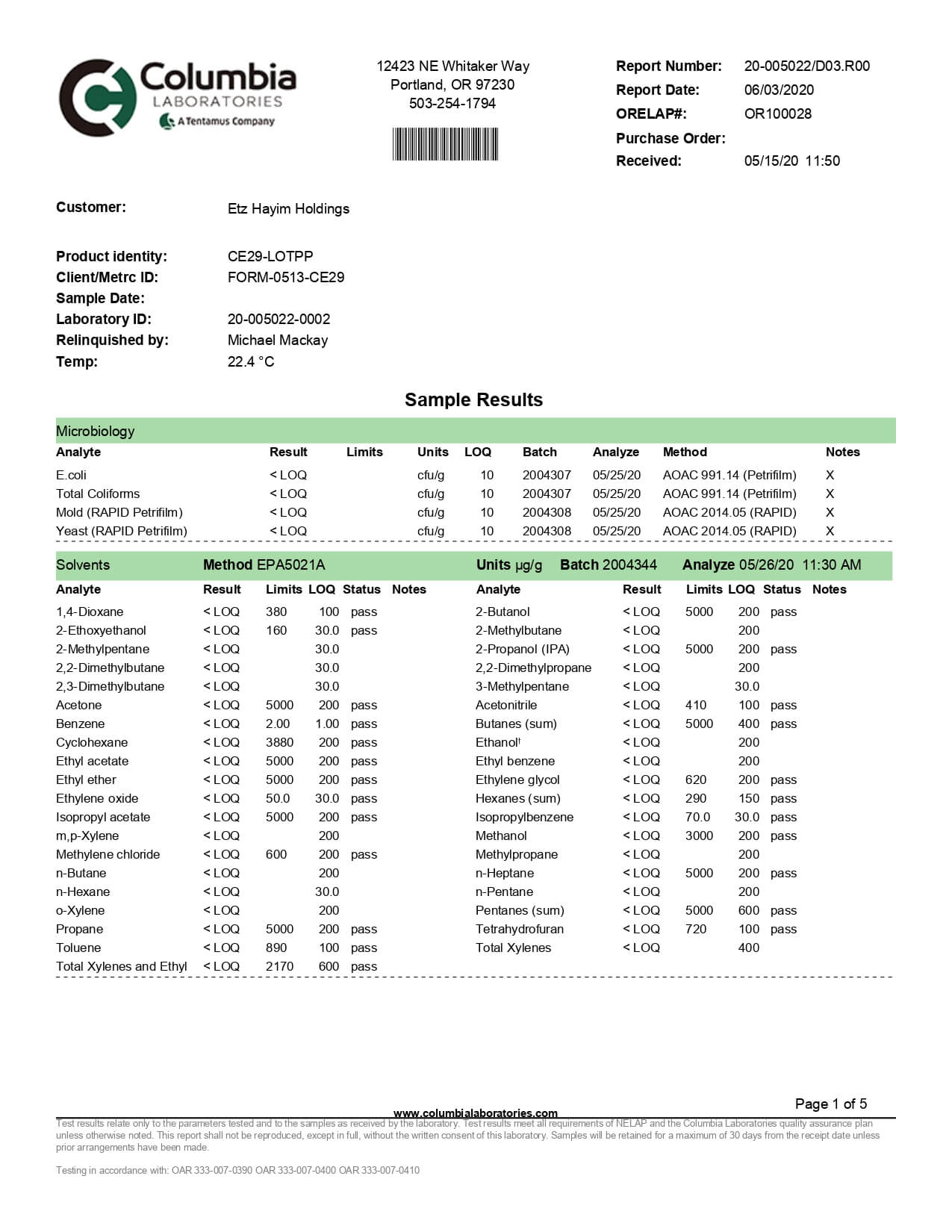 Lazarus Naturals CBD Topical Pacific Pine Lotion Lab Report important details about vaping products.
