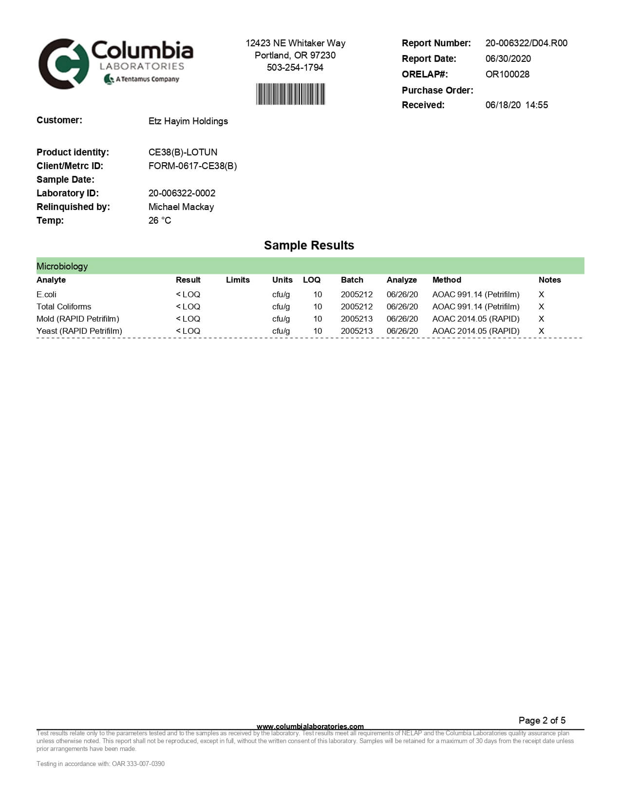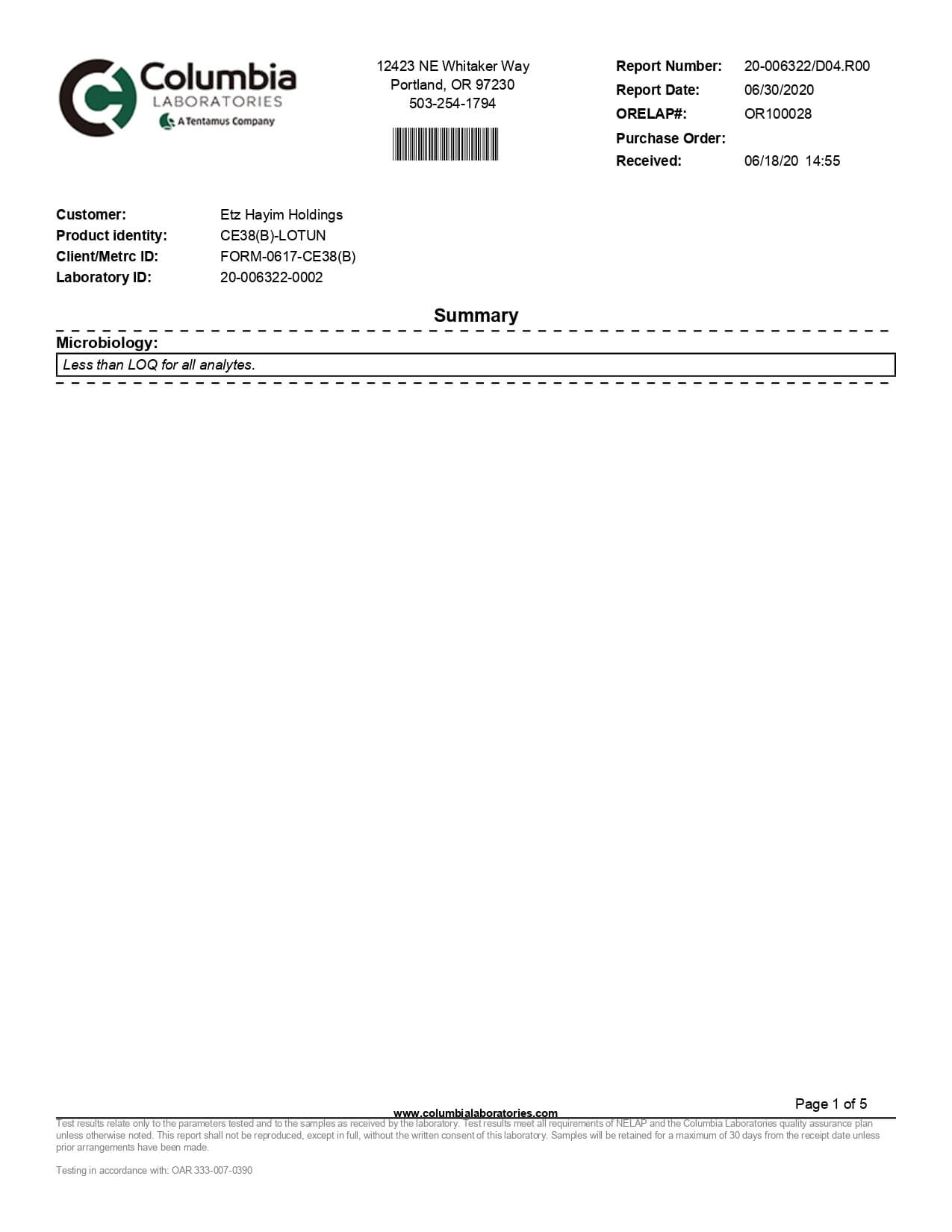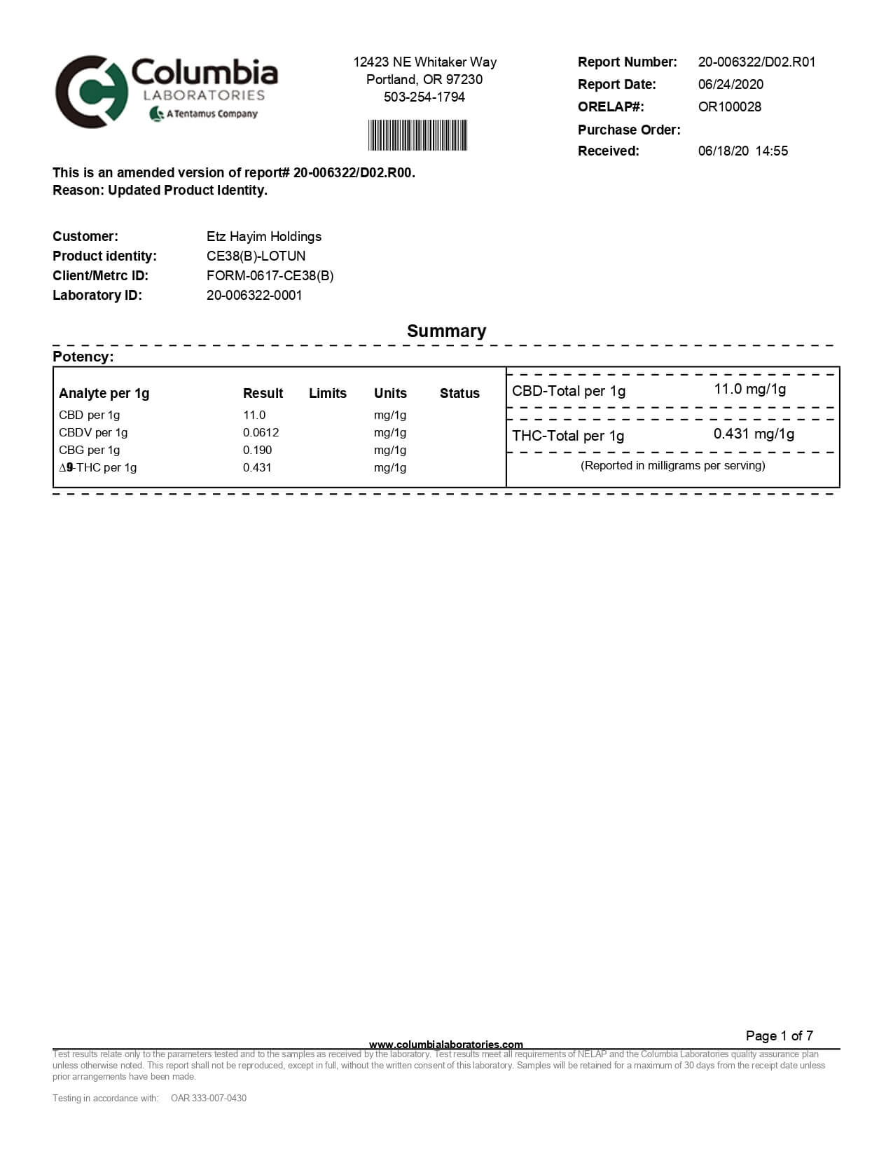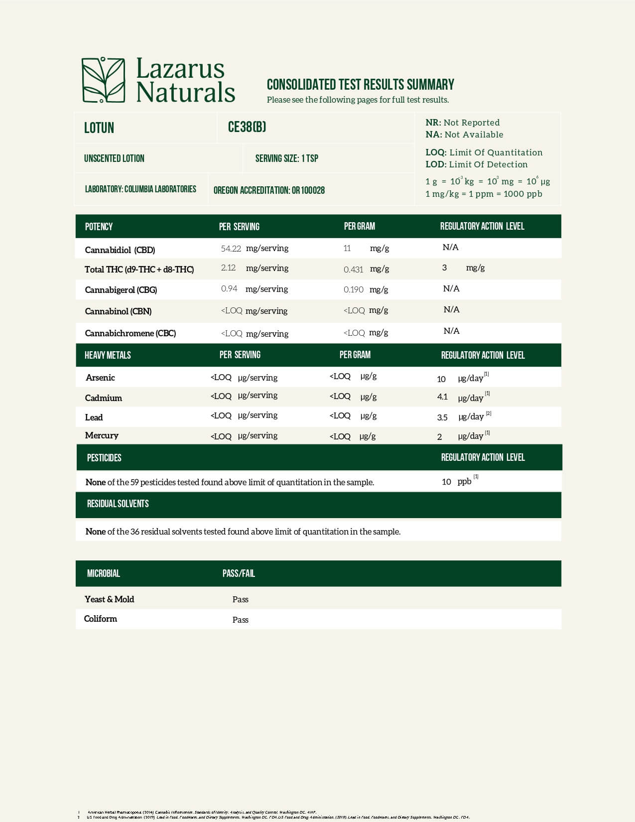 Lazarus Naturals CBD Topical Unscented Lotion Lab Report