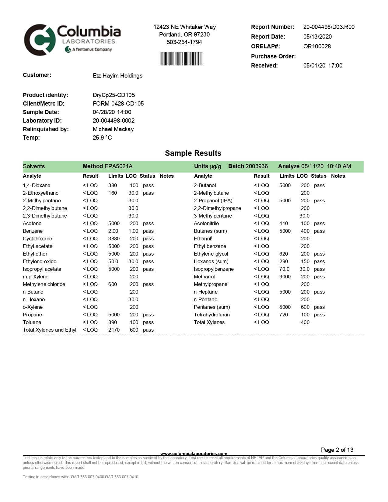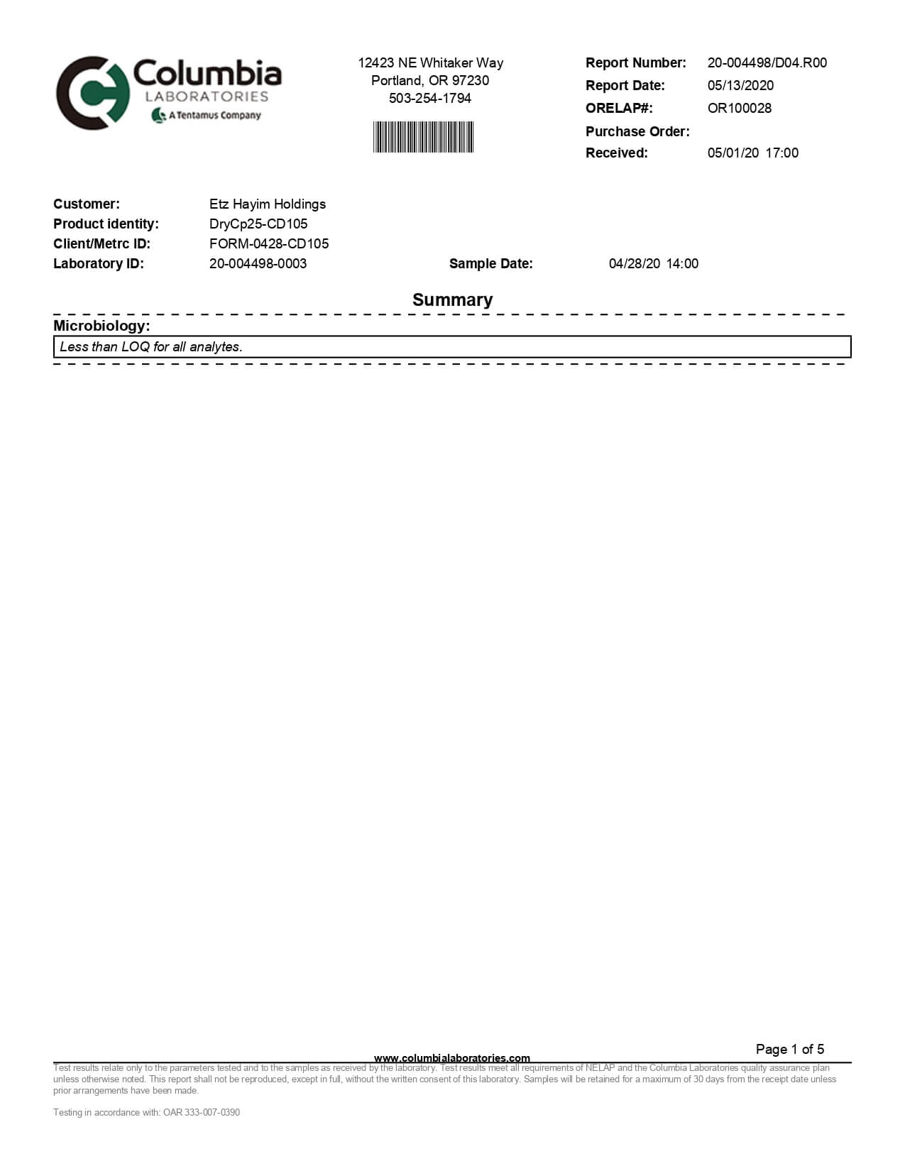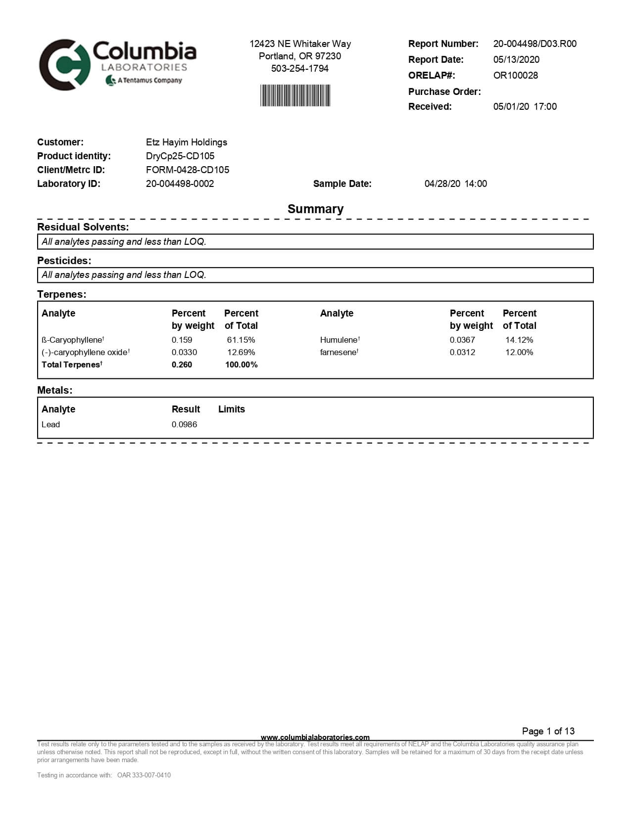 Lazarus Naturals Full Spectrum CBD Capsules 25mg Lab Report