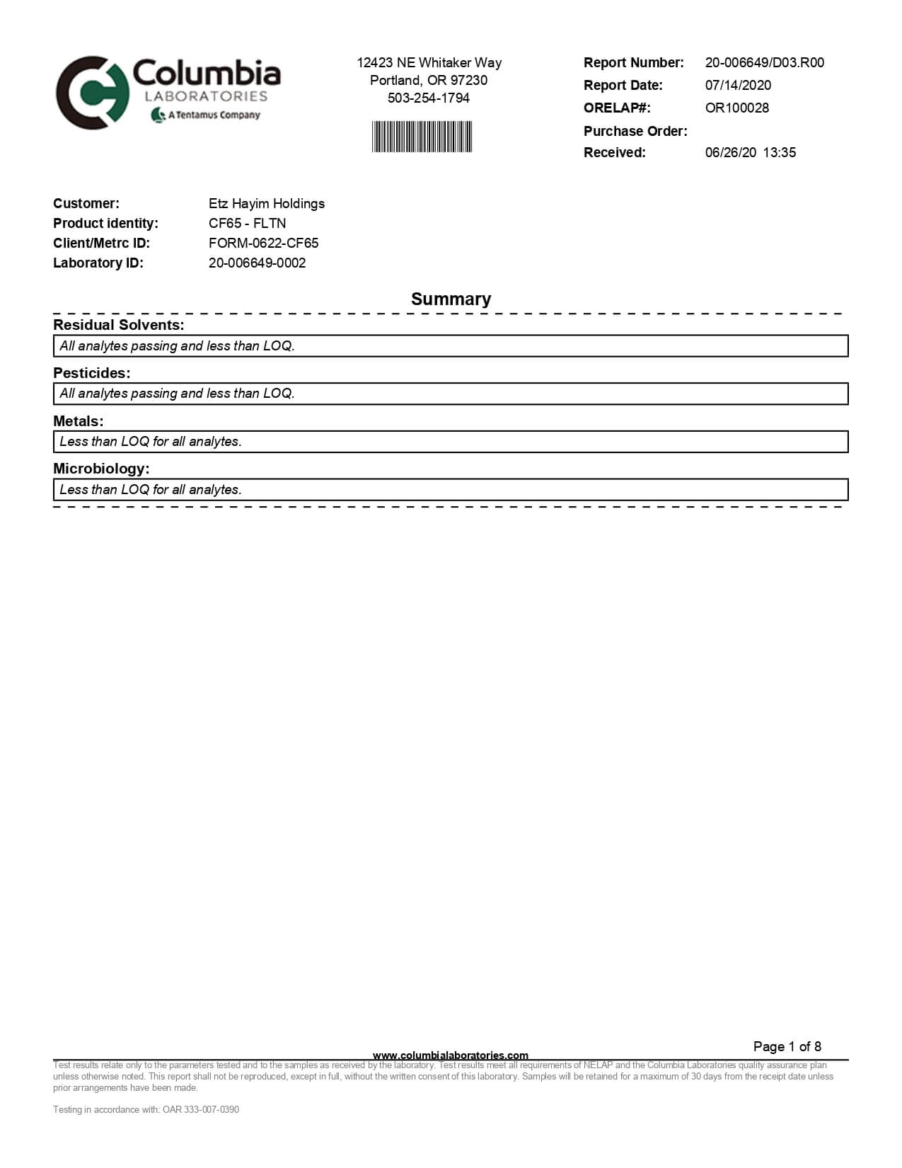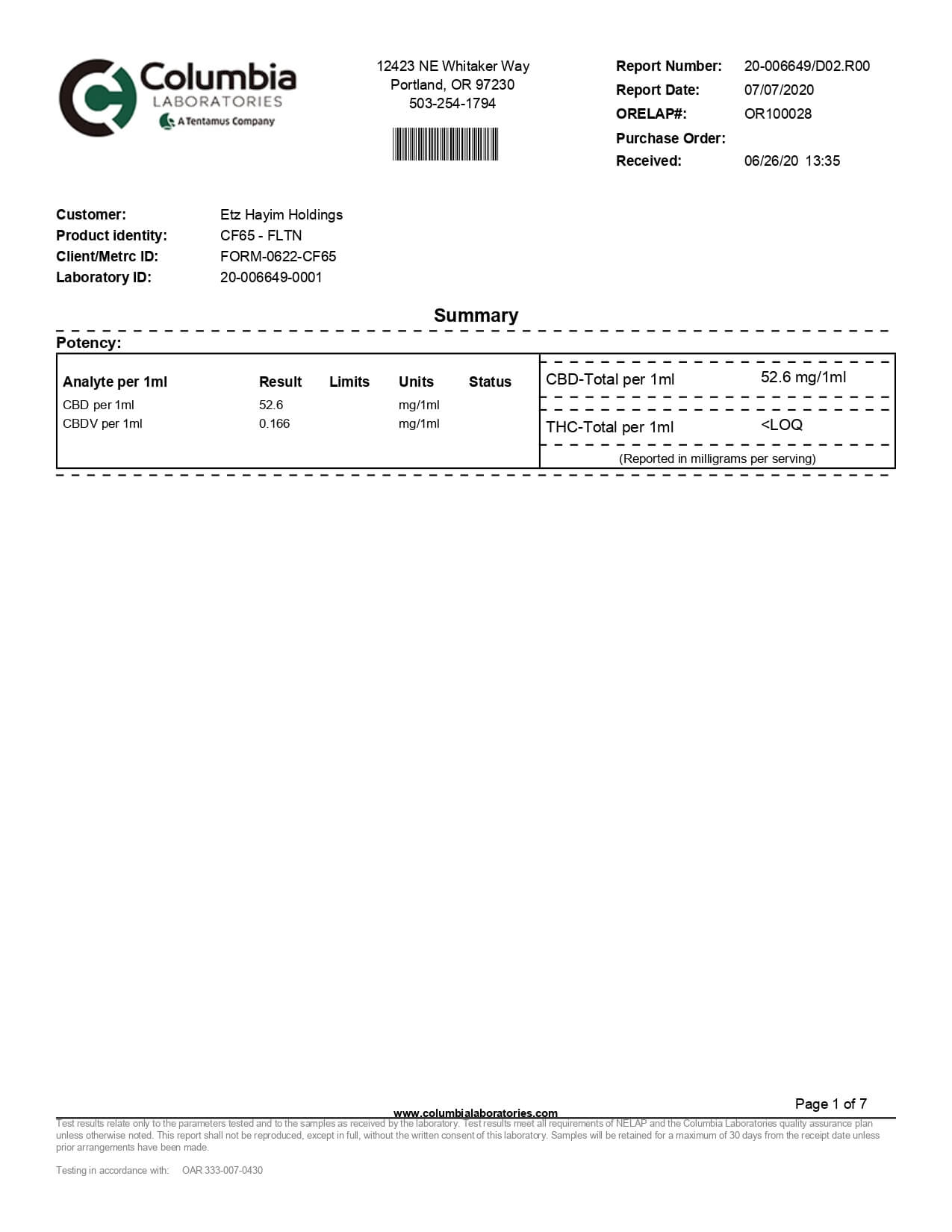 Lazarus Naturals High Potency CBD Tincture Flavorless Lab Report important details about vaping products.