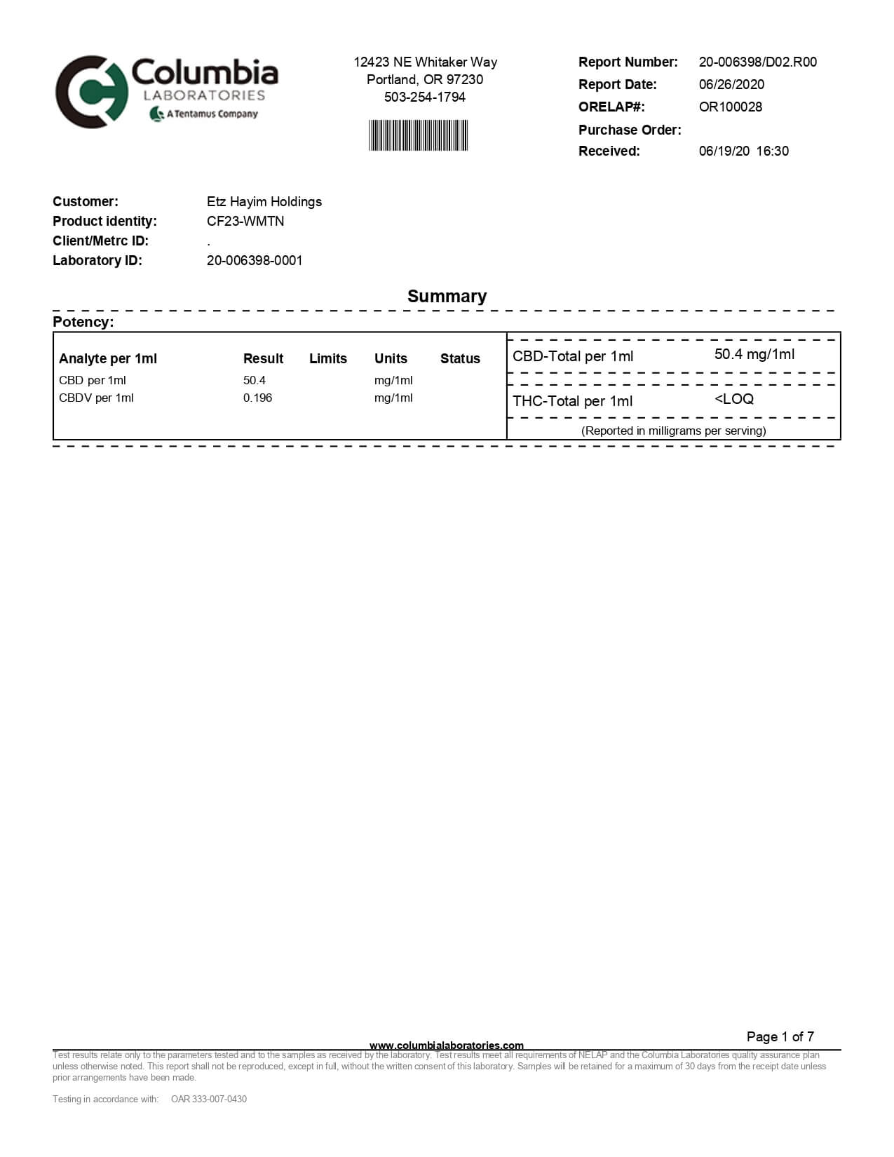 Lazarus Naturals High Potency CBD Tincture Wintermint Lab Report important details about vaping products.