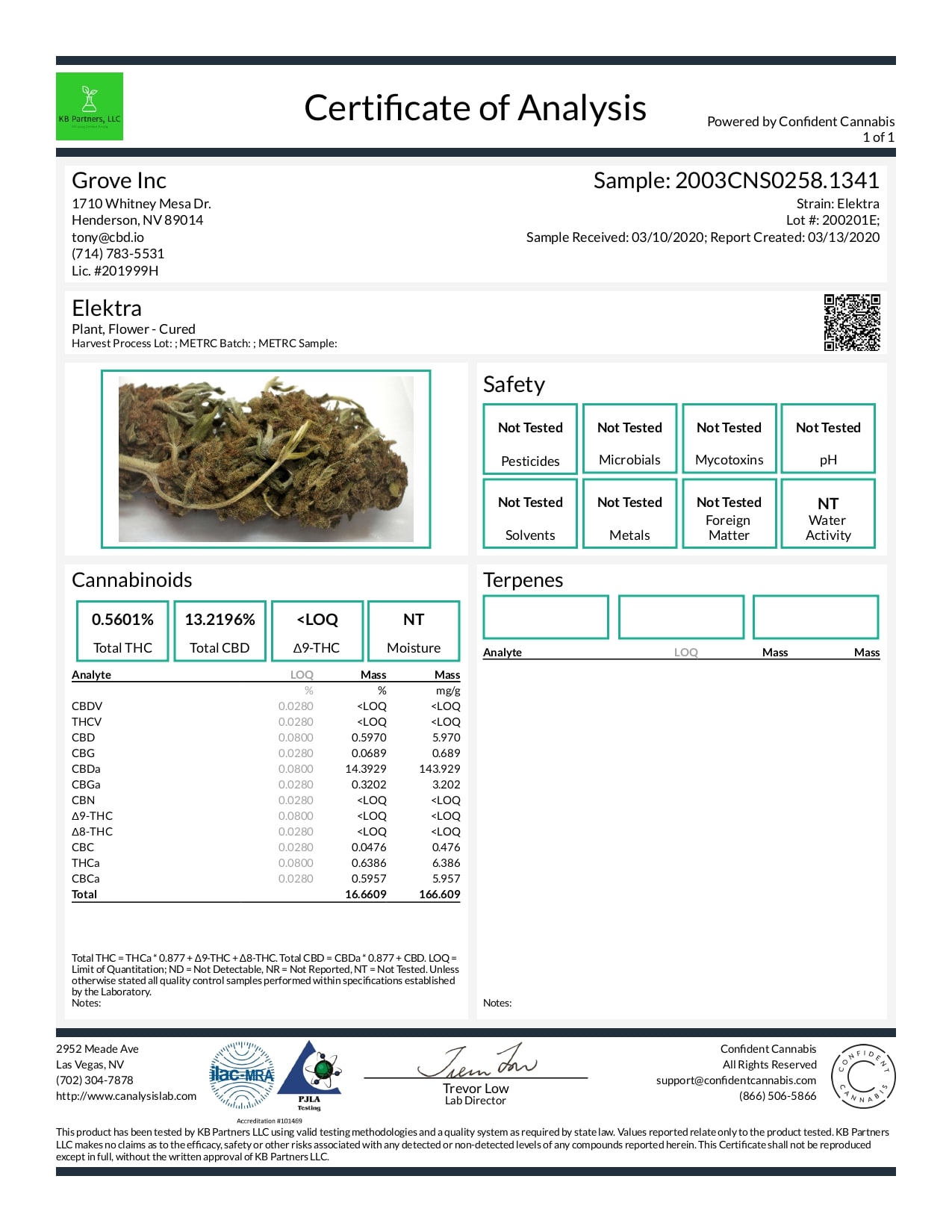 LOOT CBD Hemp Flower Elektra Lab Reports test results with reference to CBD products.