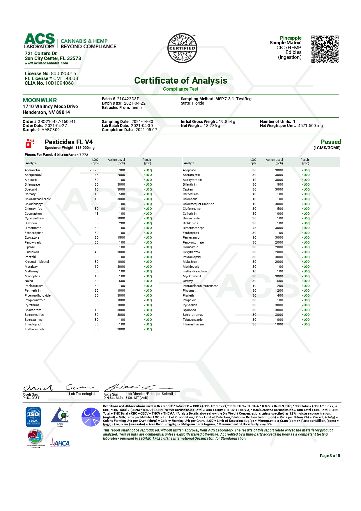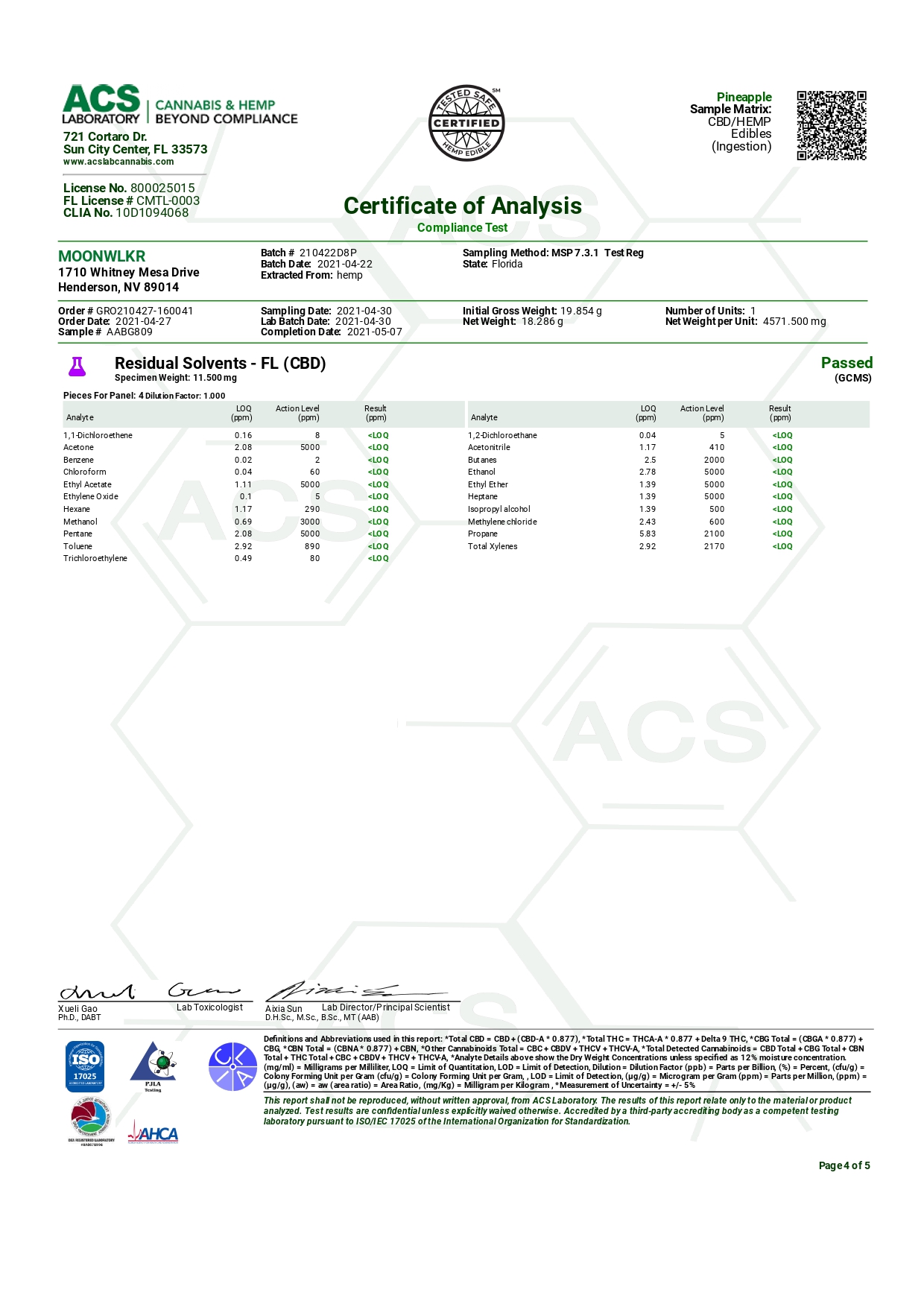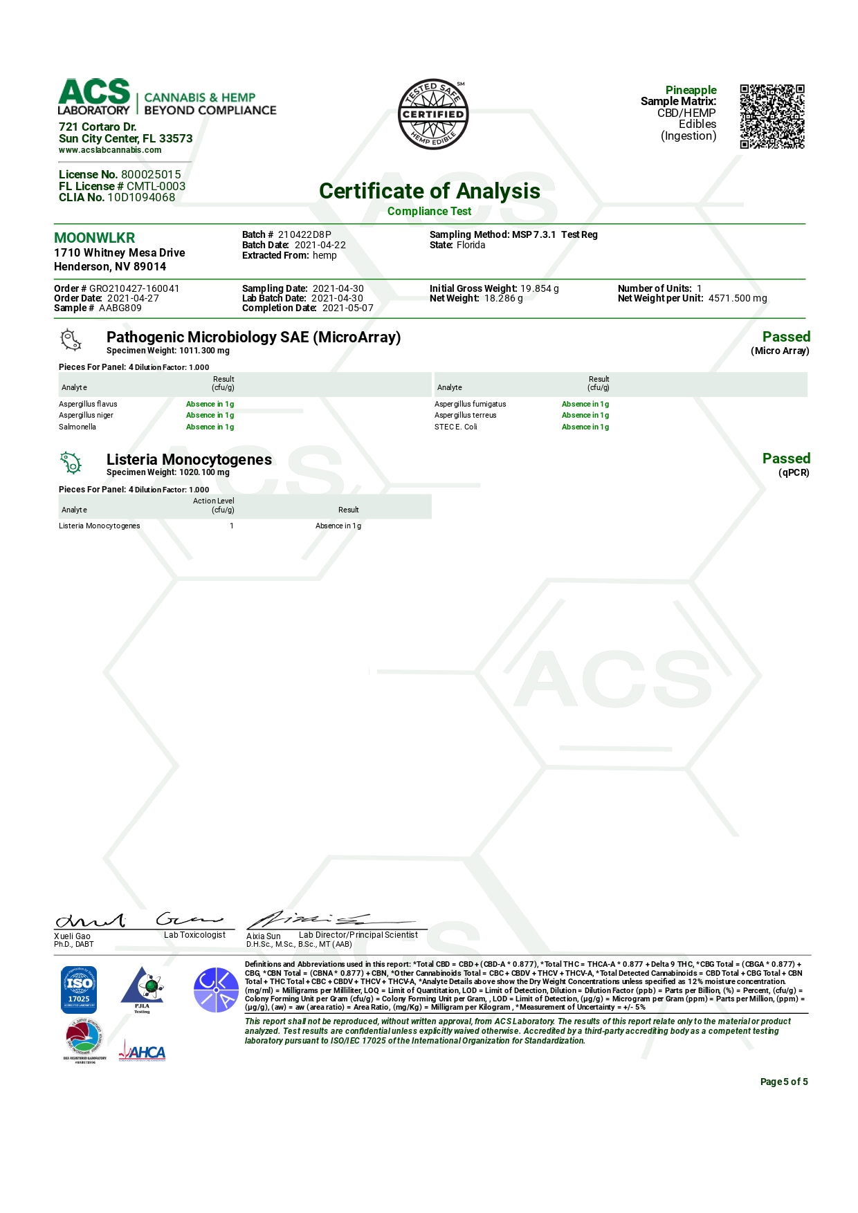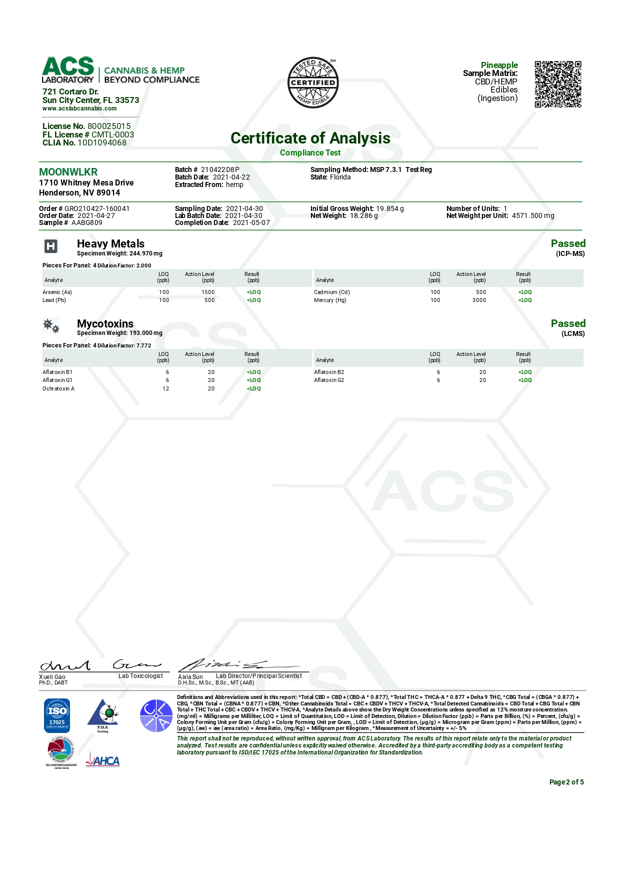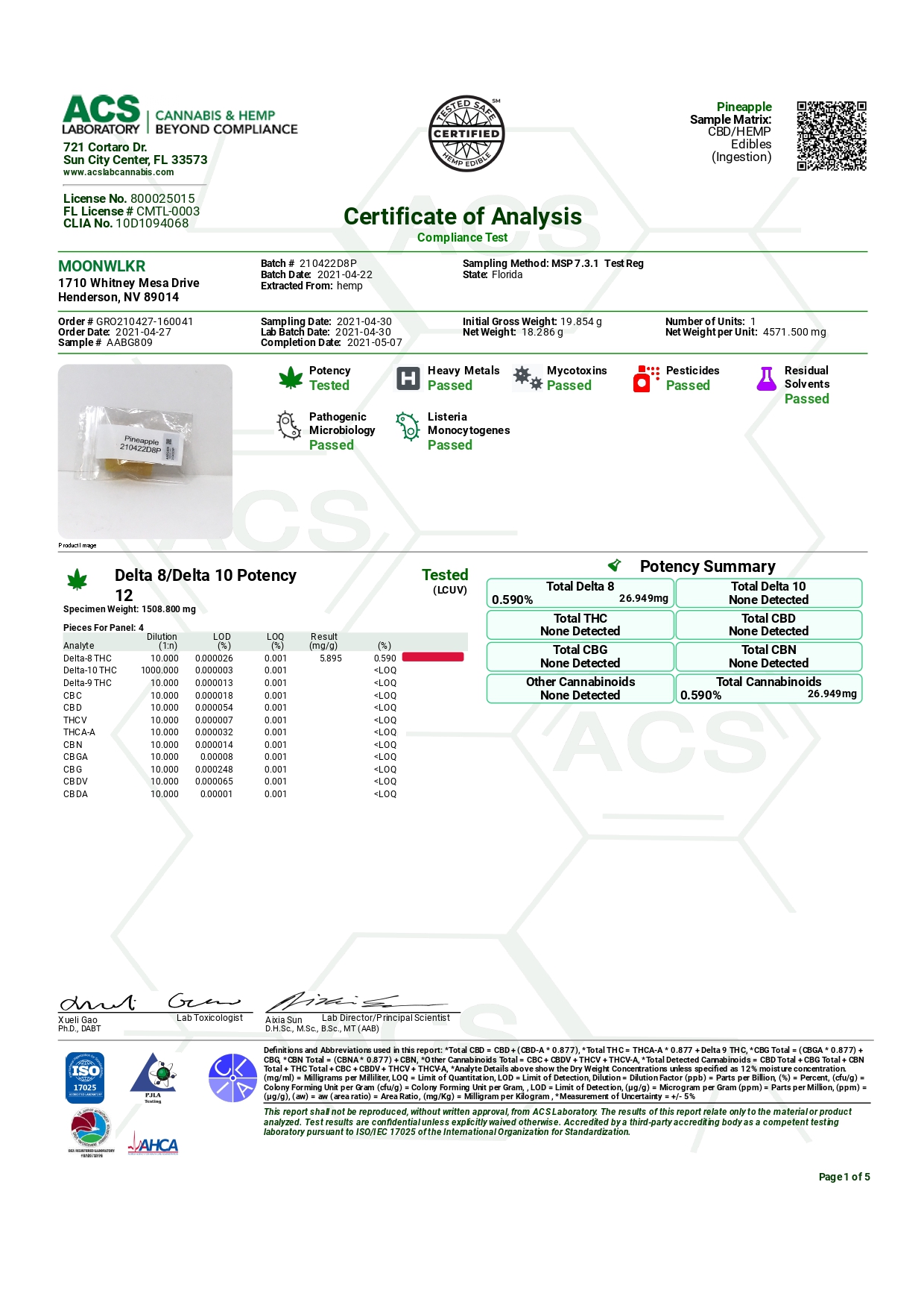 MoonWLKR Delta 8 THC Gummies Pandora Lab Report