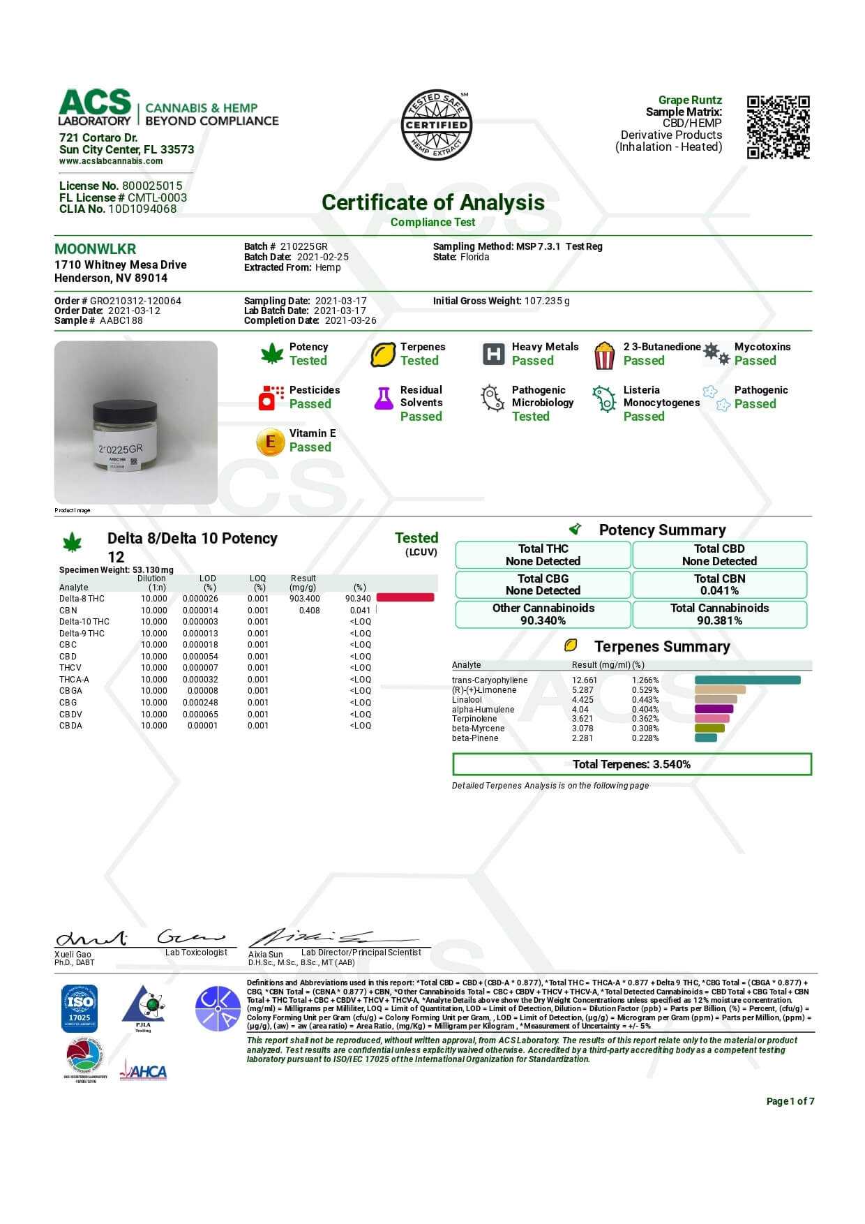 MoonWlkr Delta 8 THC Himalia Vape Cartridge Lab Report important details about vaping products.