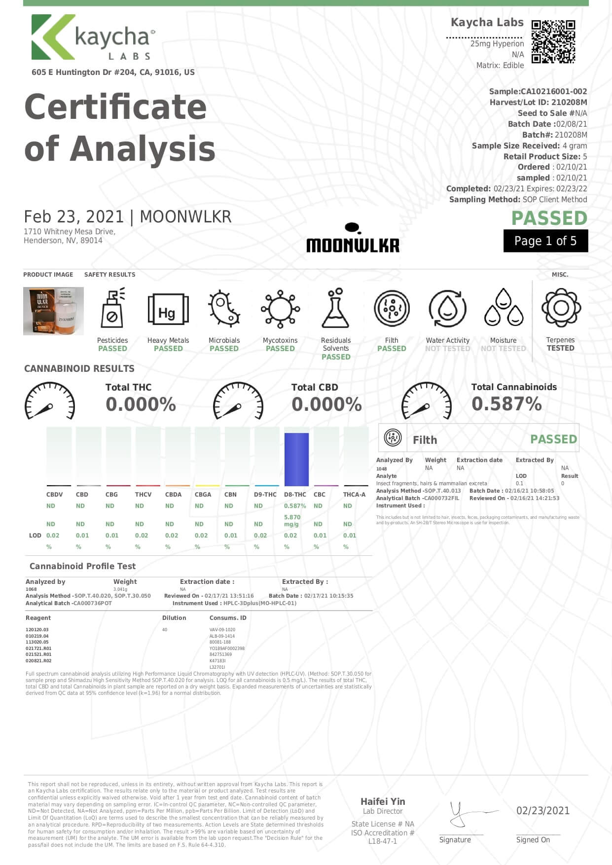 MoonWLKR Delta 8 THC Hyperion Gummies 625mg Lab Report important details about vaping products.
