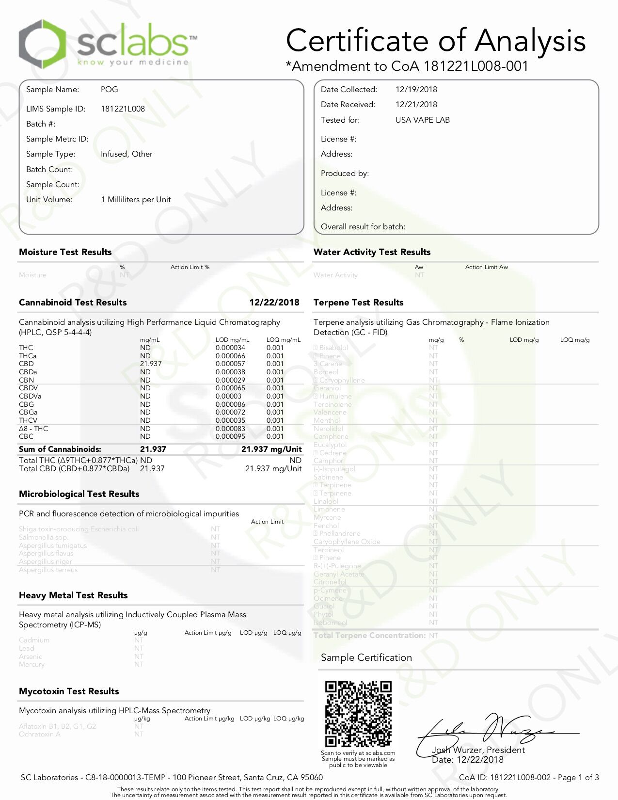 NAKED 100 CBD Hawaiian POG Lab Reports truthfully presented results related to vapes products.