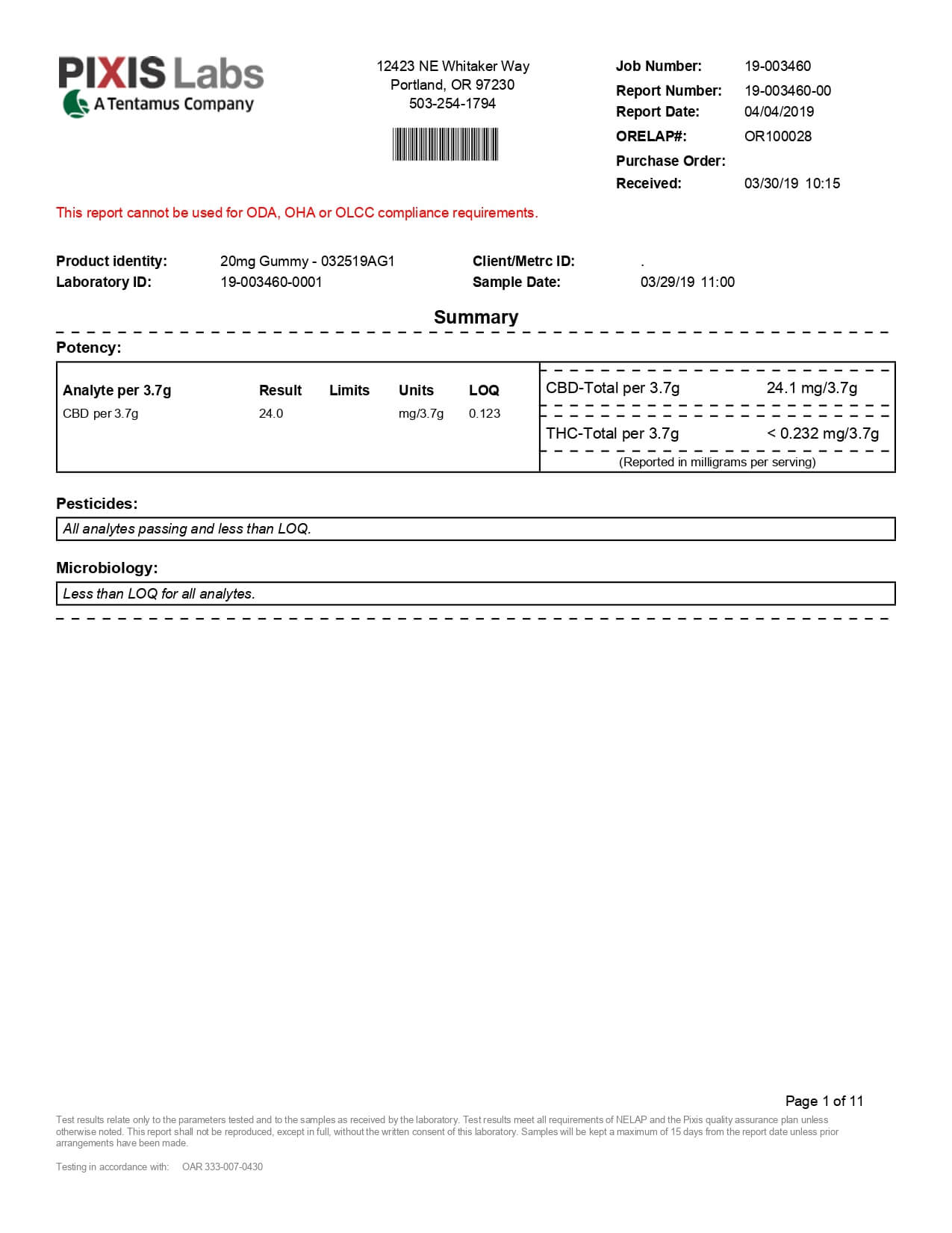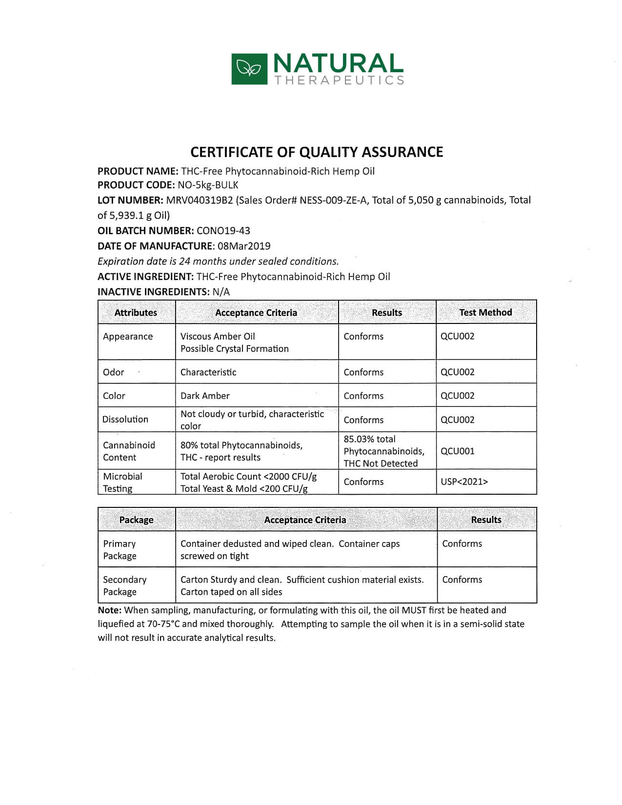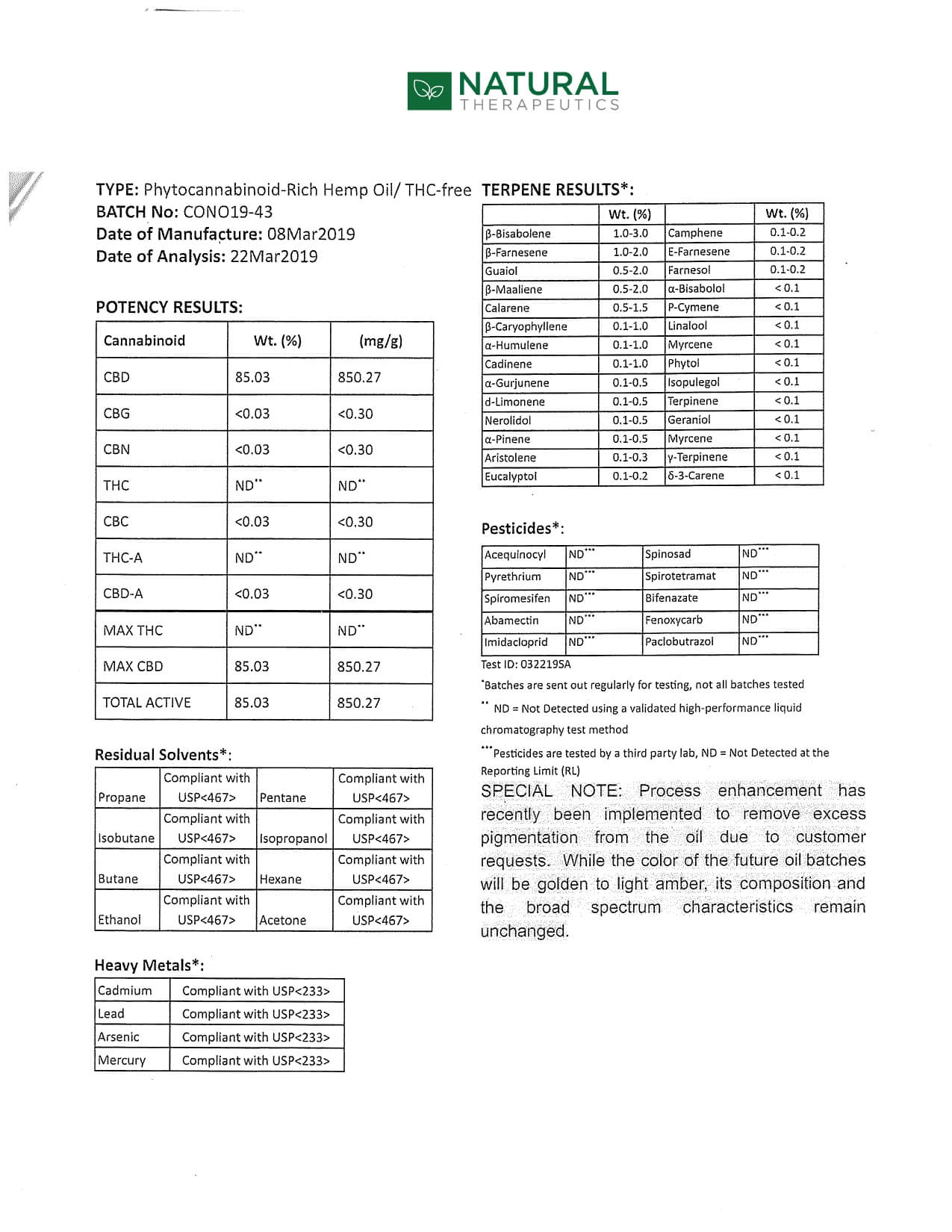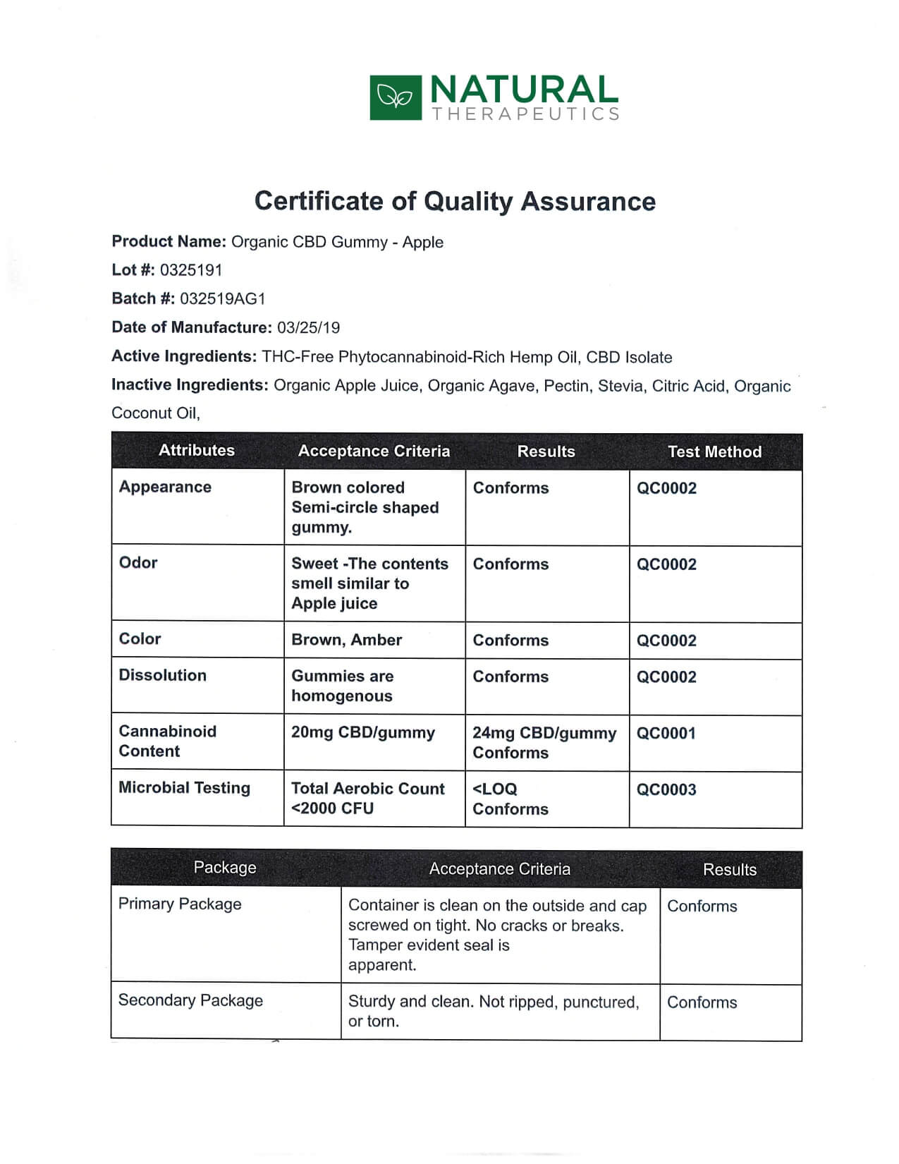 Natural Therapeutics CBD Edible Gummies Lab Report