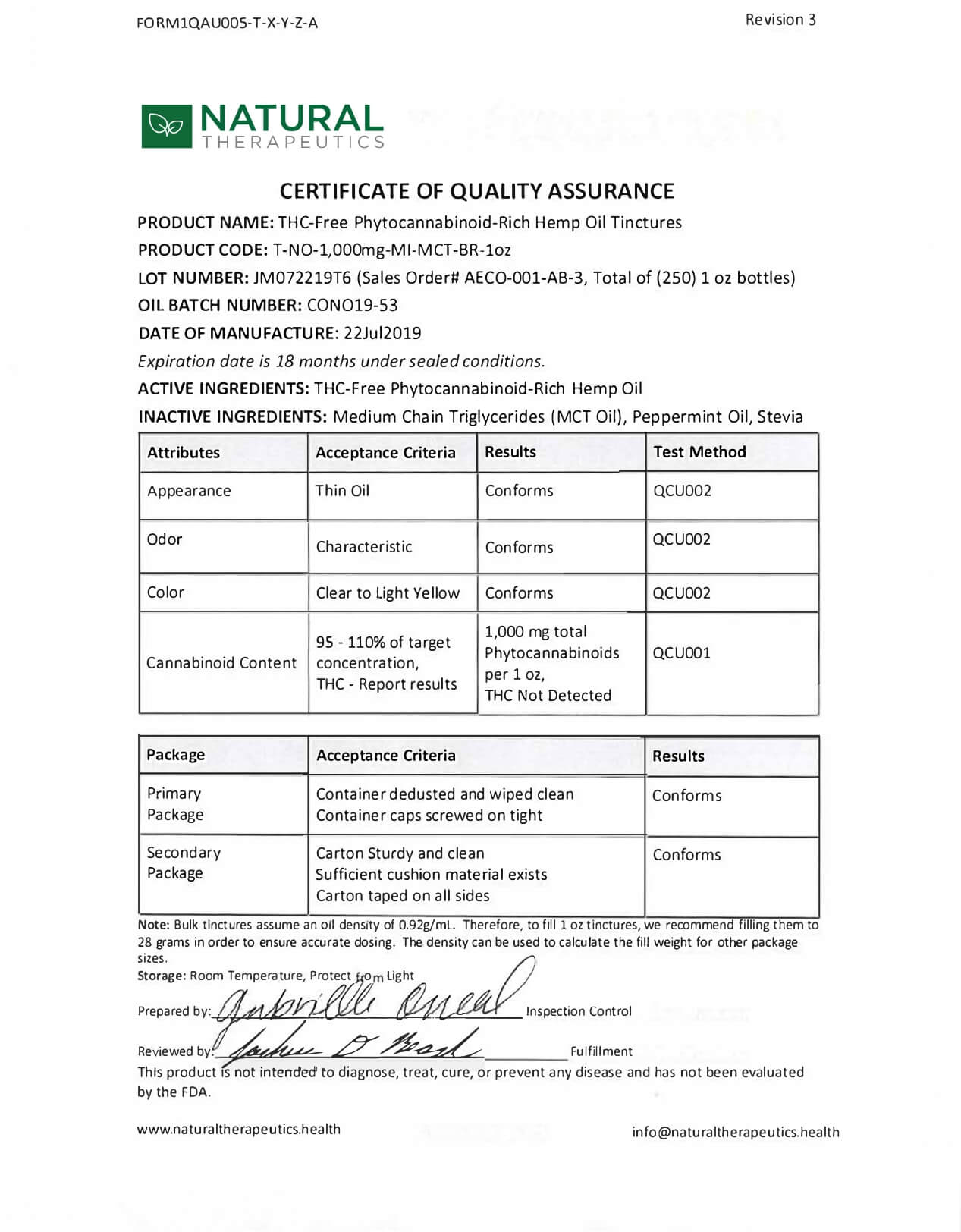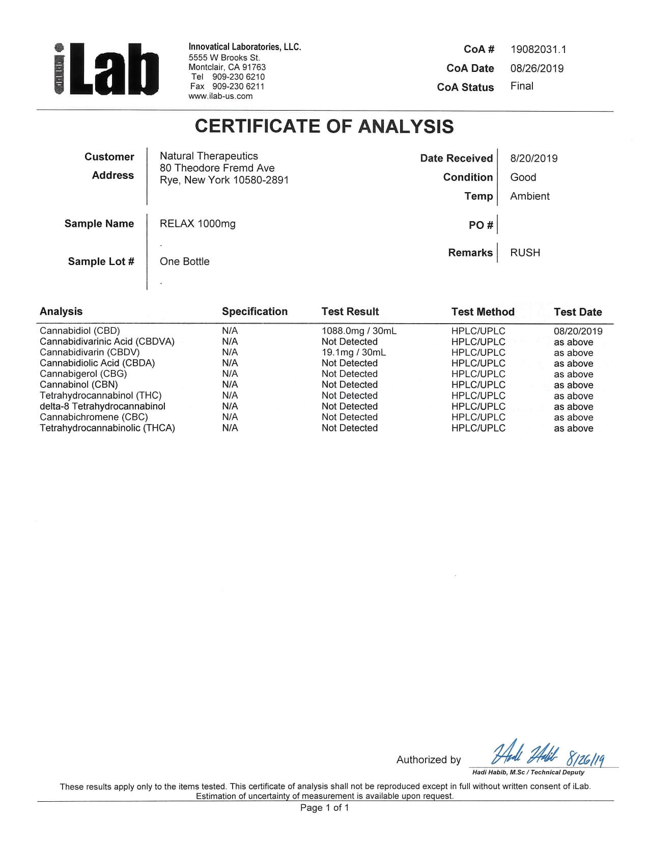 Natural Therapeutics CBD Tincture Relax Lab Report